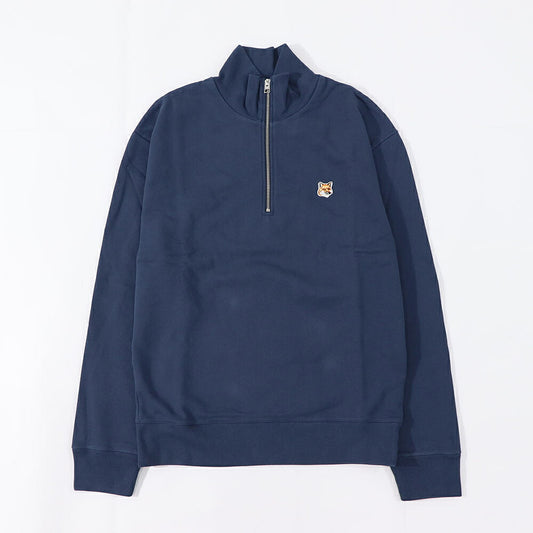 メゾン キツネ MAISON KITSUNE トップス スウェット・トレーナー メンズ FOX HEAD PATCH グレー ネイビー フォックスパッチ ハーフジップ スエット 無地 ワンポイント 長袖 クルーネック MM00314KM0001