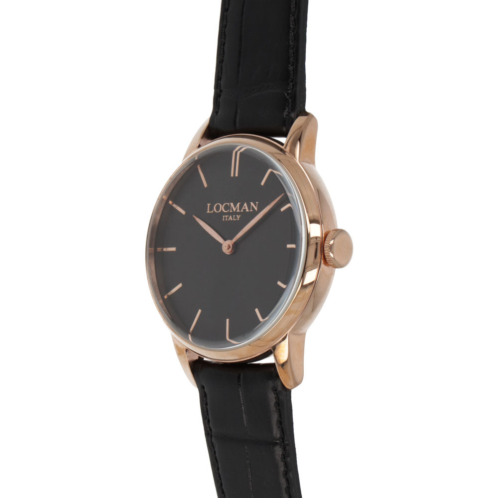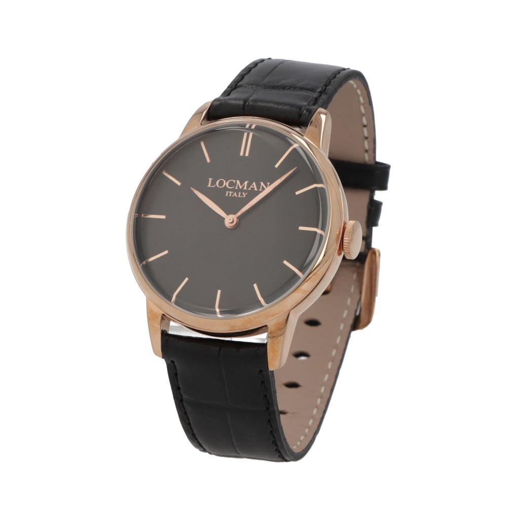LOCMAN 時計 ブラック系 ステンレススティールケース レザー ロゴ ゴールド 腕時計 0251V09-RGBKRGPK 1960