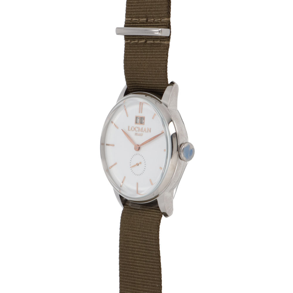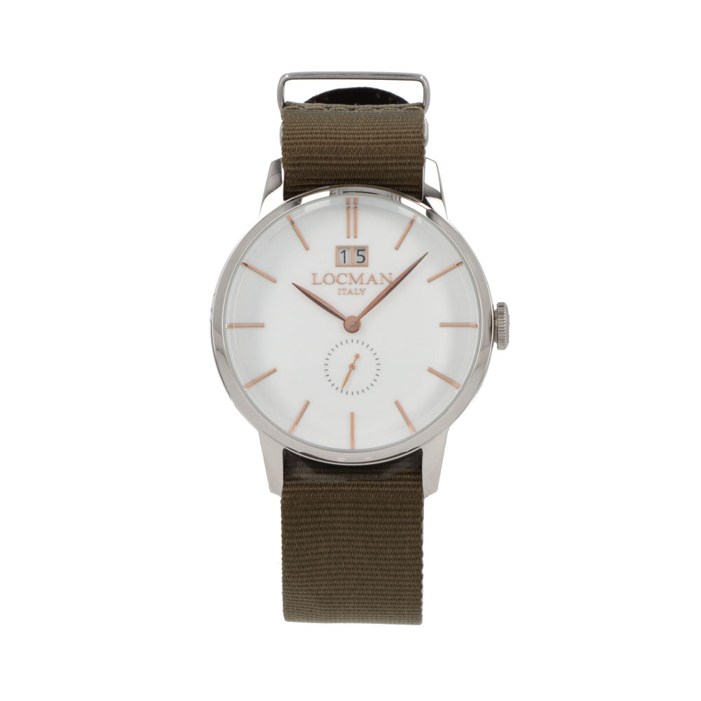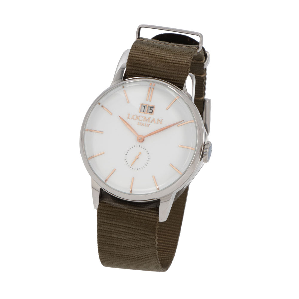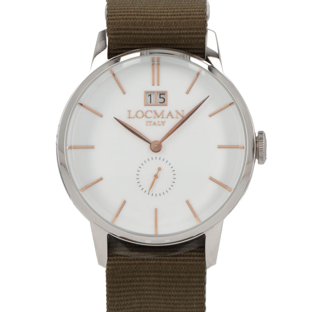 LOCMAN 時計 カーキ ステンレススティールケース ロゴ シルバー 腕時計 0252V08-00WHRGNG 1960 DATE