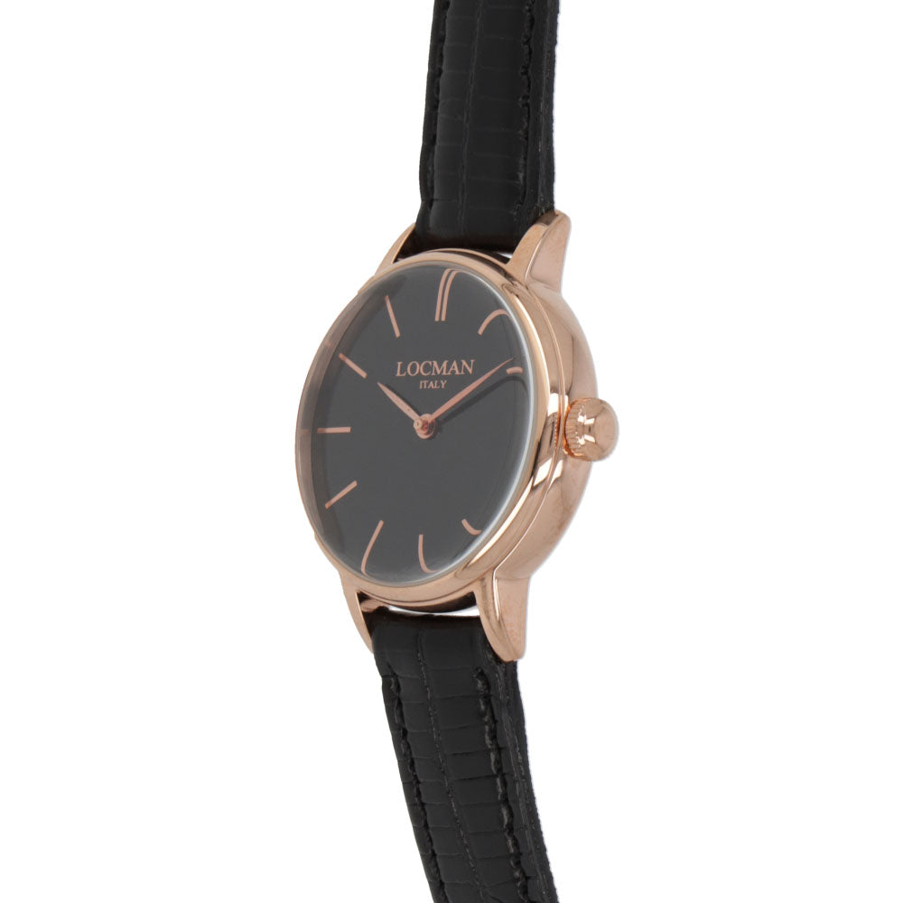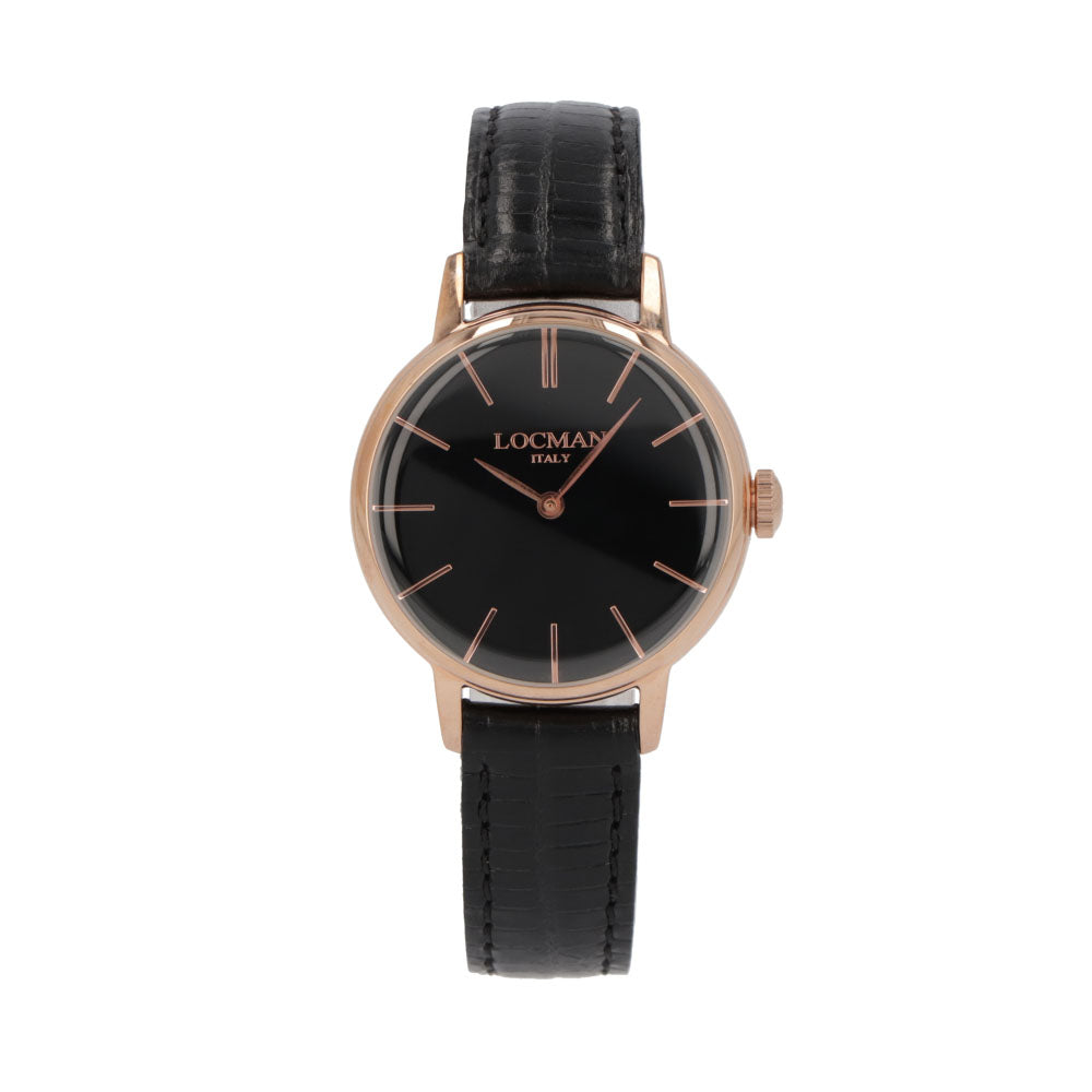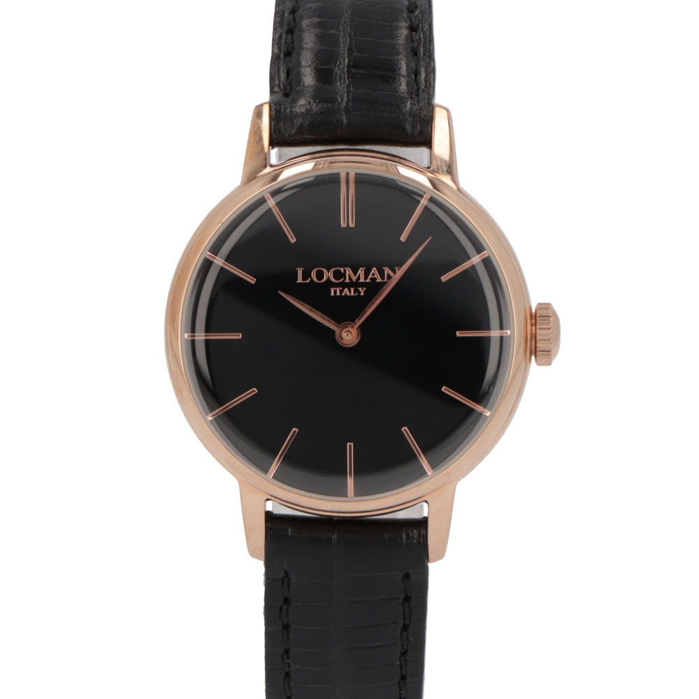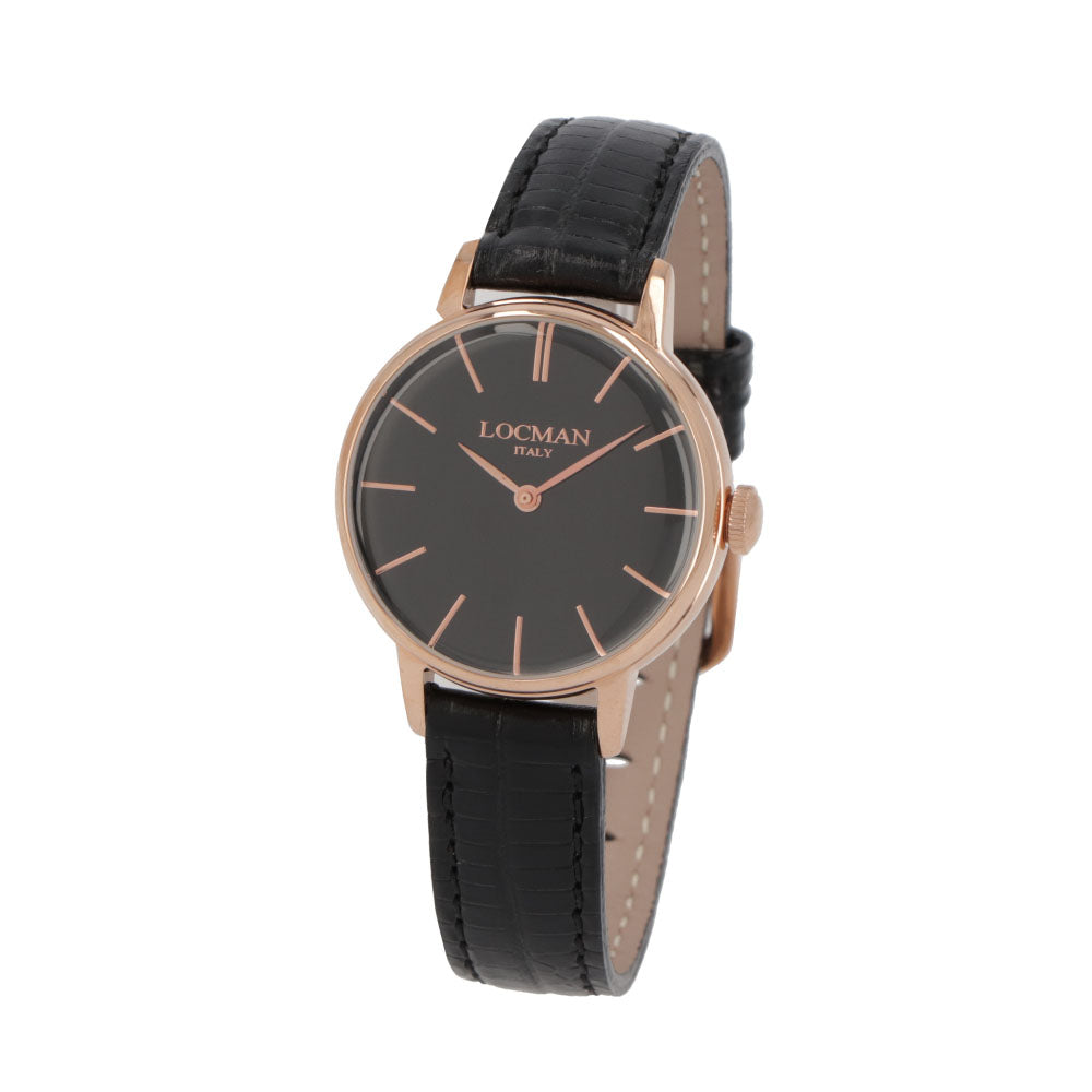 LOCMAN 時計 ブラック系 レザー ステンレススチール ロゴ ピンクゴールド 型押しベルト 腕時計 0253R01R-RRBKRGPK 1960 LADY
