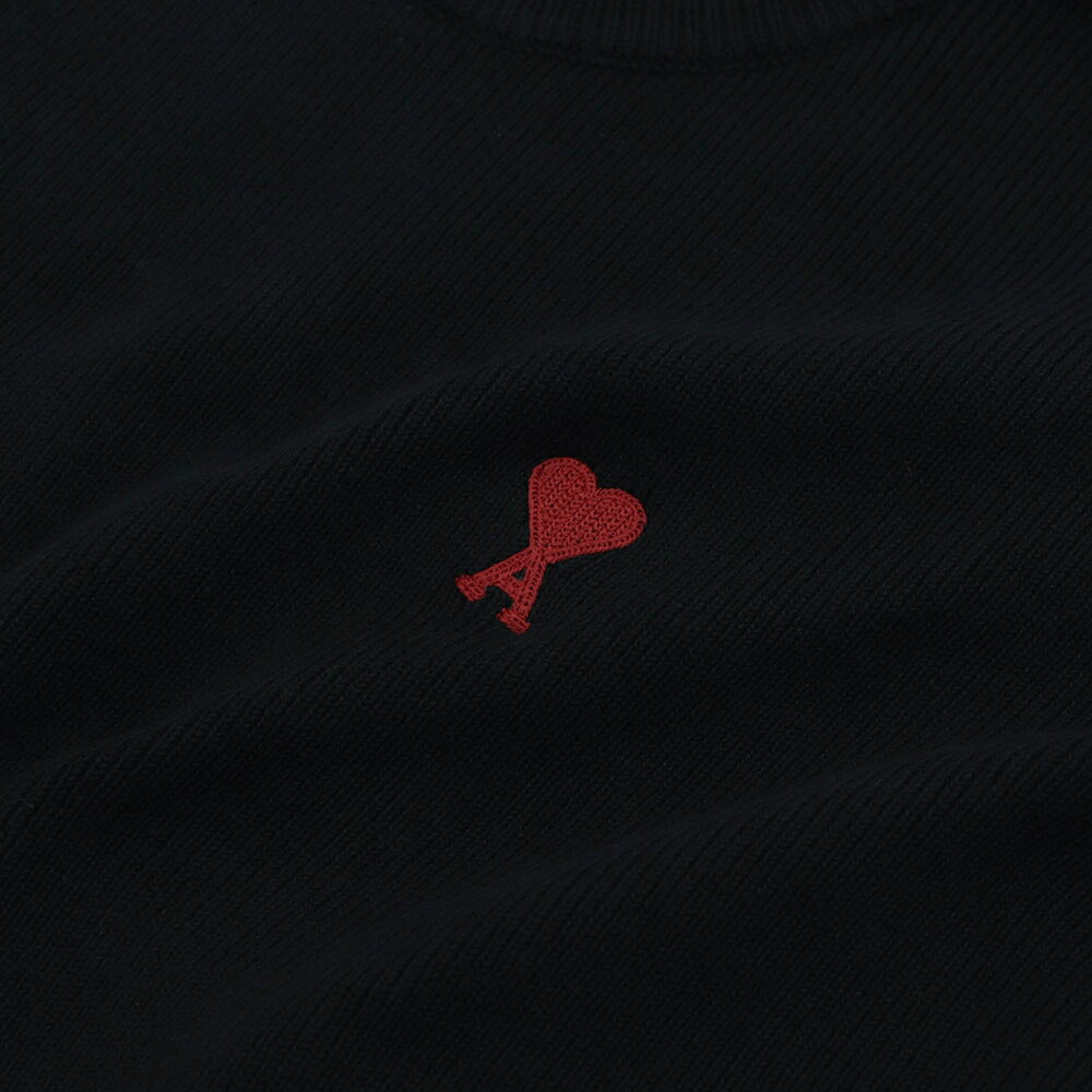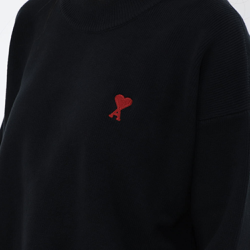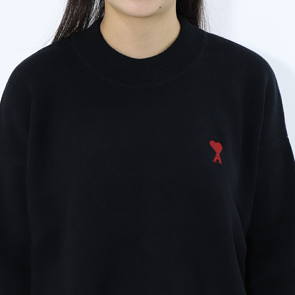 AMI PARIS ニット ブラック ホワイト ハートロゴ 刺繍 UKS046.KN0042