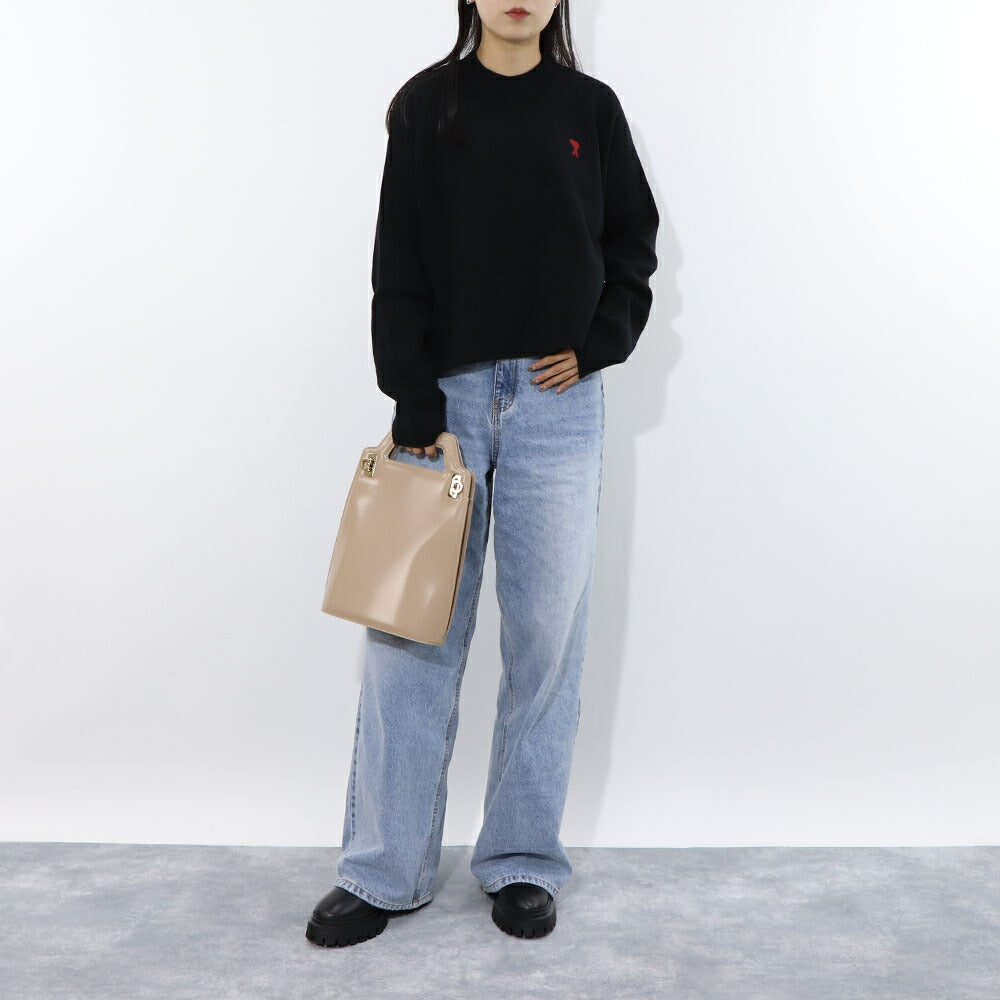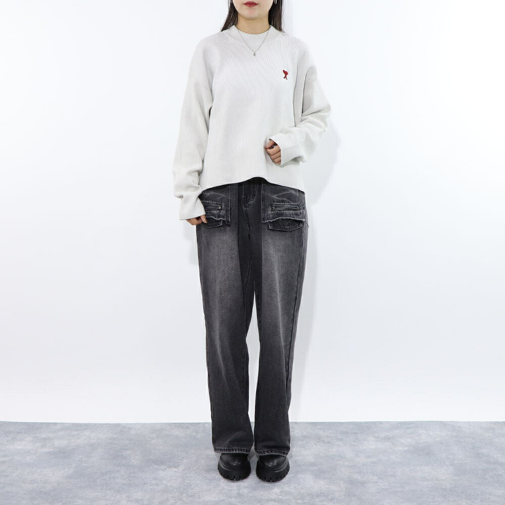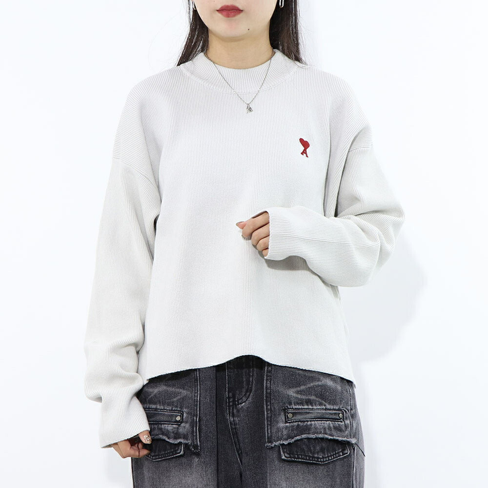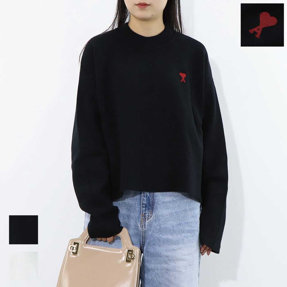 AMI PARIS ニット ブラック ホワイト ハートロゴ 刺繍 UKS046.KN0042