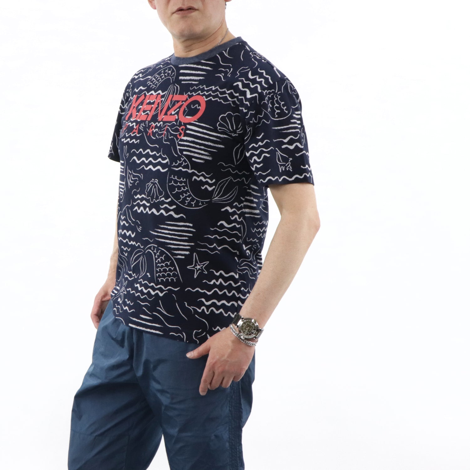 ケンゾー Tシャツ 半袖 FA55TS0434SCネイビー 総柄