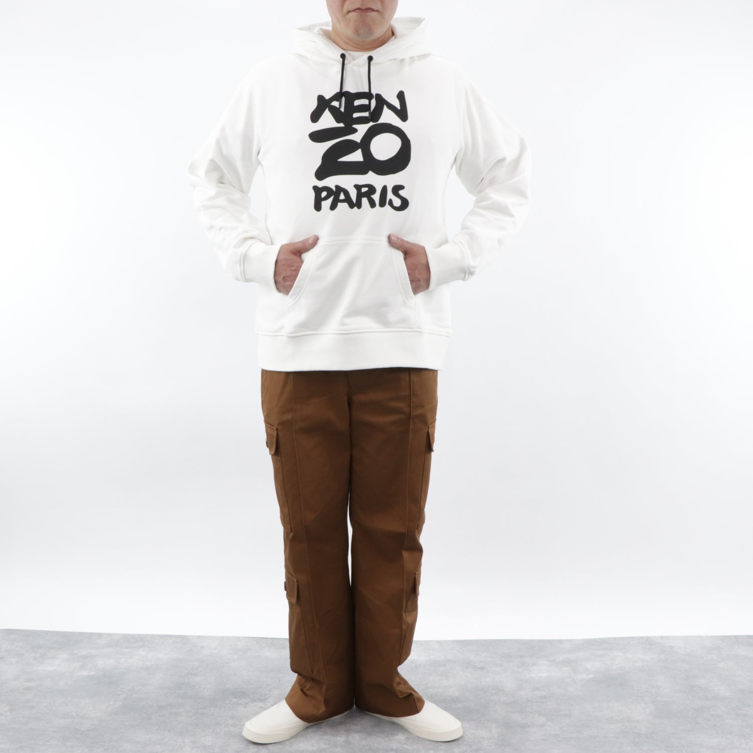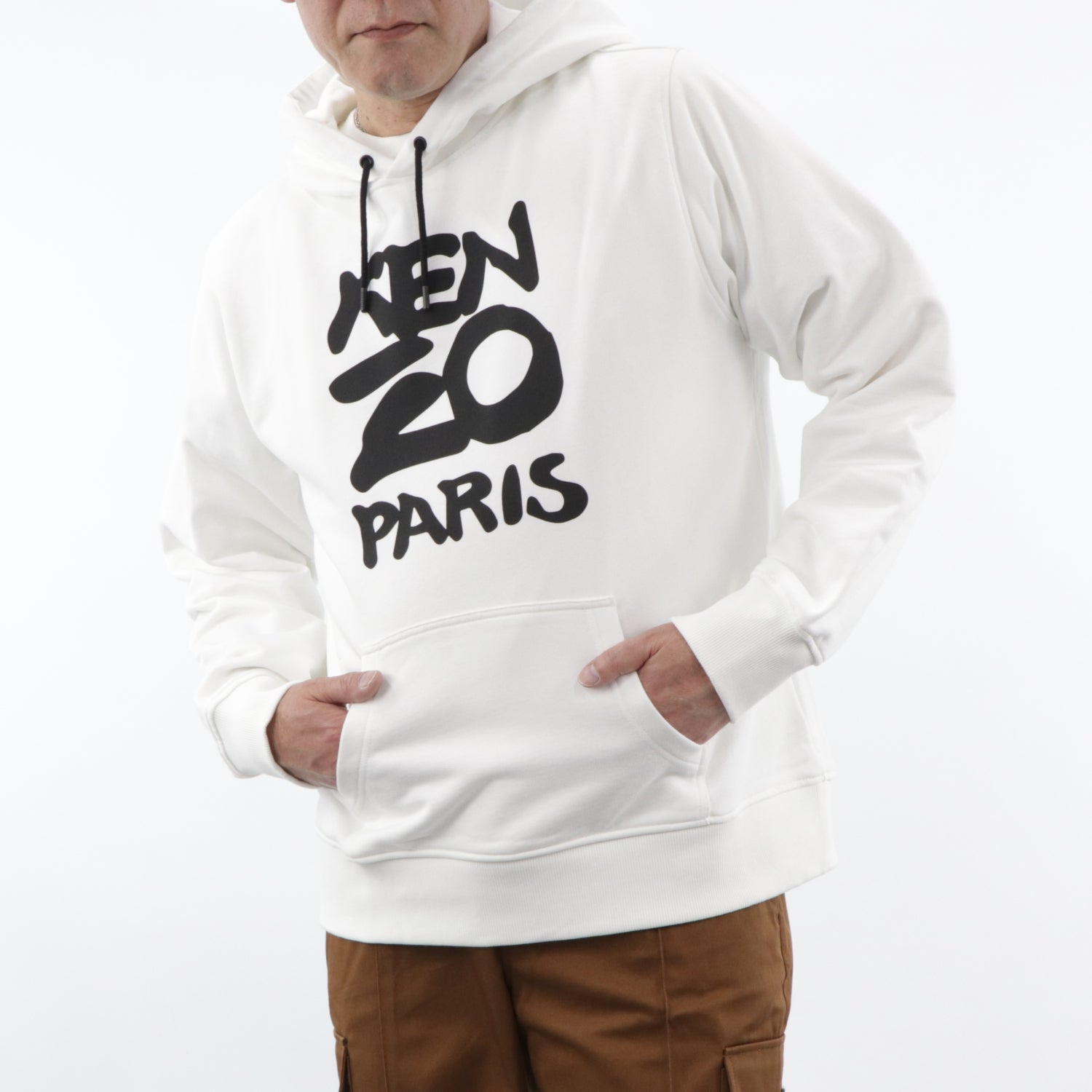 ケンゾー フーディ FA55SW1654ME ホワイト×ブラック ロゴ