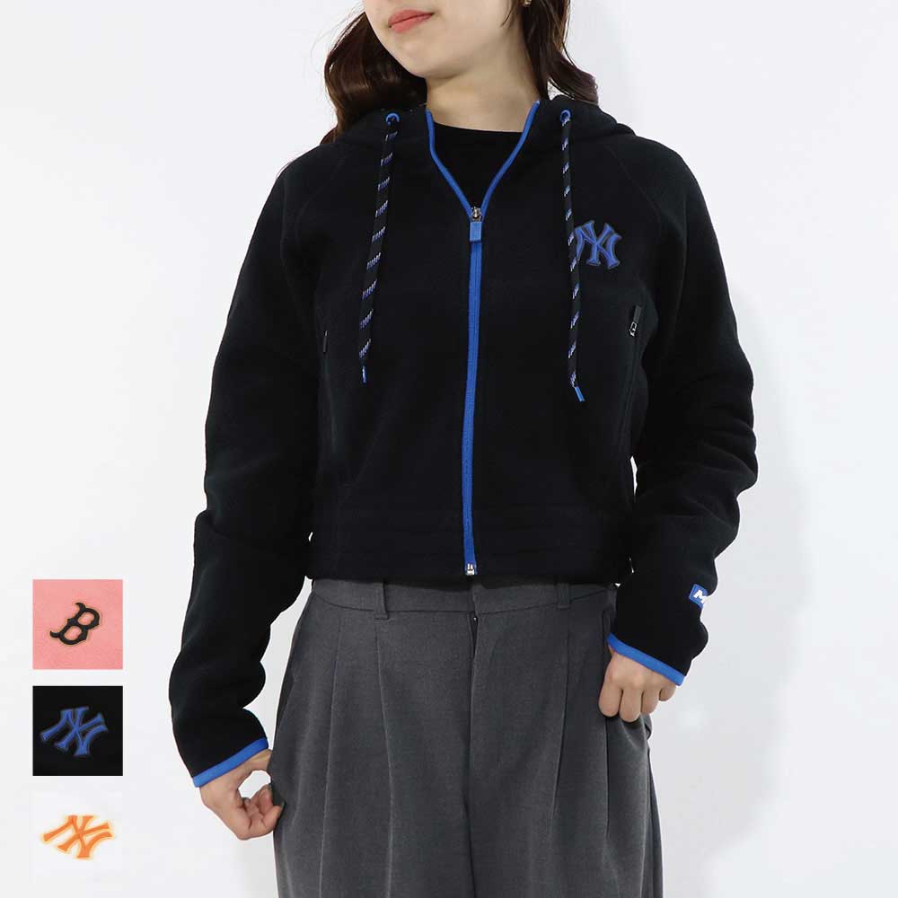 MLB Korea パーカー ピンク ブラック ホワイト フリース ショート丈 ヤンキース ドジャース デトロイト・タイガース 3FTRA0326MLB