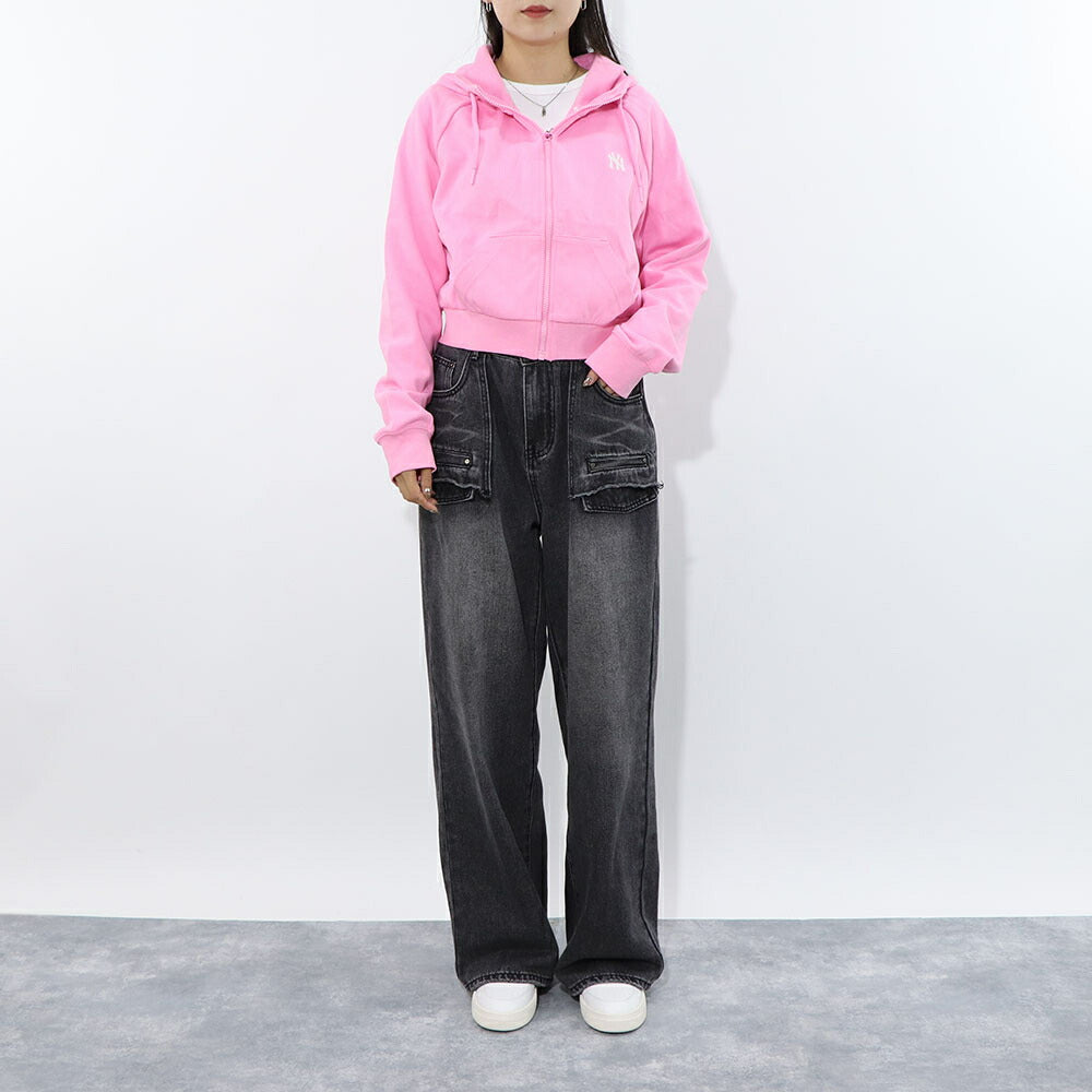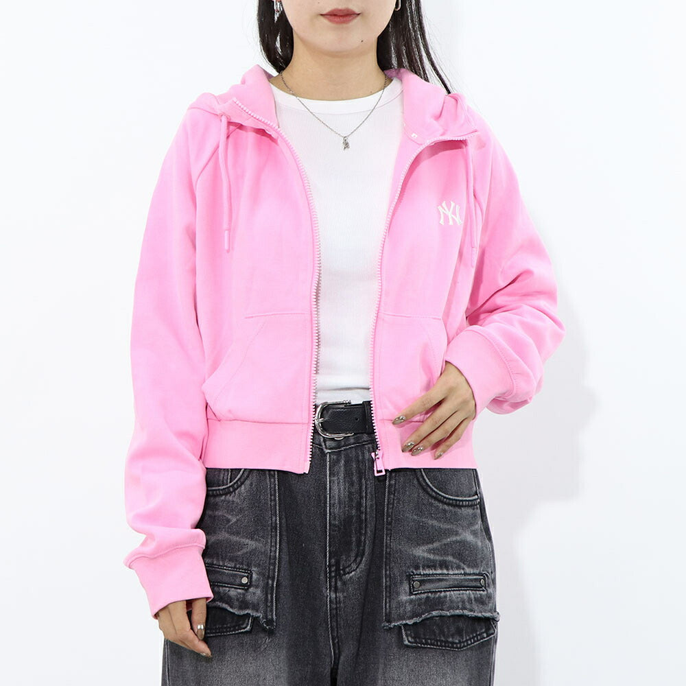 MLB Korea パーカー ピンク ヤンキース ショート丈 ジップアップ 3FTRB0221