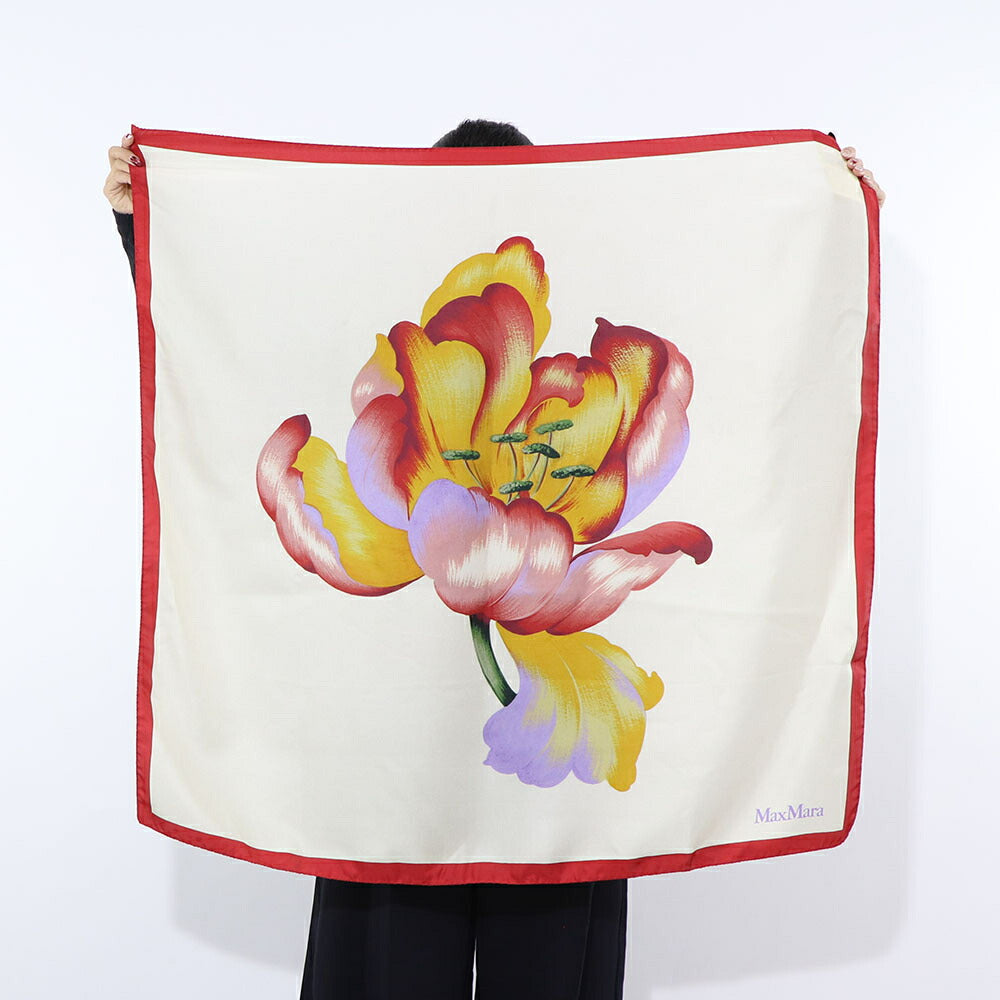 Max Mara スカーフ レッド系 シルク 大判スカーフ 花 フラワープリント 45410831