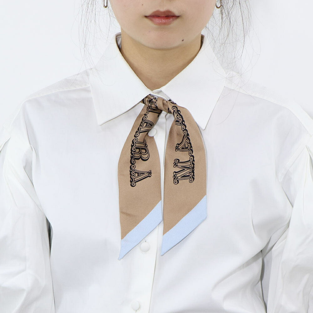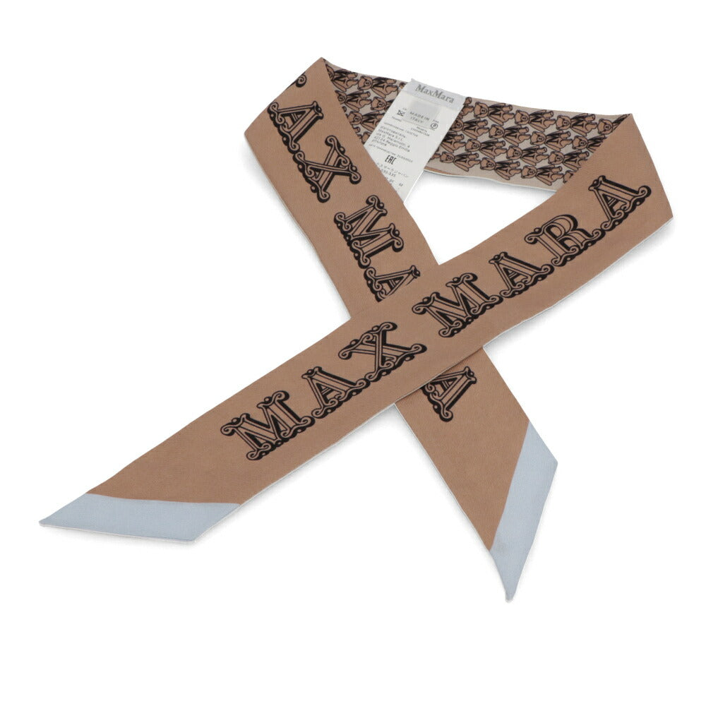 Max Mara スカーフ TIE5 キャメル×ライトブルー シルク ナロー 45460733