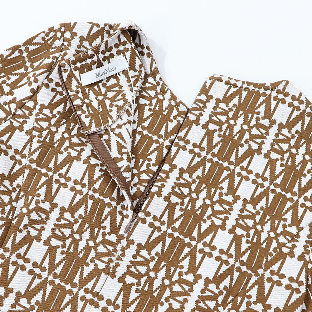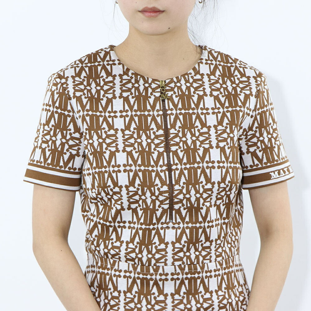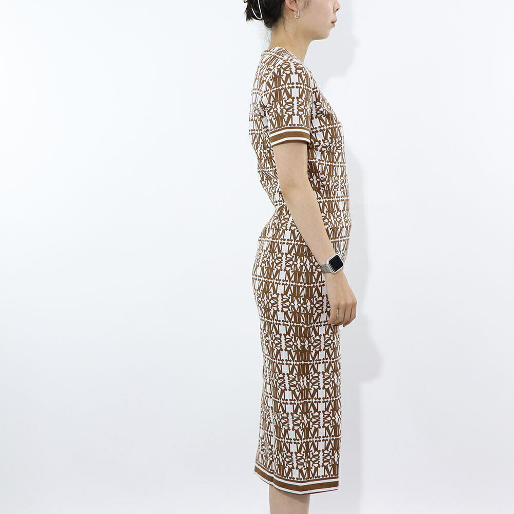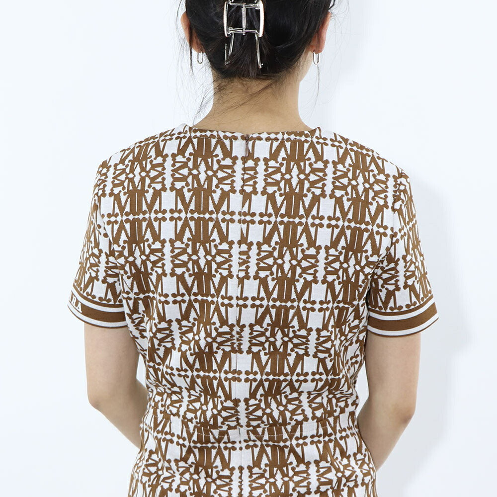 Max Mara ワンピース ホワイト×ブラウン 半袖 ロングワンピース ロゴ 16210132