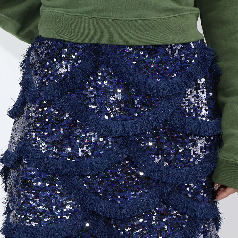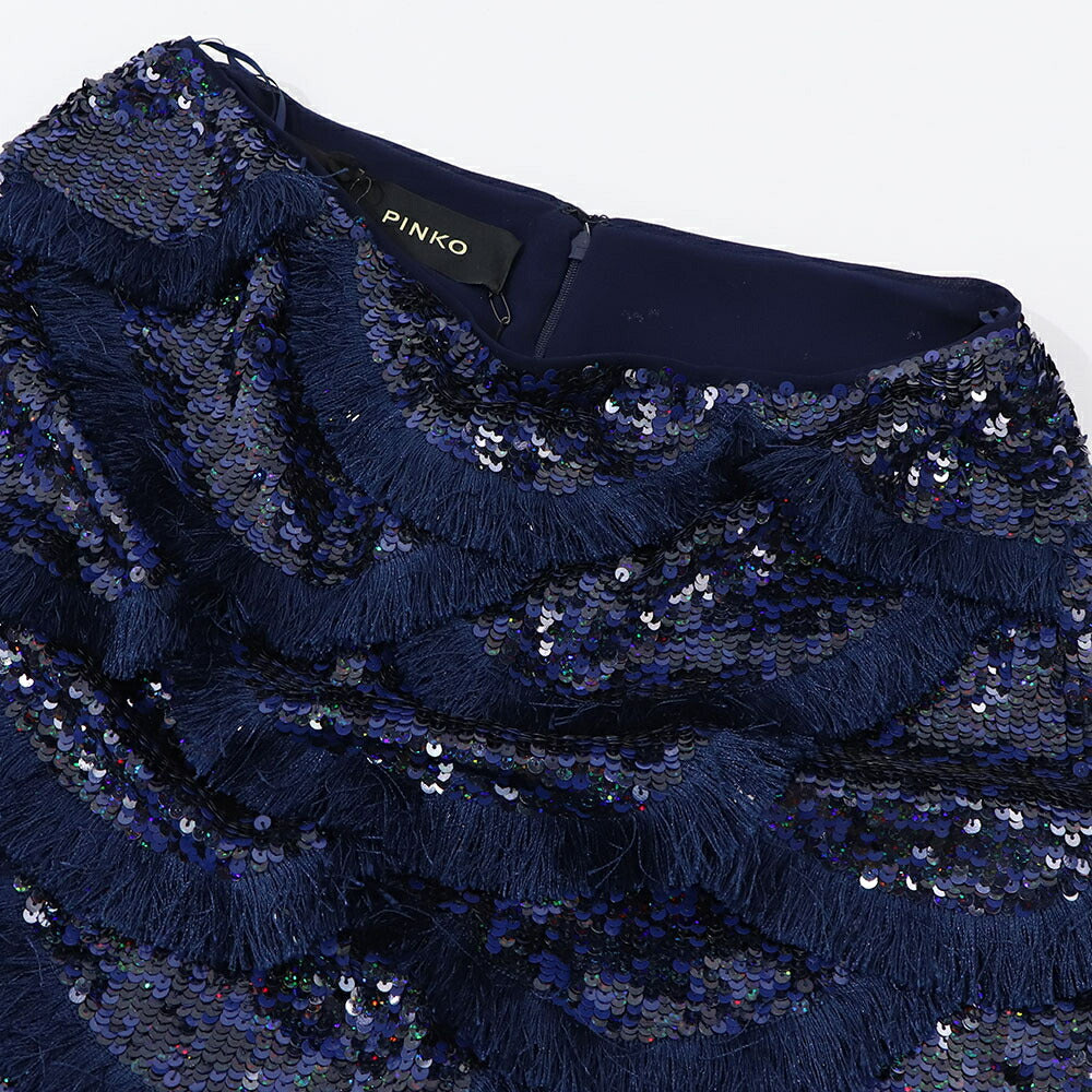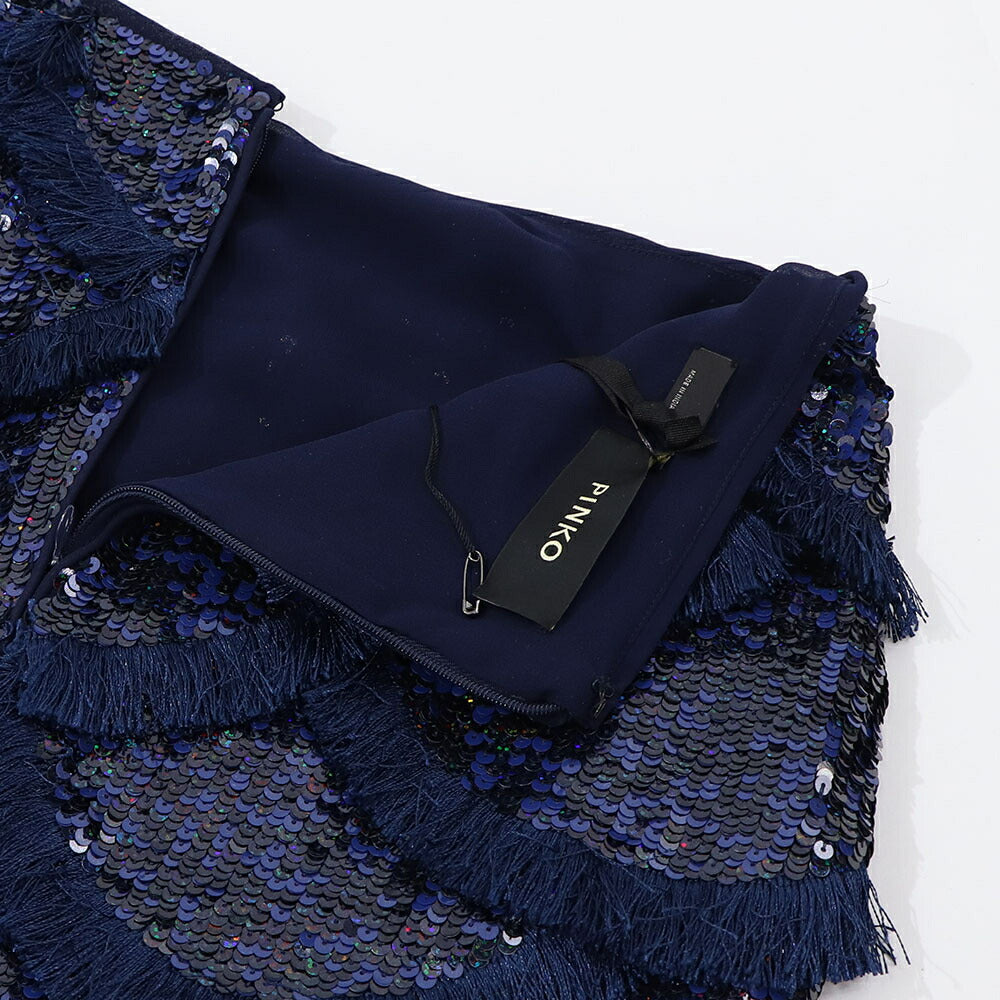 PINKO ミニスカート ネイビー ミニミニスカート スパンコール フリンジ 1G173C-Y7SB