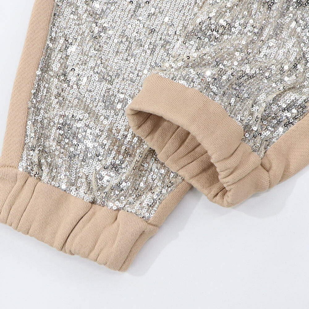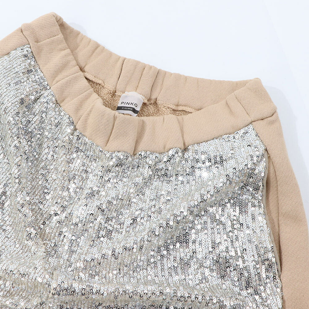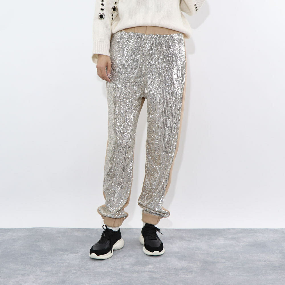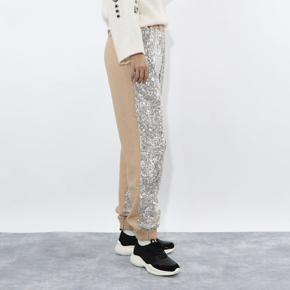 PINKO ロングパンツ ベージュ スパンコール 切り替えデザイン 1C10CR-7968