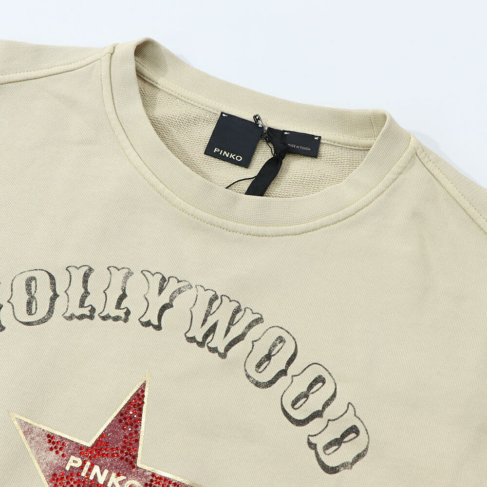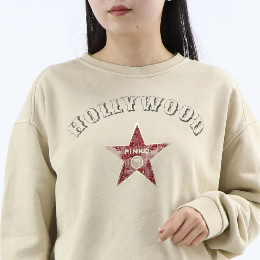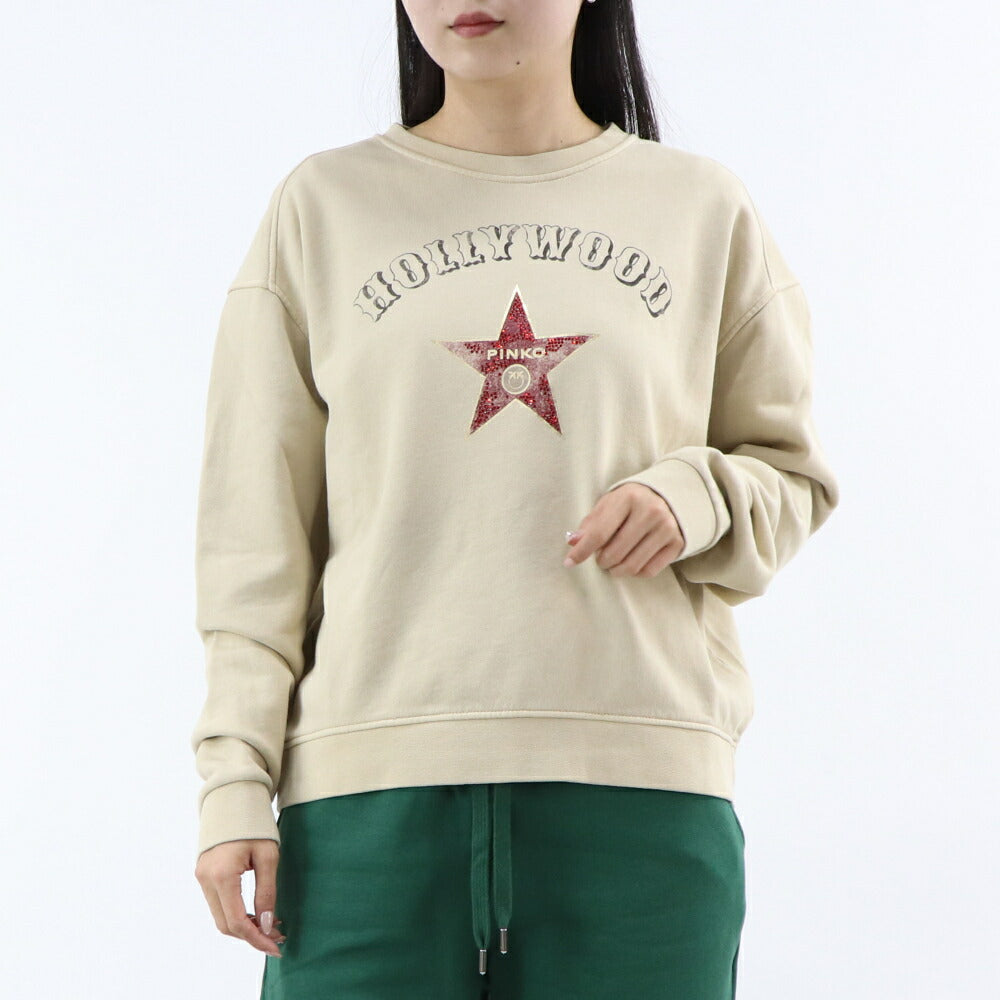 PINKO トレーナー ベージュ ロゴ ラインストーン オーバーサイズ 100352-A0L6