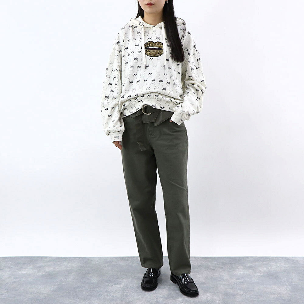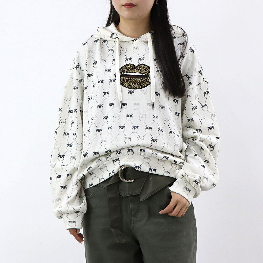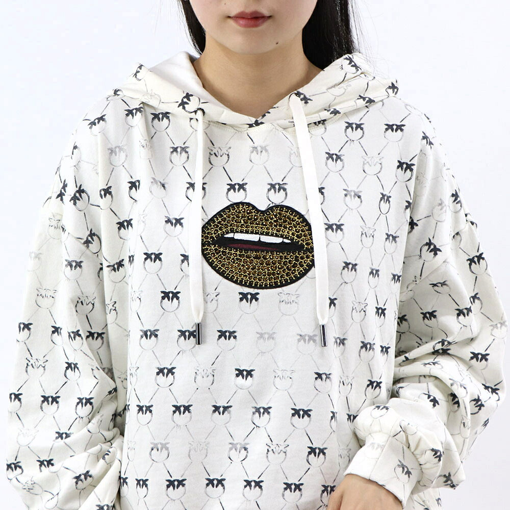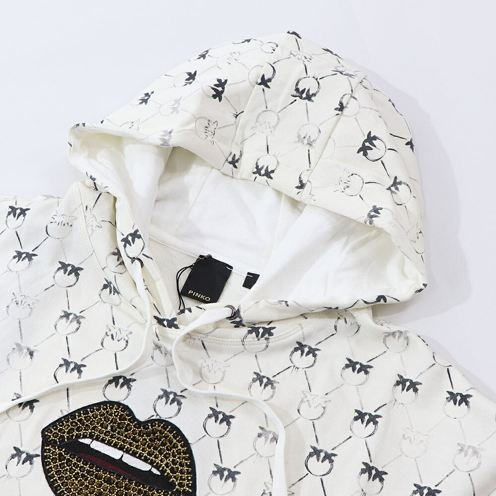 PINKO パーカー ホワイト ラインストーン プルオーバー 1G1726-Y7YT