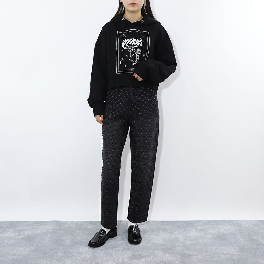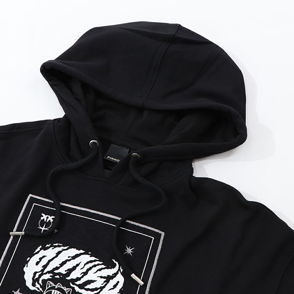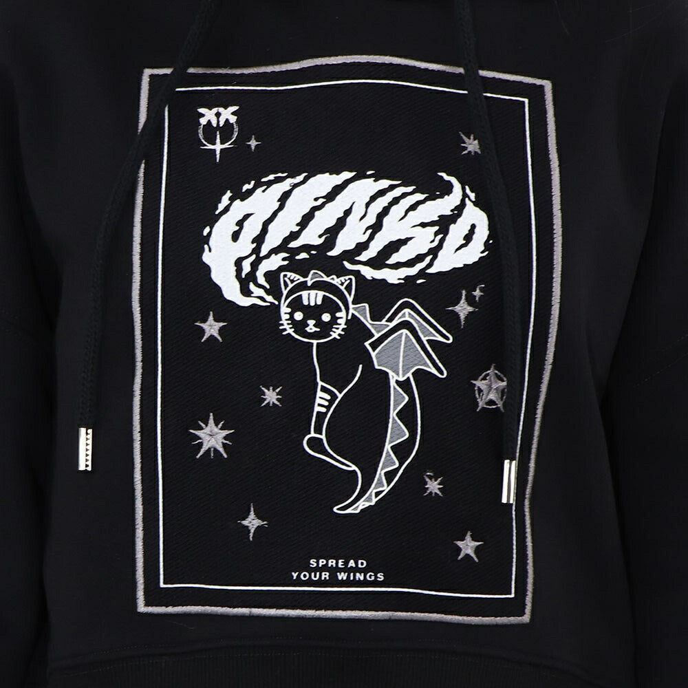 PINKO パーカー ブラック 刺繍 猫 フーデイ プルオーバー 1G185G-8314