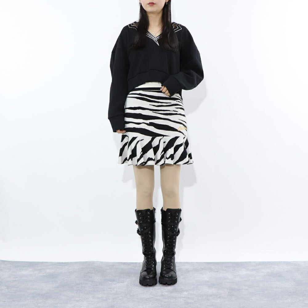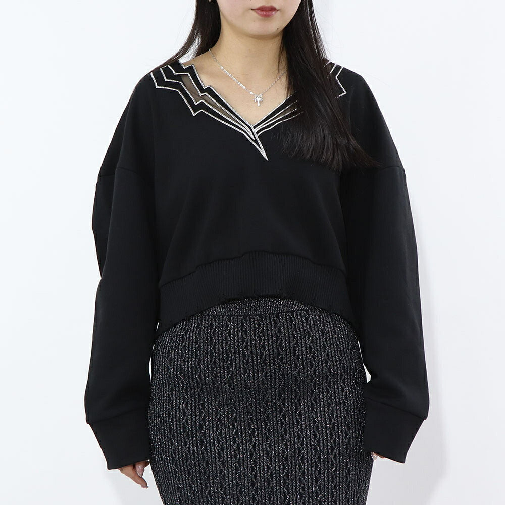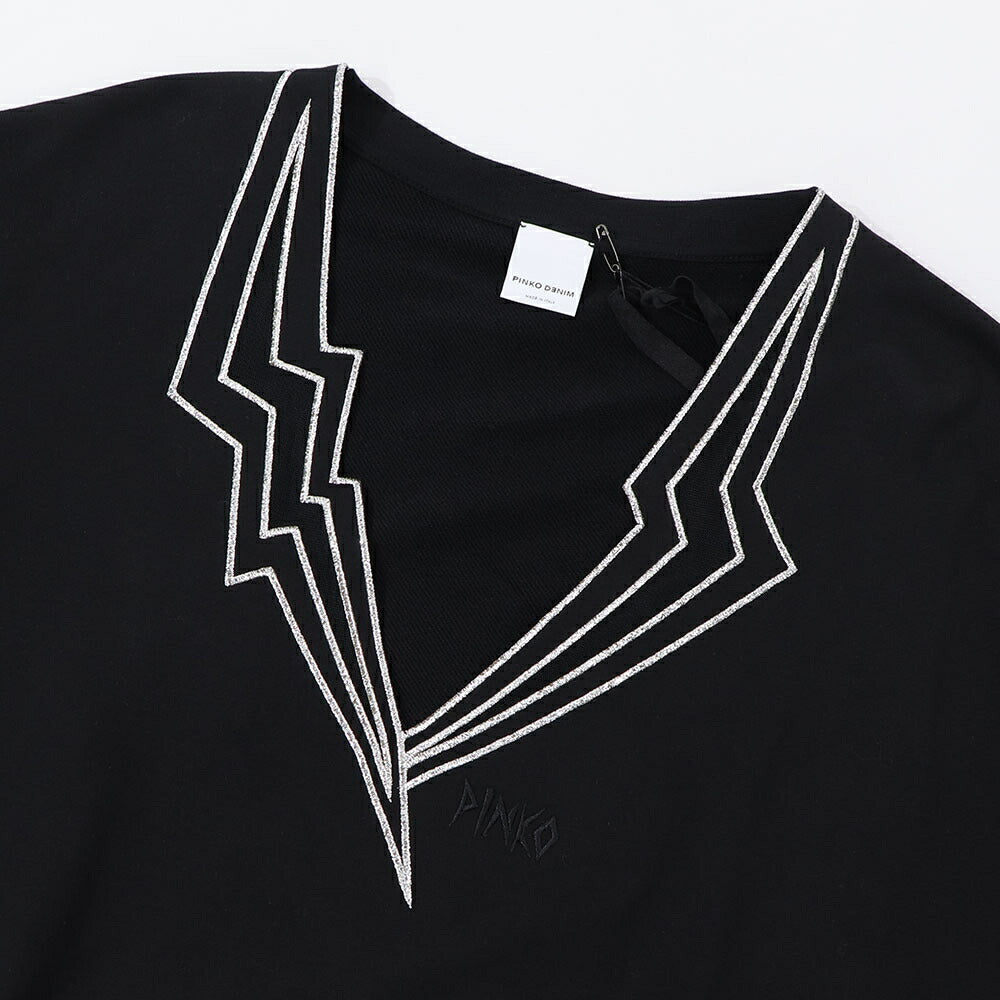 PINKO スウェット ブラック ショート丈 Vネック 稲妻 100474-A0LQ