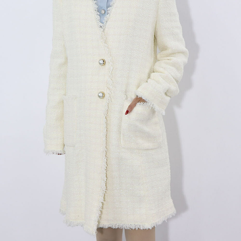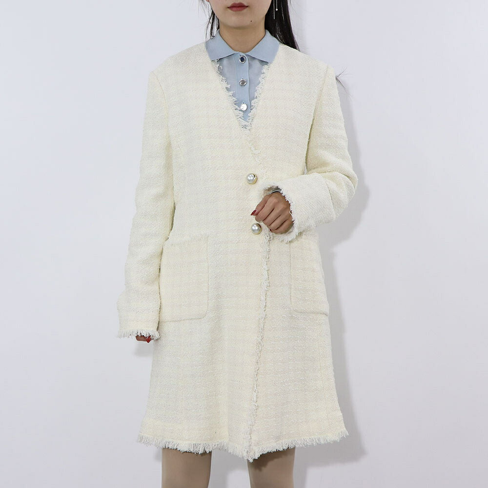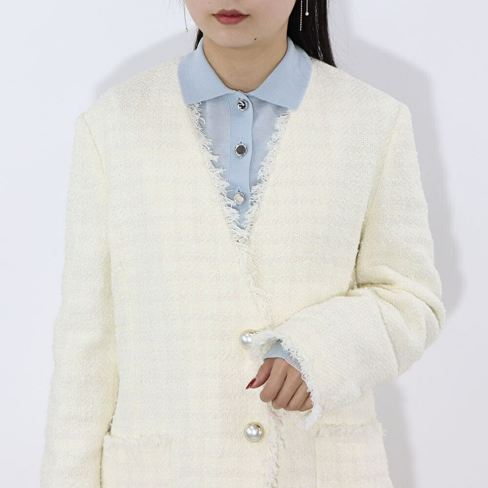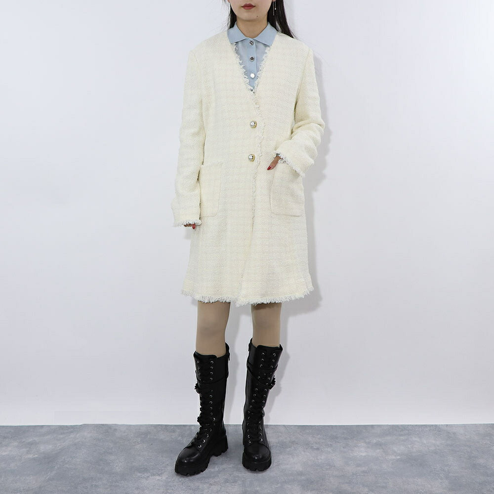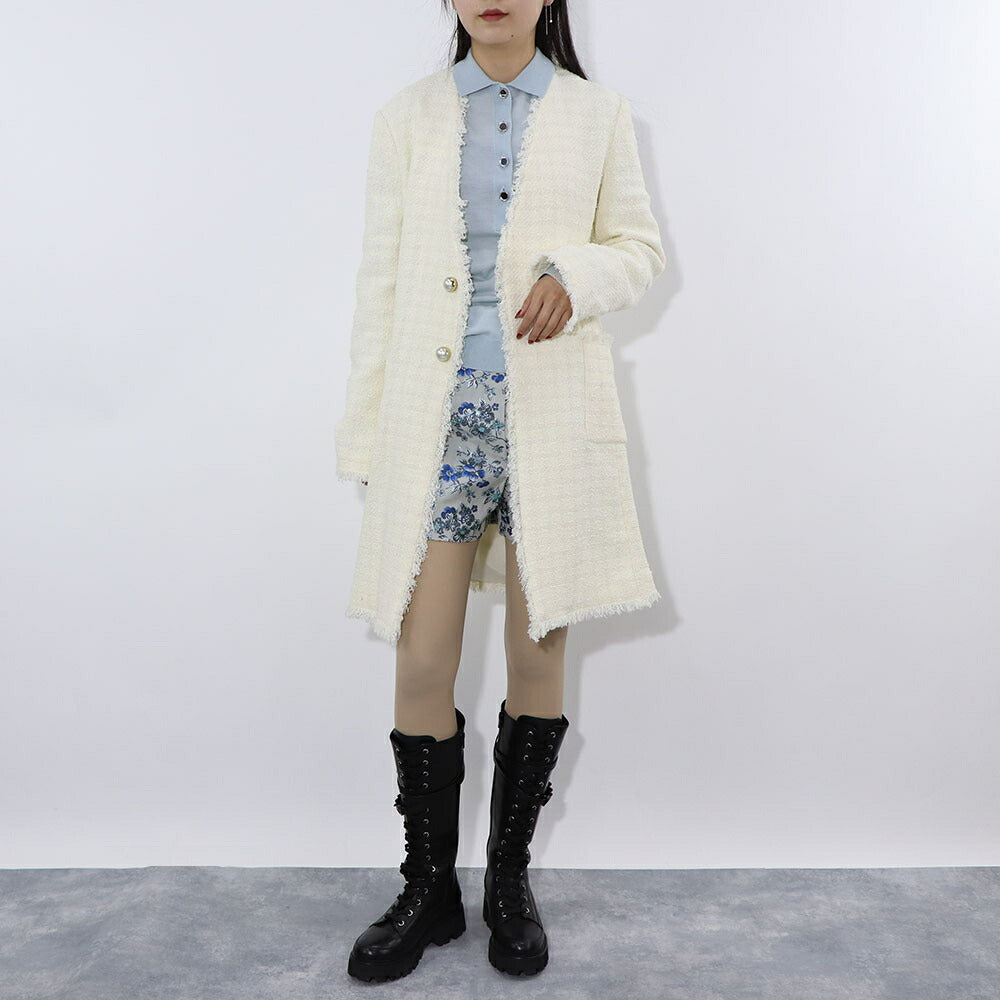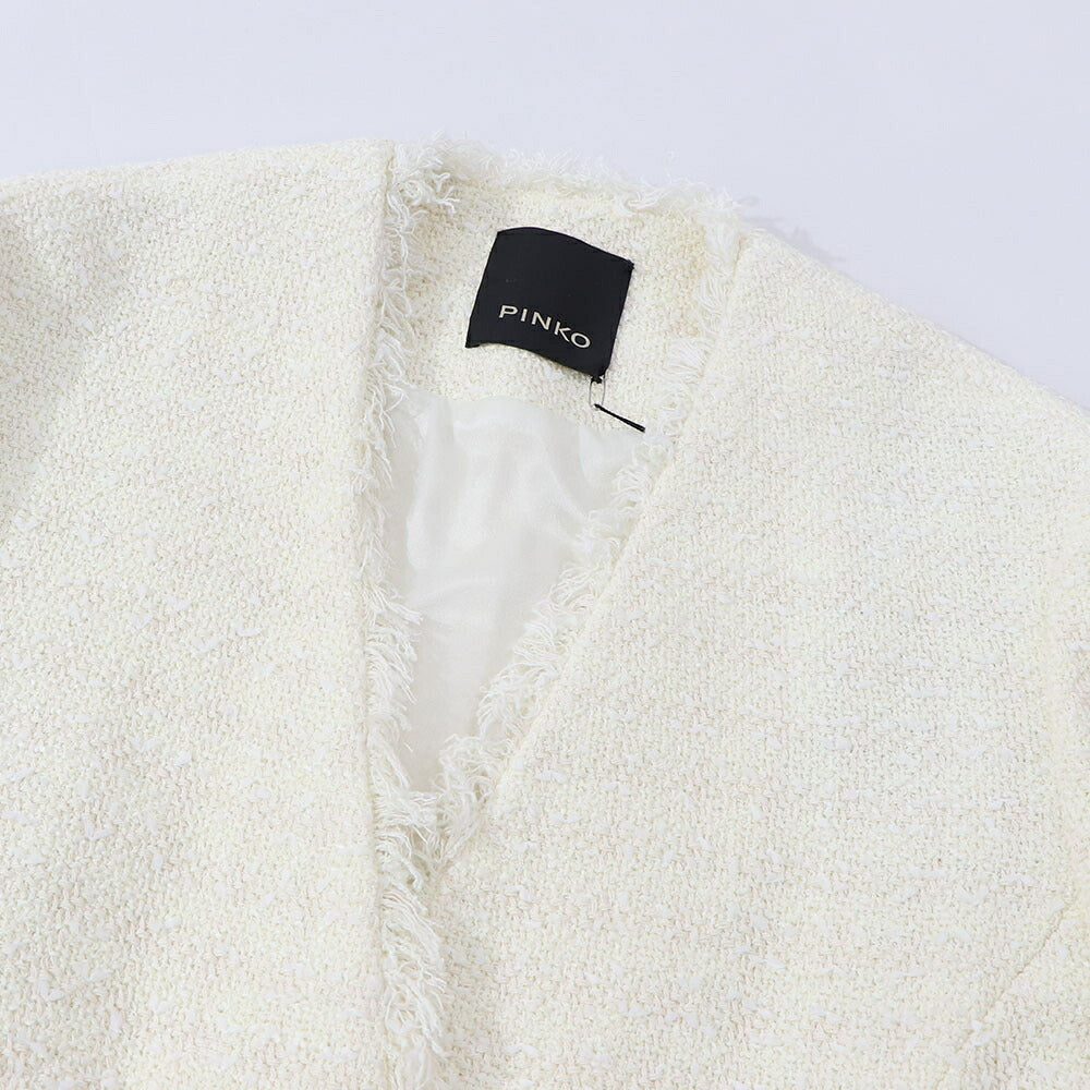 PINKO コート ホワイト パールボタン ツイードコート 1G164P-8440
