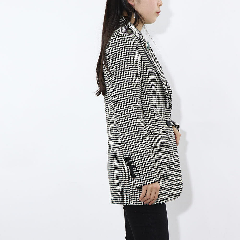 PINKO ジャケット ベージュ ブローチ 千鳥格子柄 1B14T0-8244