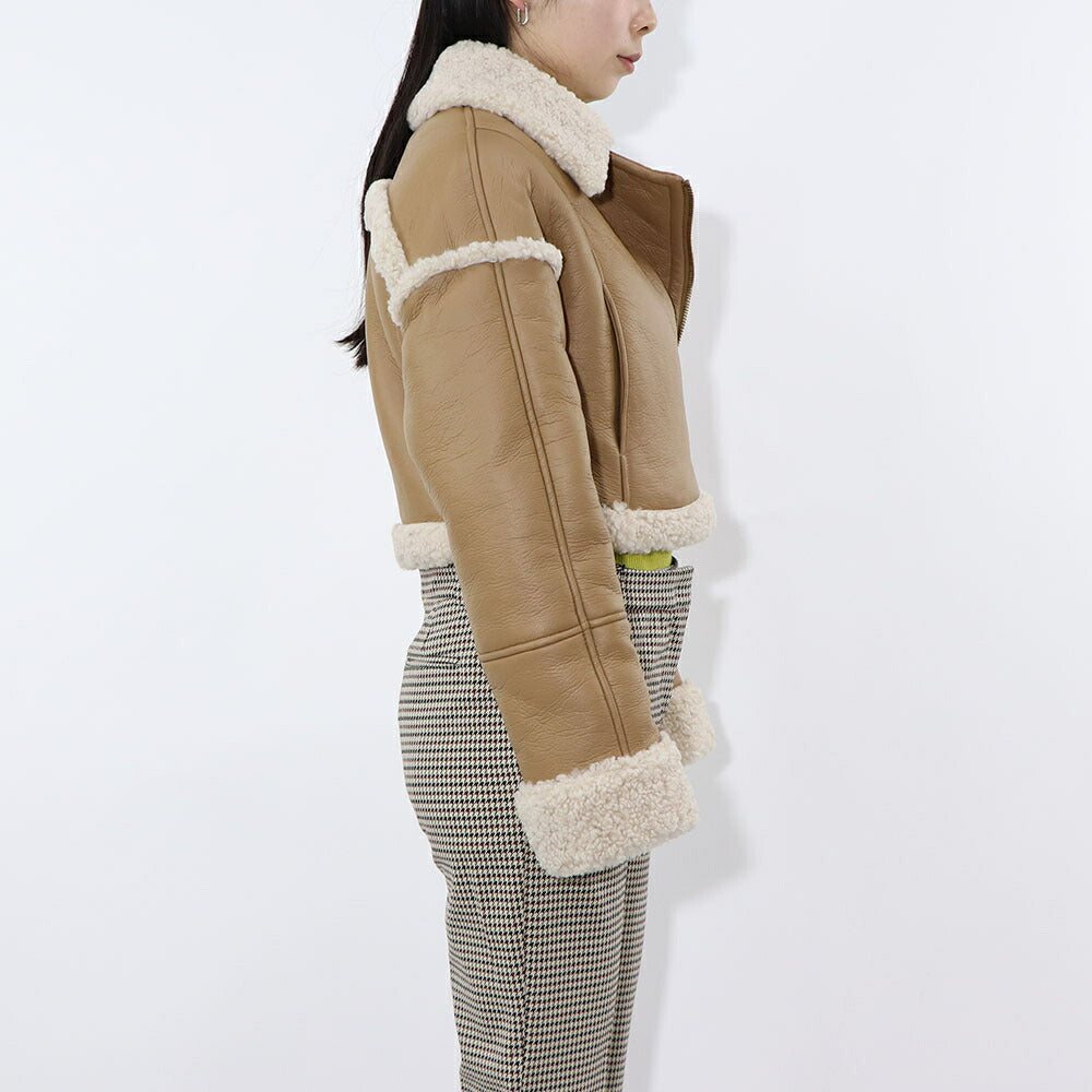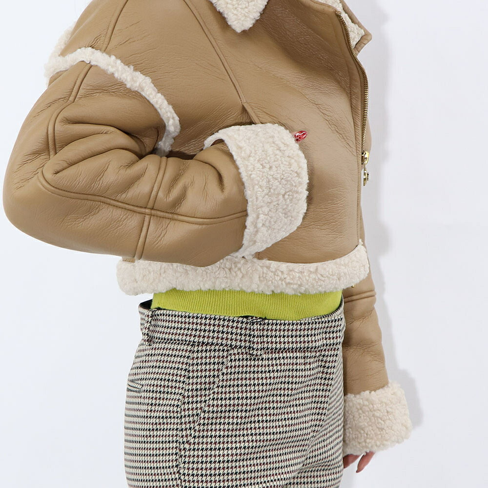 PINKO ブラウン ボアジャケット レザージャケット 1G1807-Y4V5