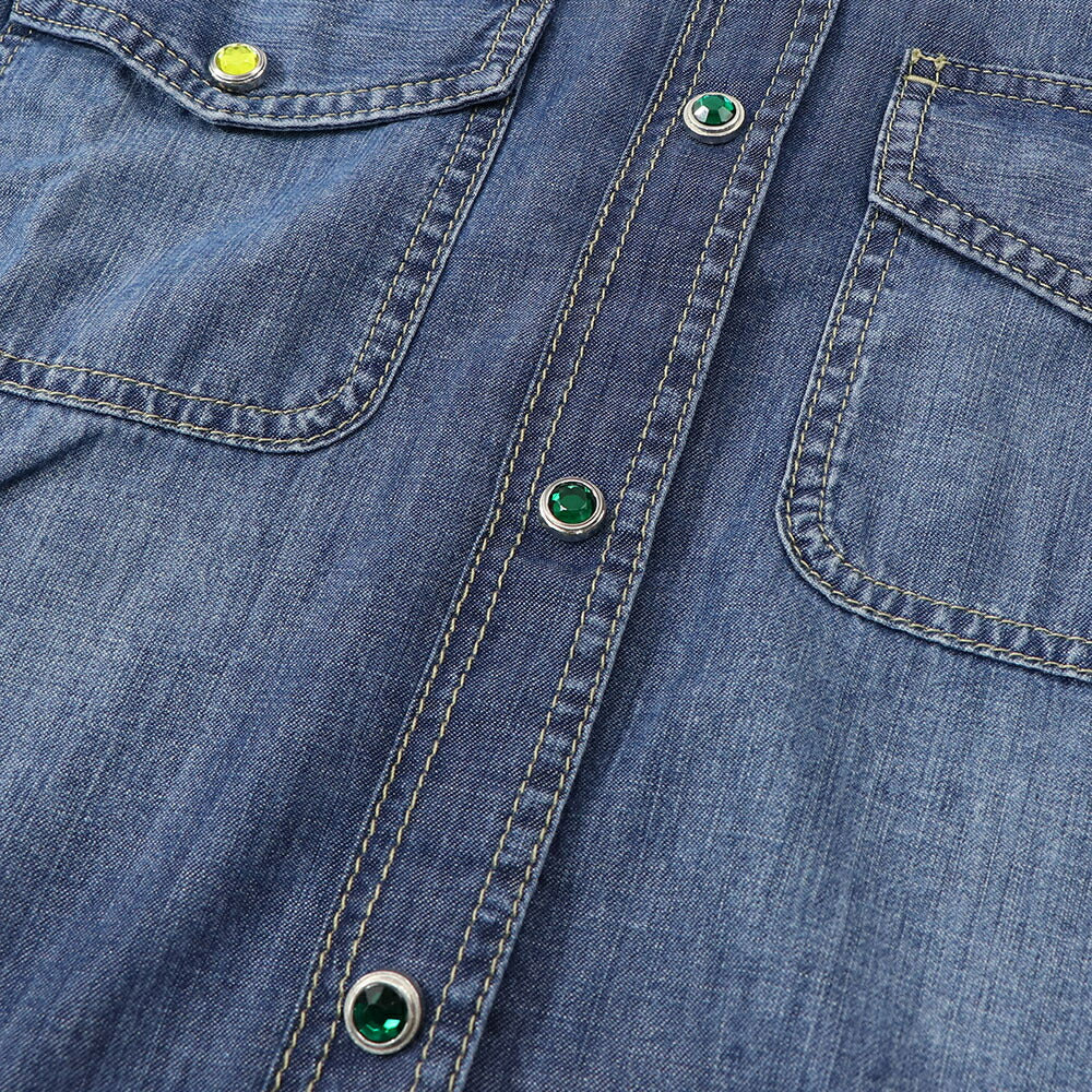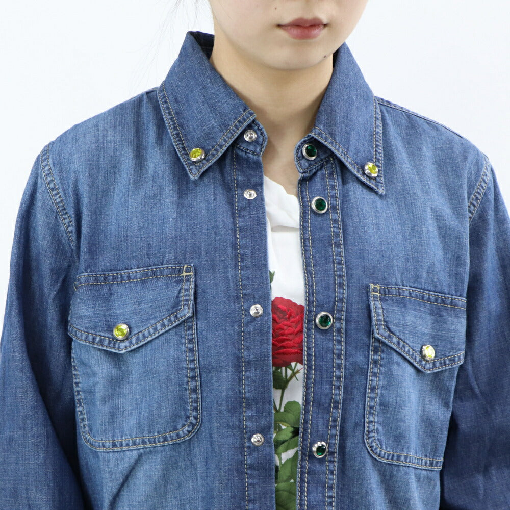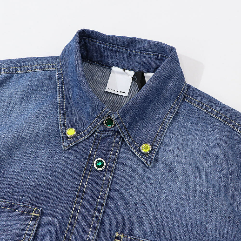 PINKO ブルー デニムシャツ ラインストーン 100202-A0I9