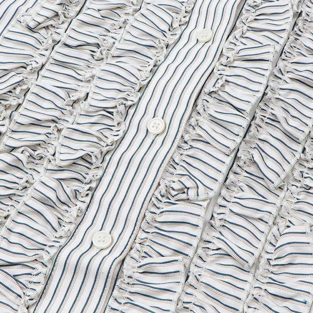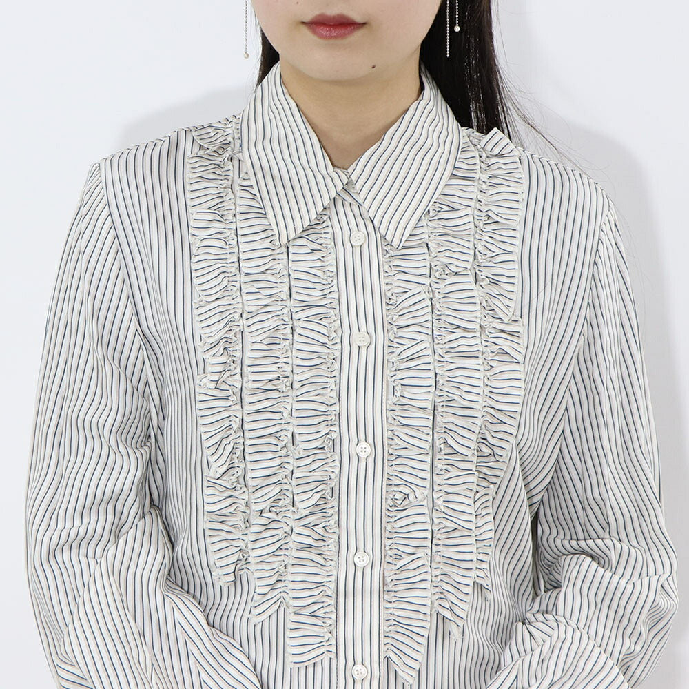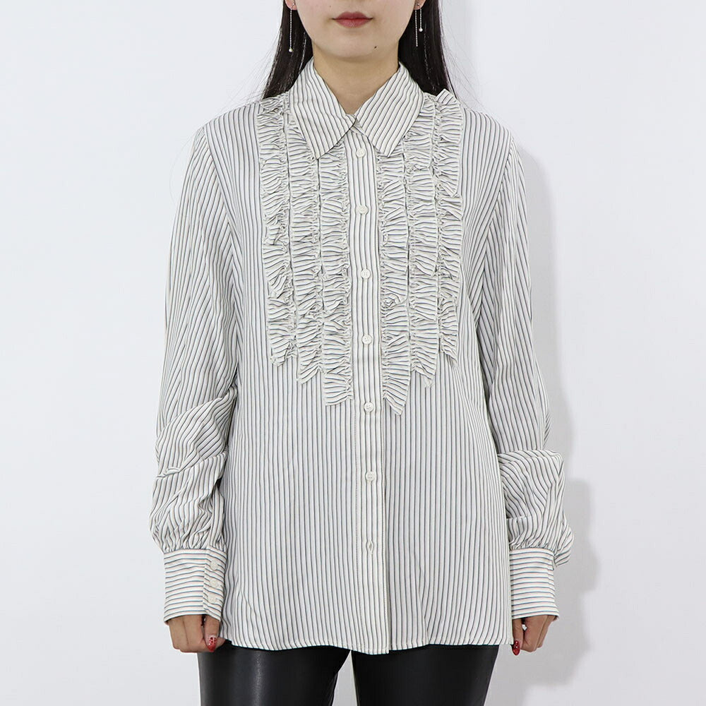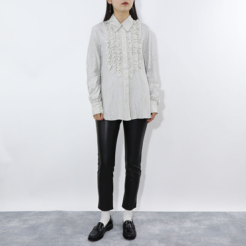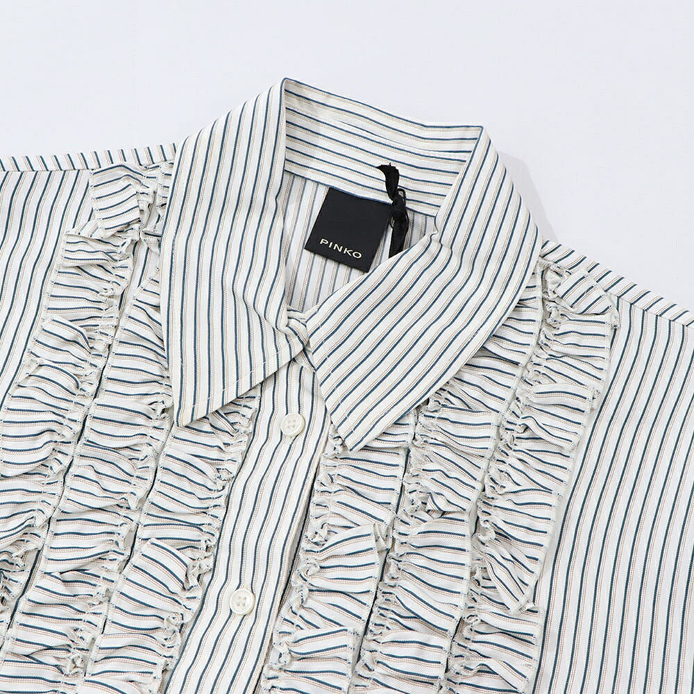 PINKO ブラウス ホワイト×グリーン ストライプ フリル 1G14WM-7946