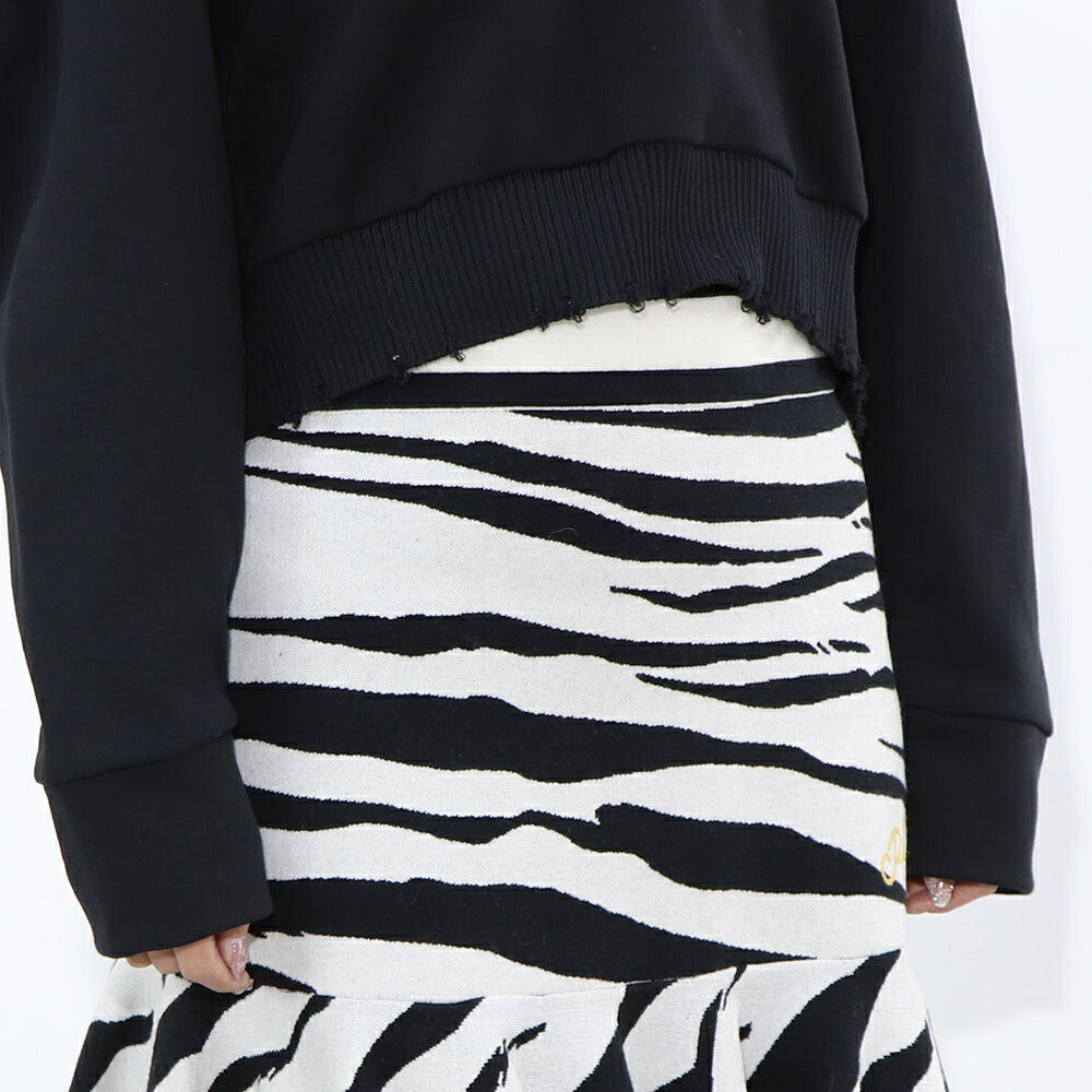 PINKO ホワイト×ブラック ゼブラ柄 ミニスカート ロゴ 刺繍 1G17N4-Y81Y