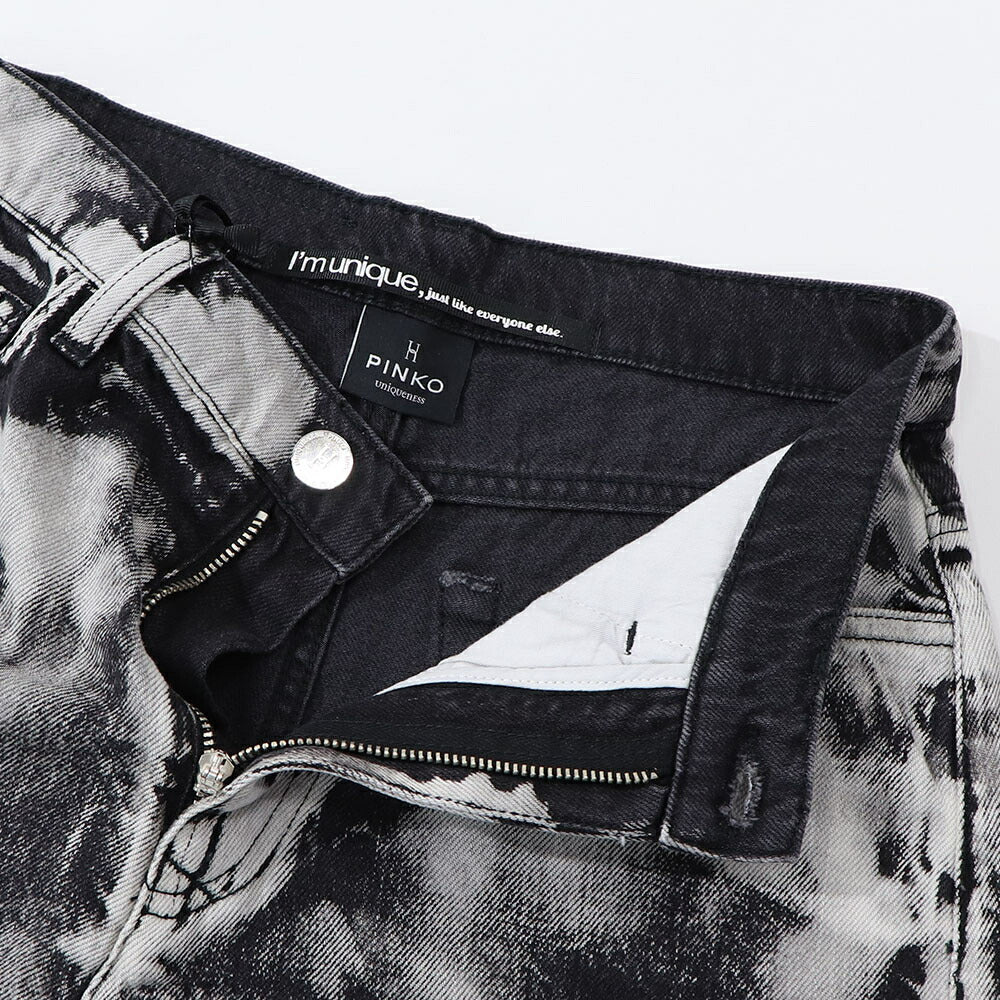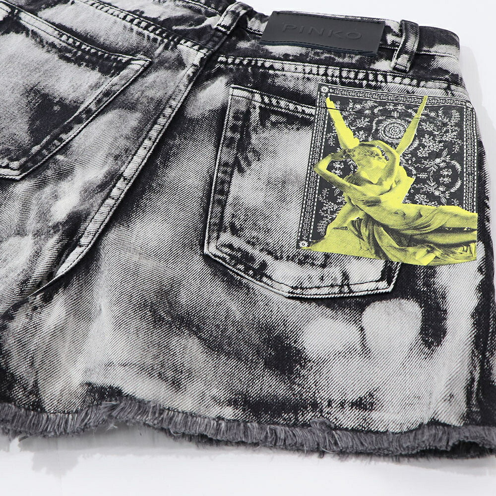 PINKO ショートパンツ ブラック×ホワイト タイダイ柄 南京錠 1Q1031-Y6A8