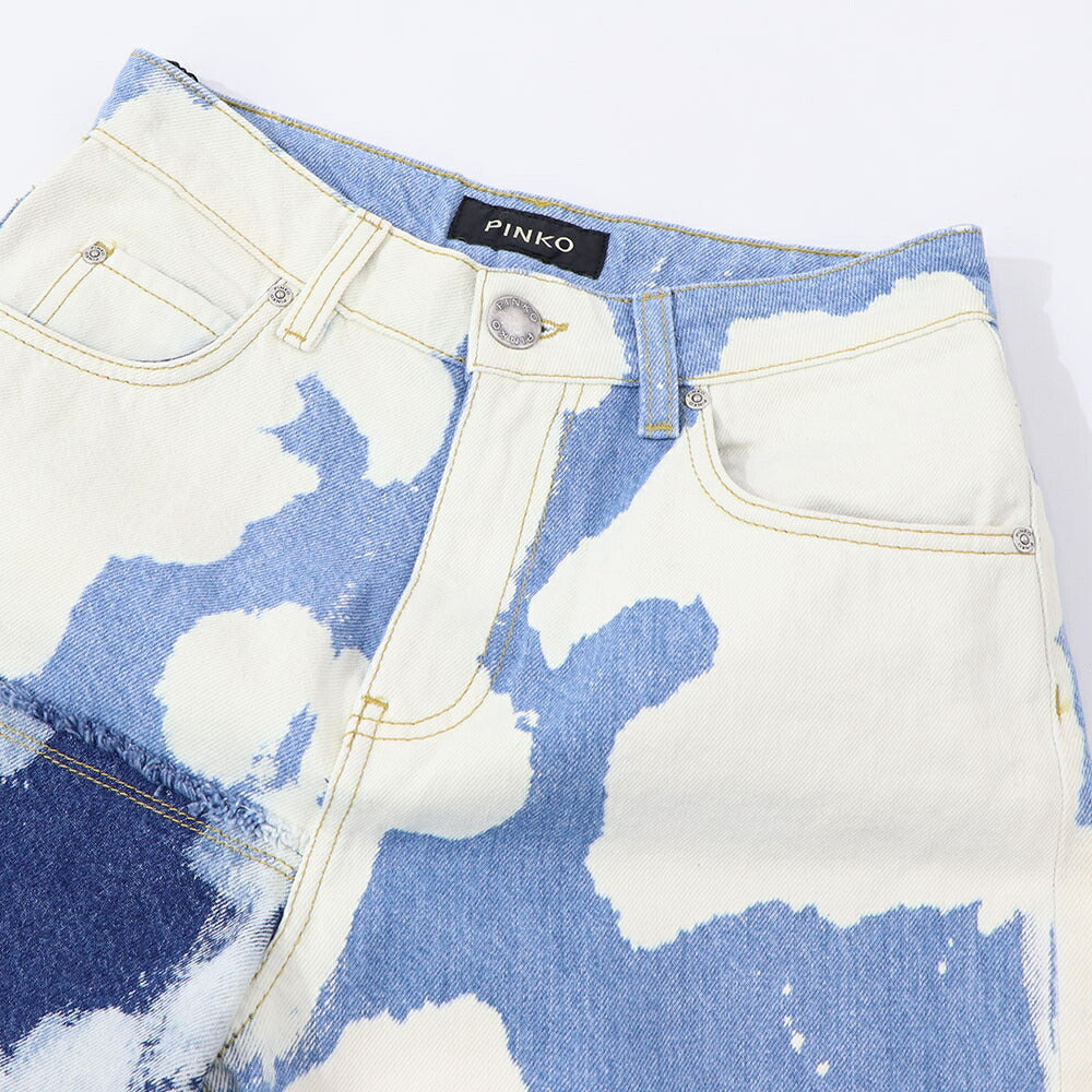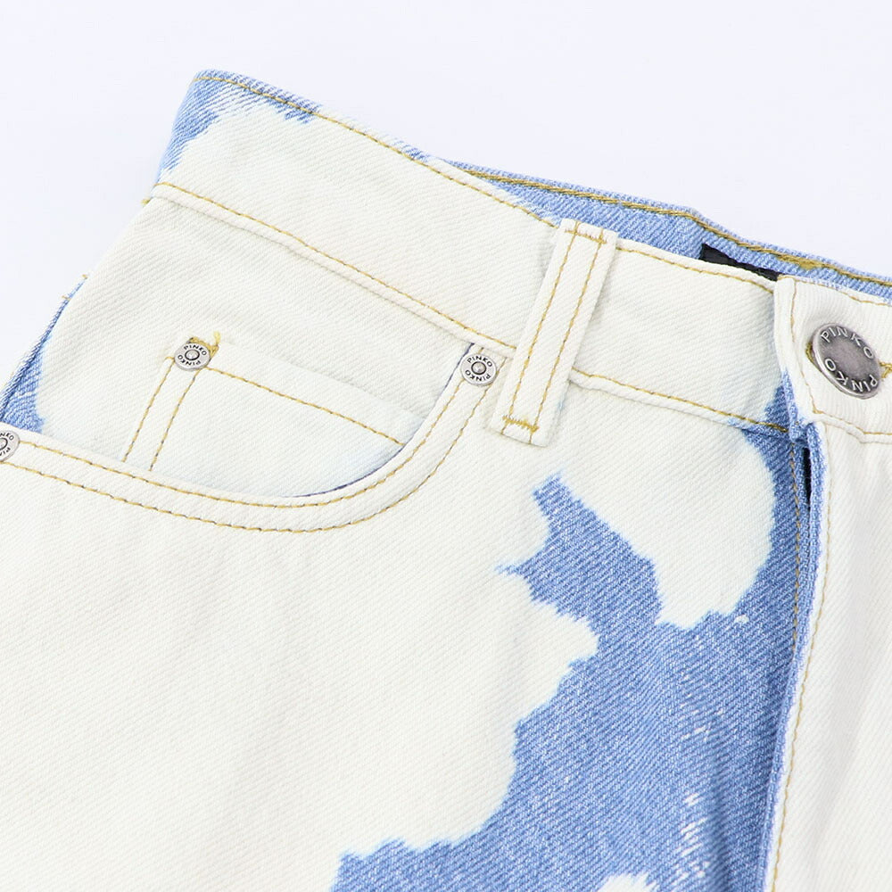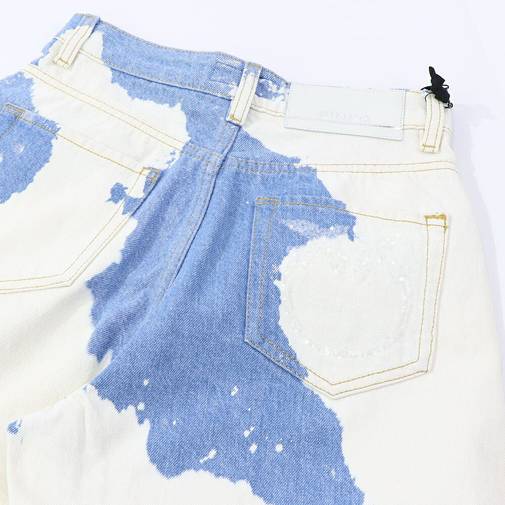 PINKO デニムパンツ ブルー×ホワイト ストレート スパンコール 1J10V9-Y653