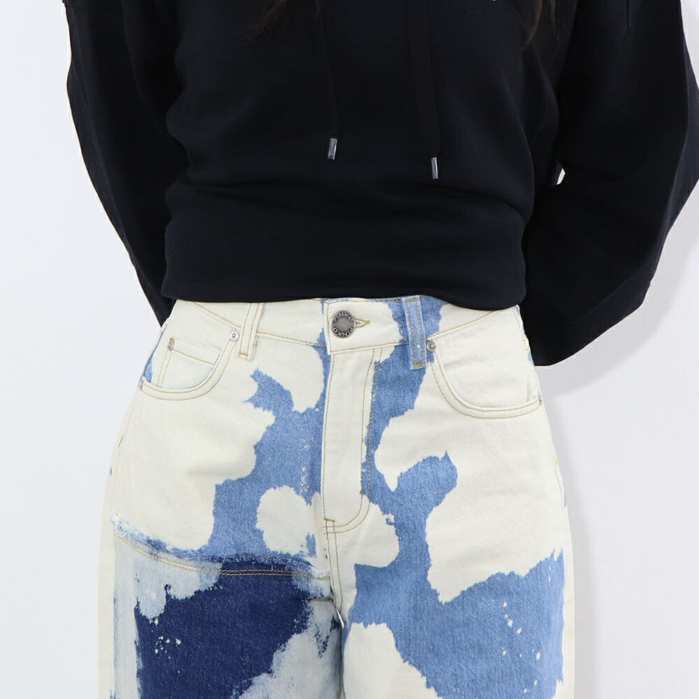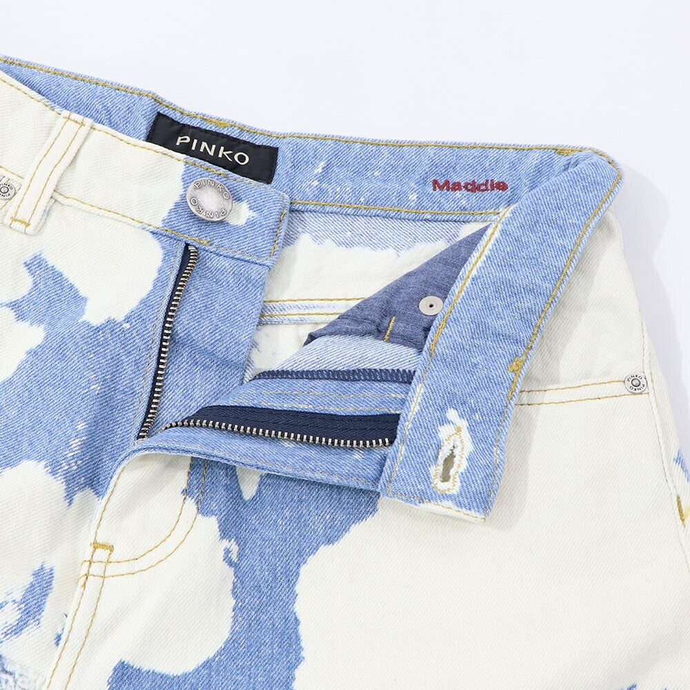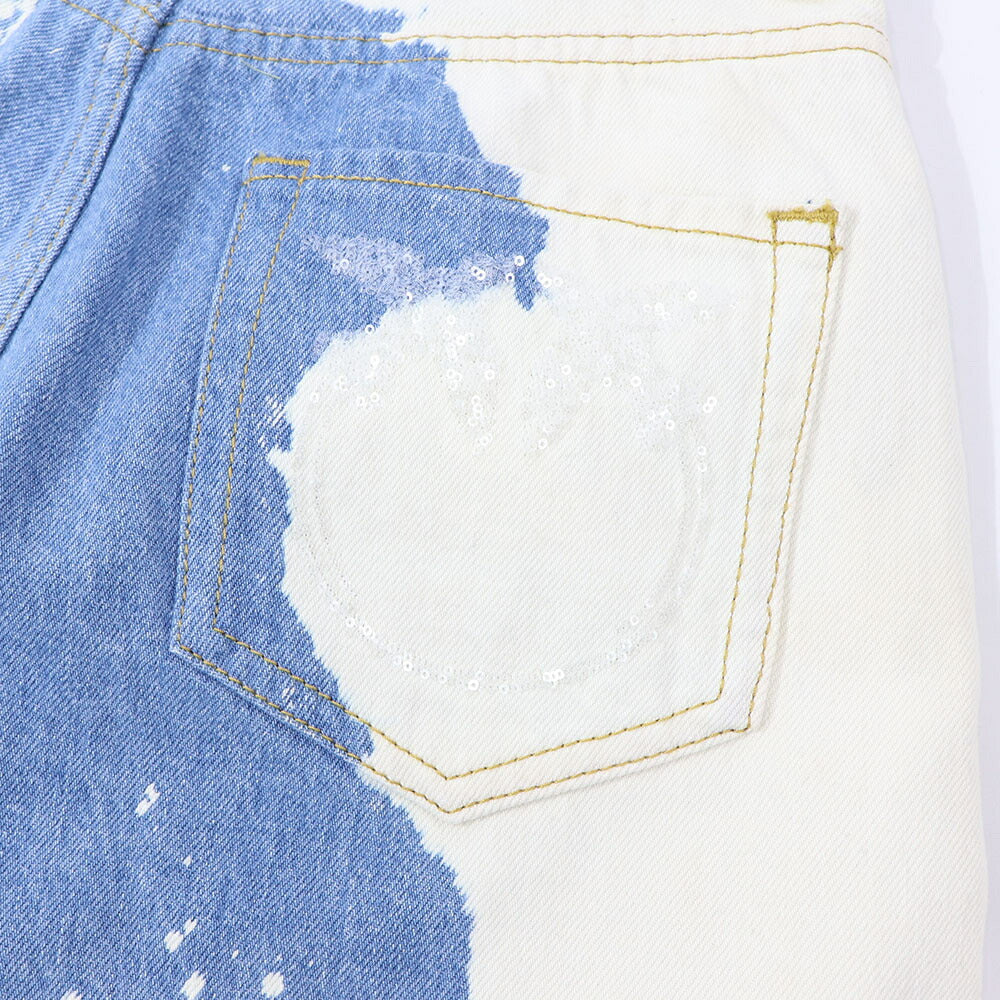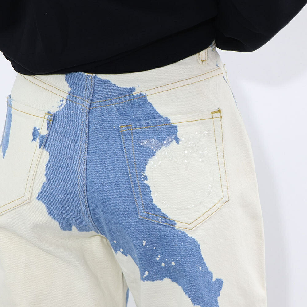 PINKO デニムパンツ ブルー×ホワイト ストレート スパンコール 1J10V9-Y653