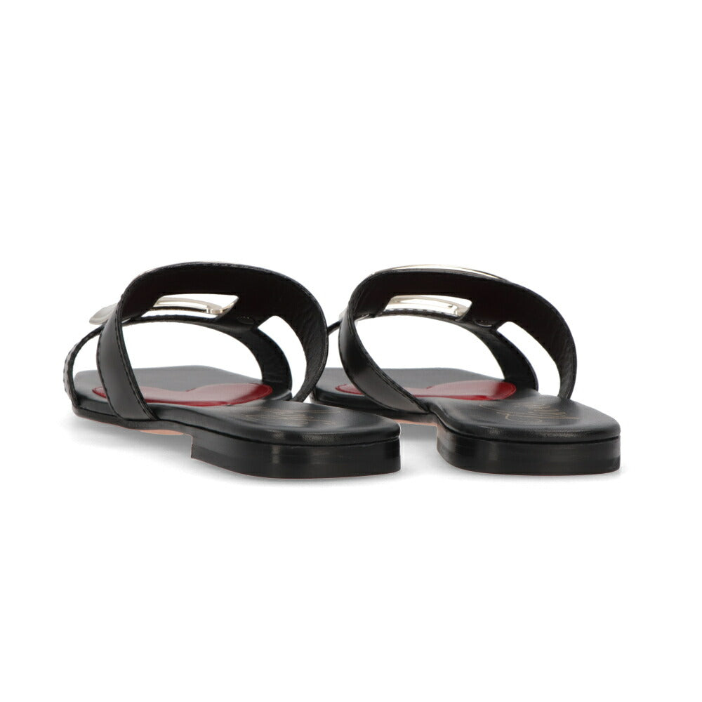 Roger Vivier サンダル ブラック ホワイト フラットミュール スクエアトゥ ヒールなし RVW74738070BSS