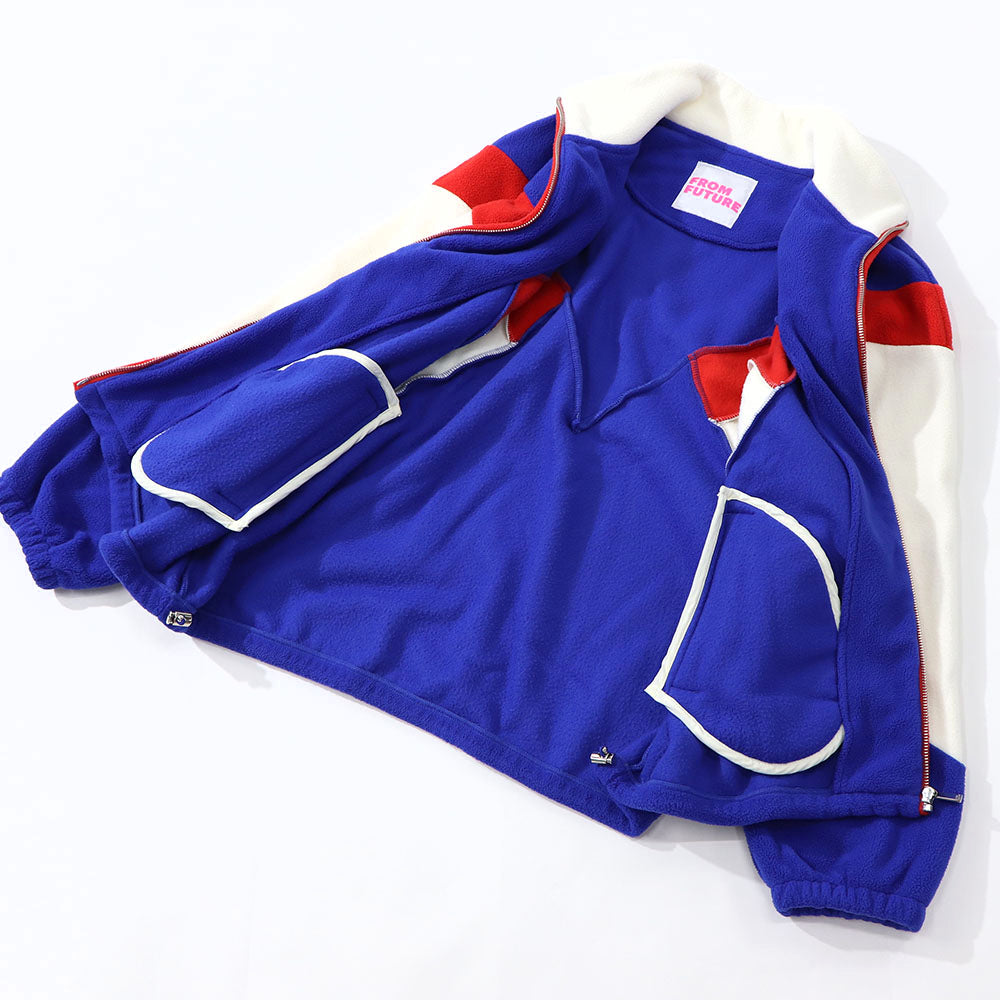 Sporty&Rich ブルゾン ブルー フリース ロゴ 刺繍 マルチカラー