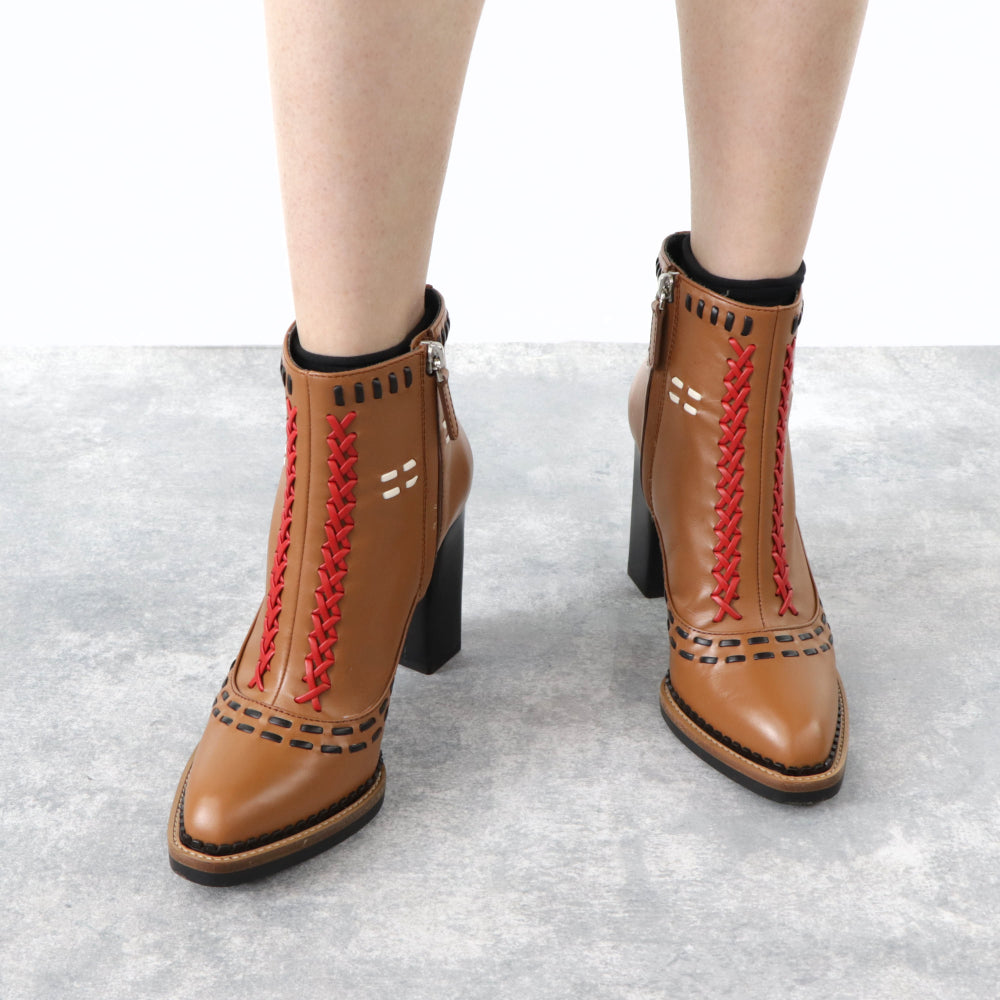 TOD’S ショートブーツ ブラウン ハイヒール ブロックヒール