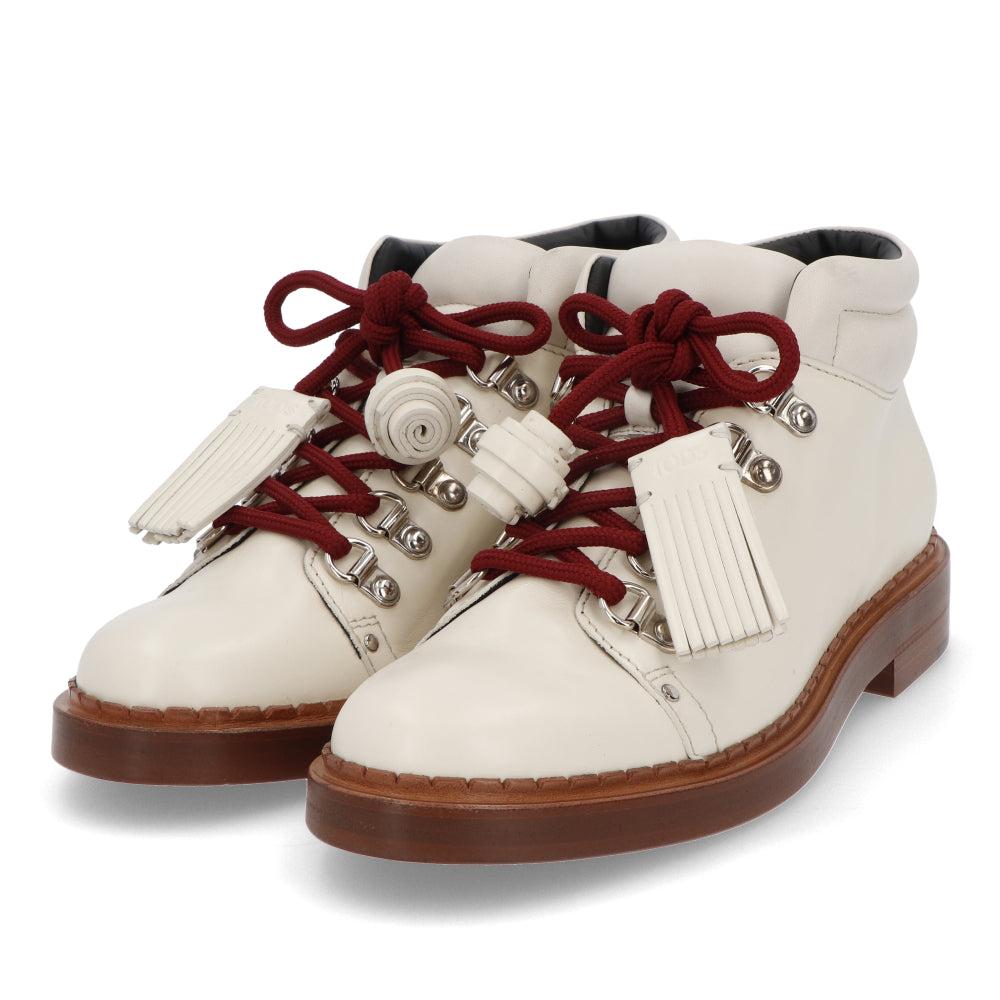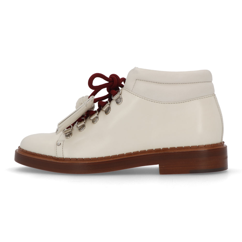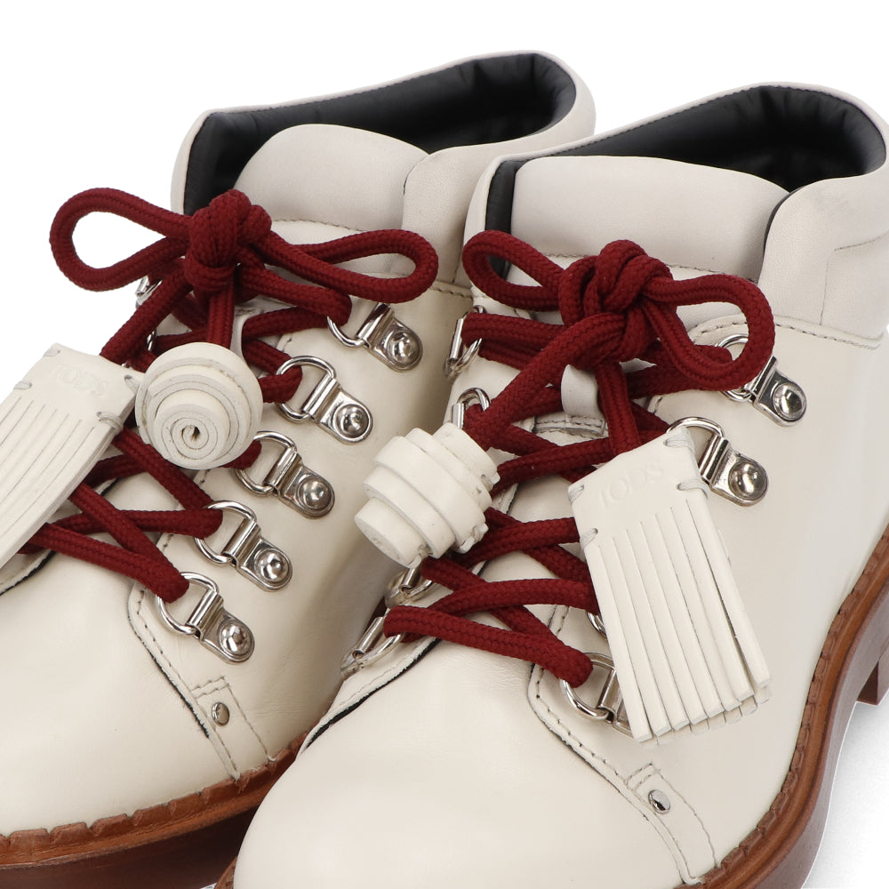 TOD’S ショートブーツ アイボリー レザー レースアップ