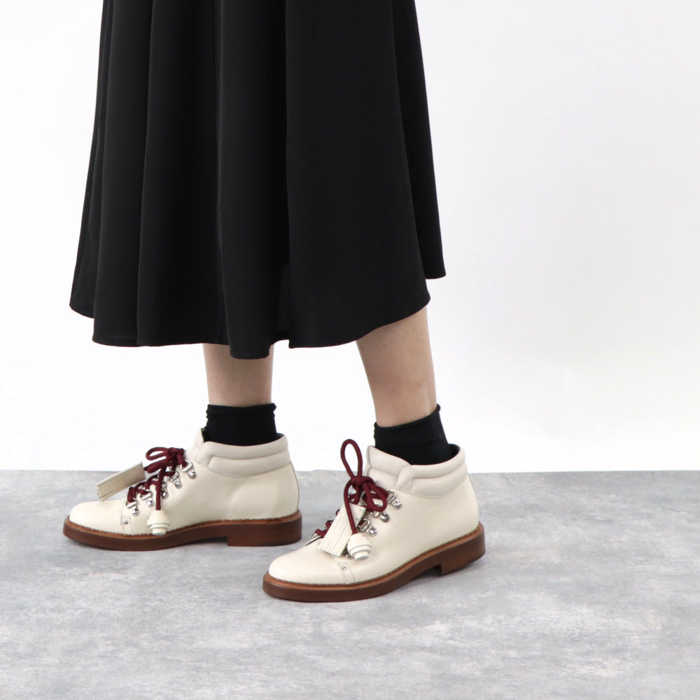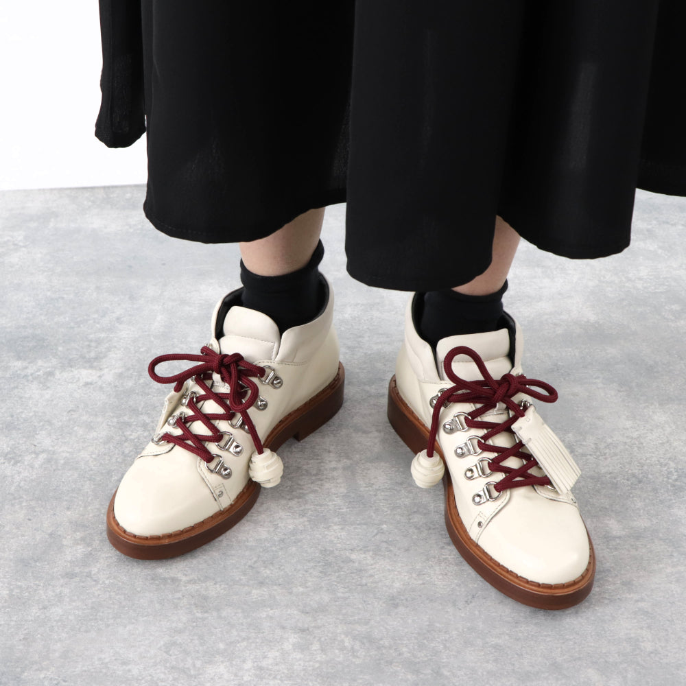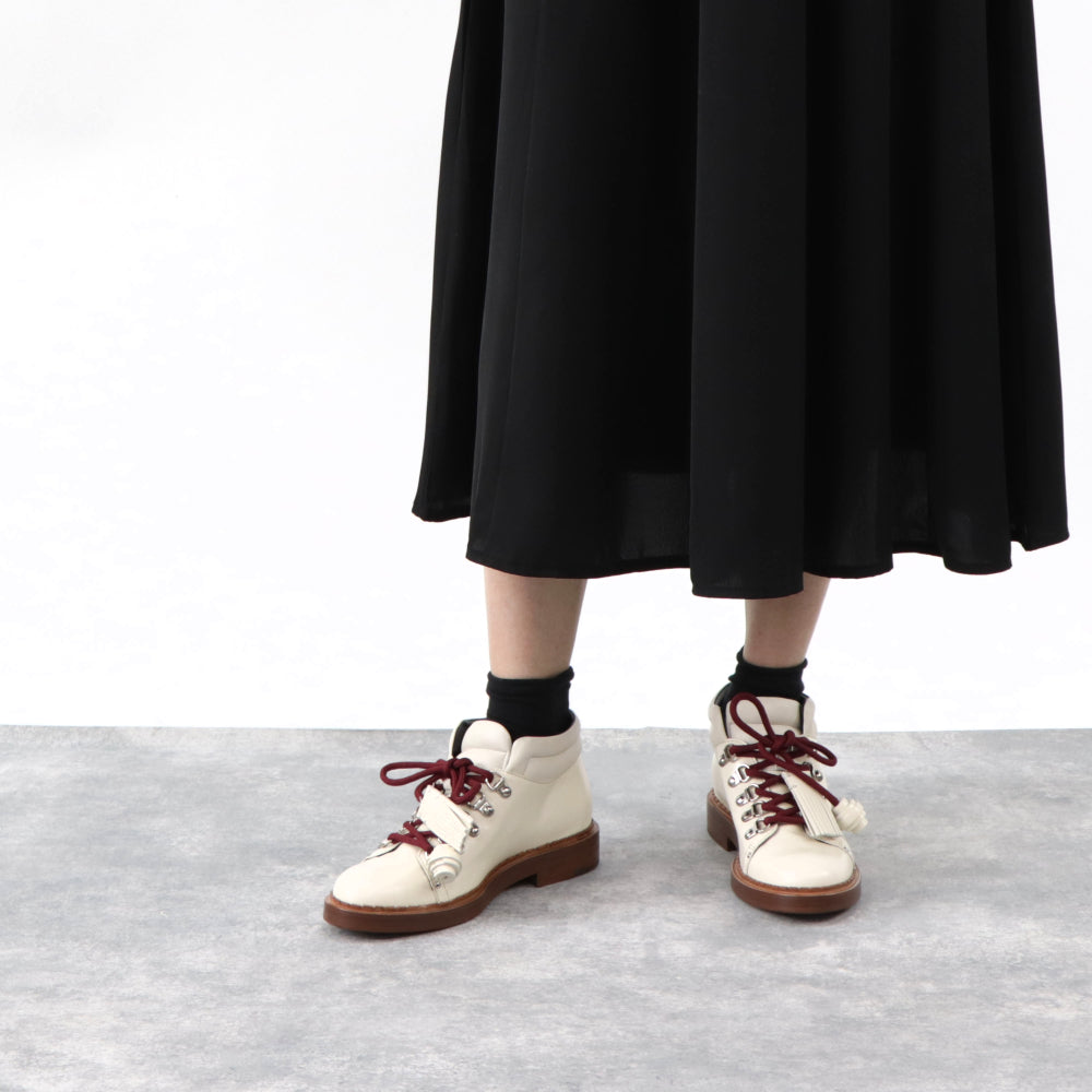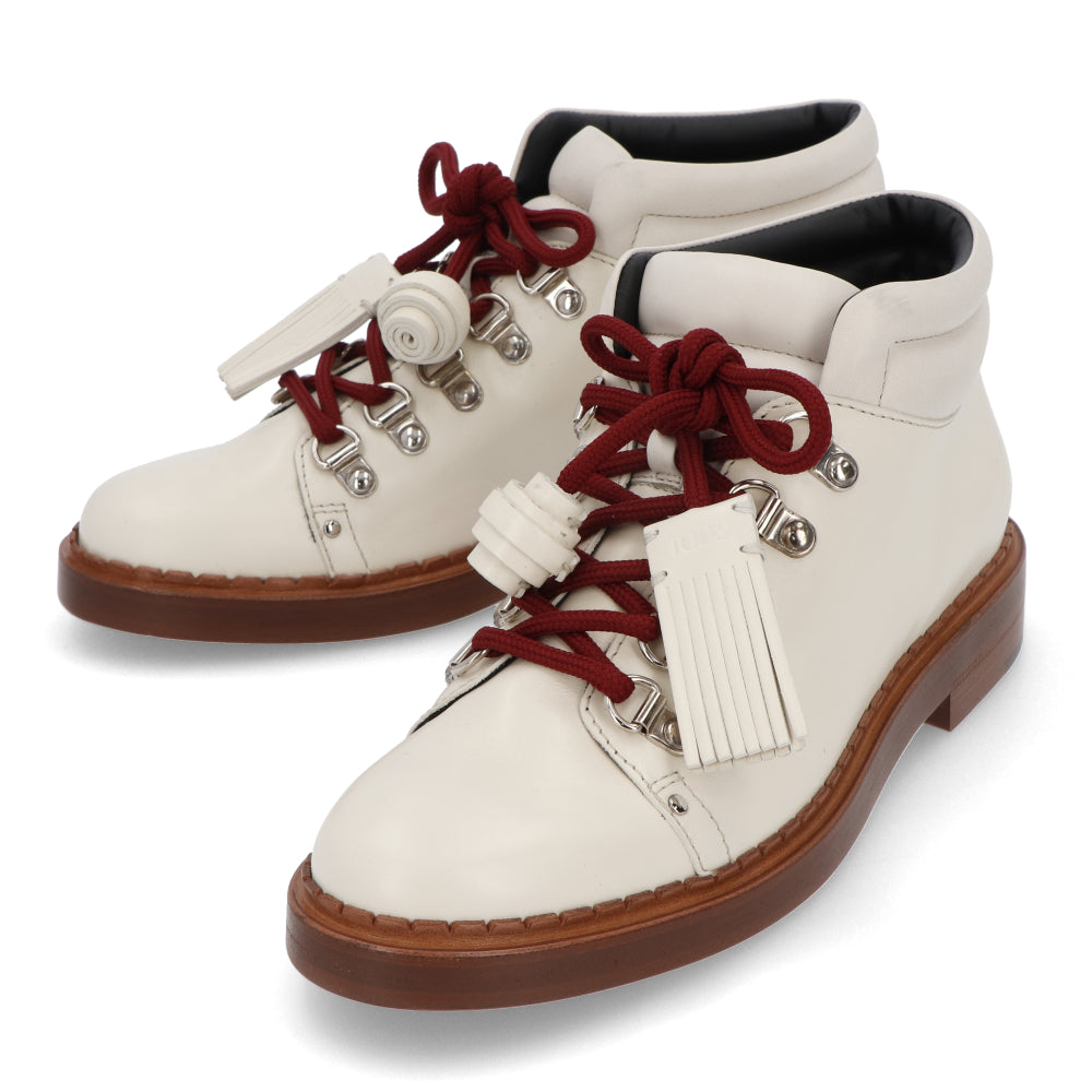 TOD’S ショートブーツ アイボリー レザー レースアップ
