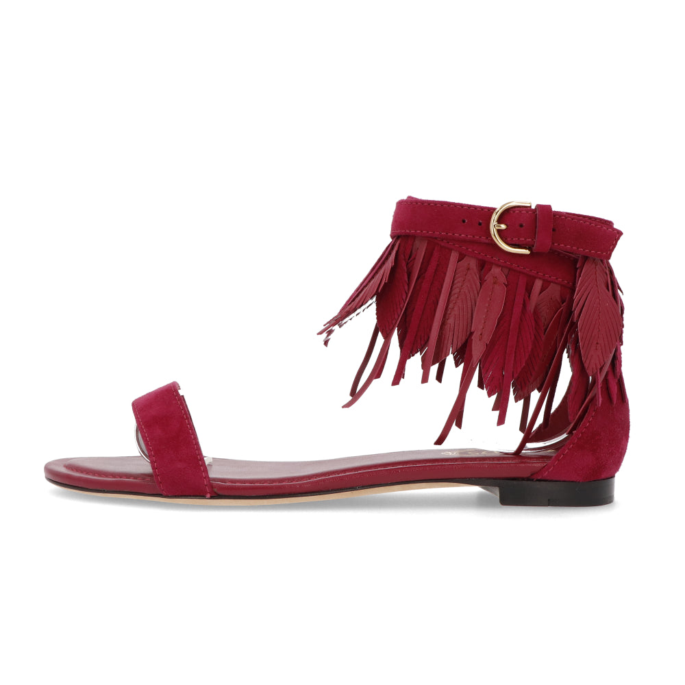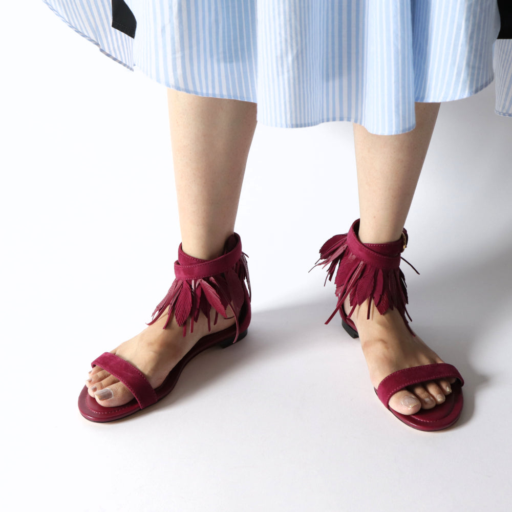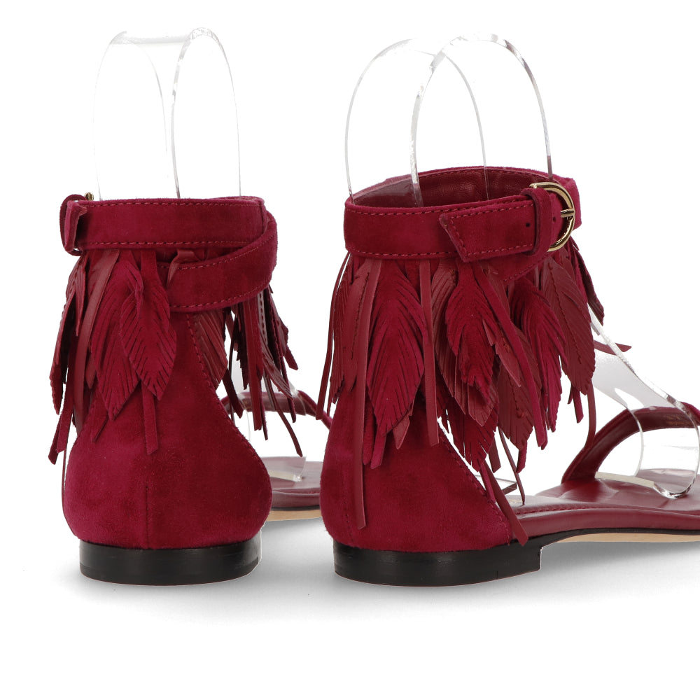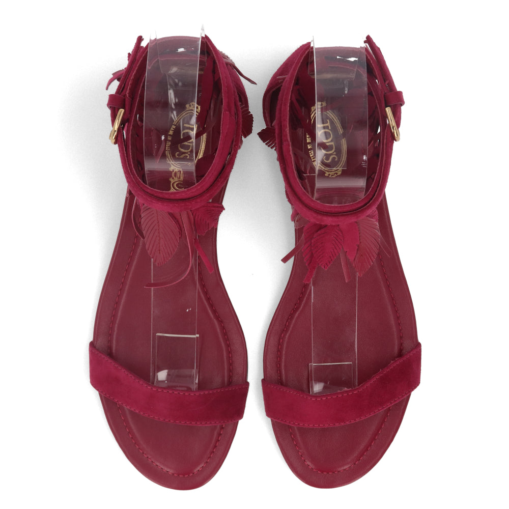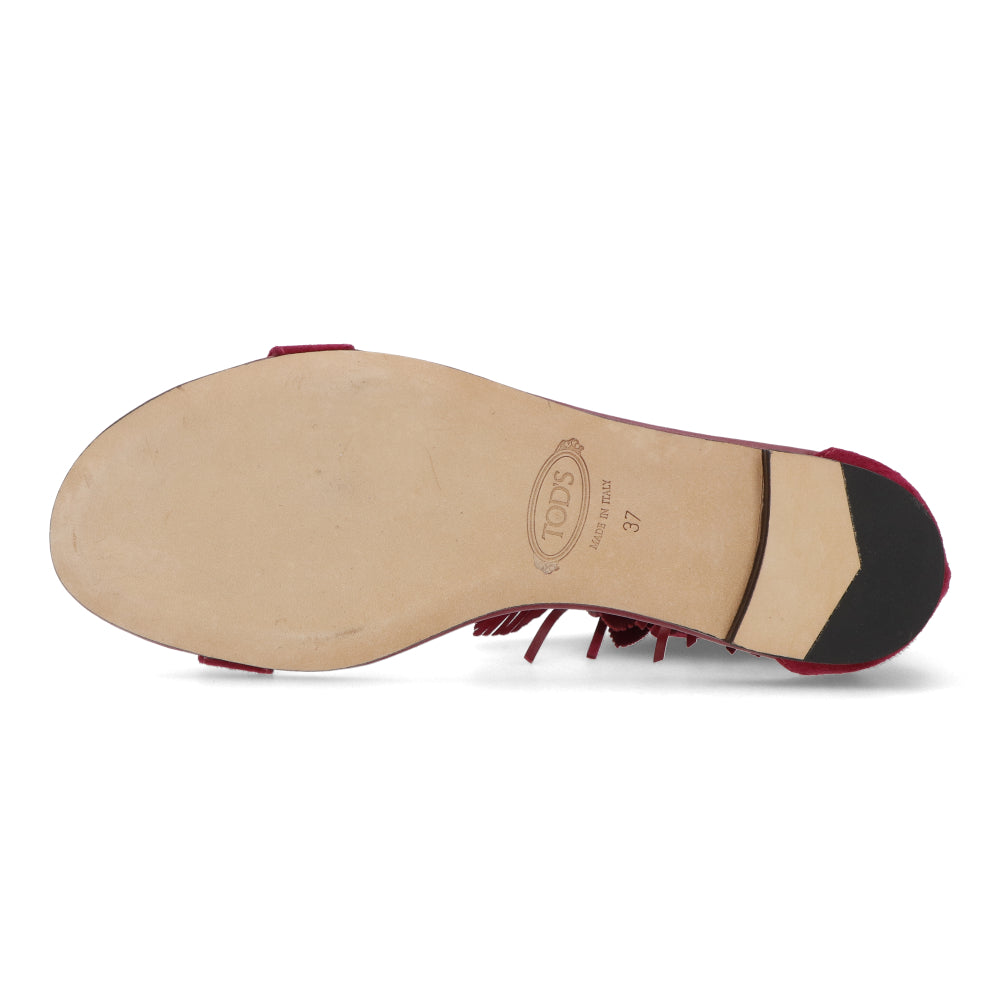 TOD’S フラットサンダル レッド スエード フリンジ付き