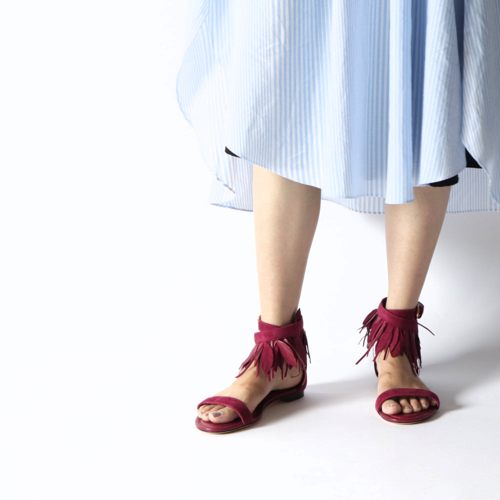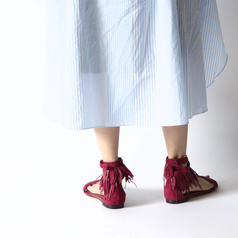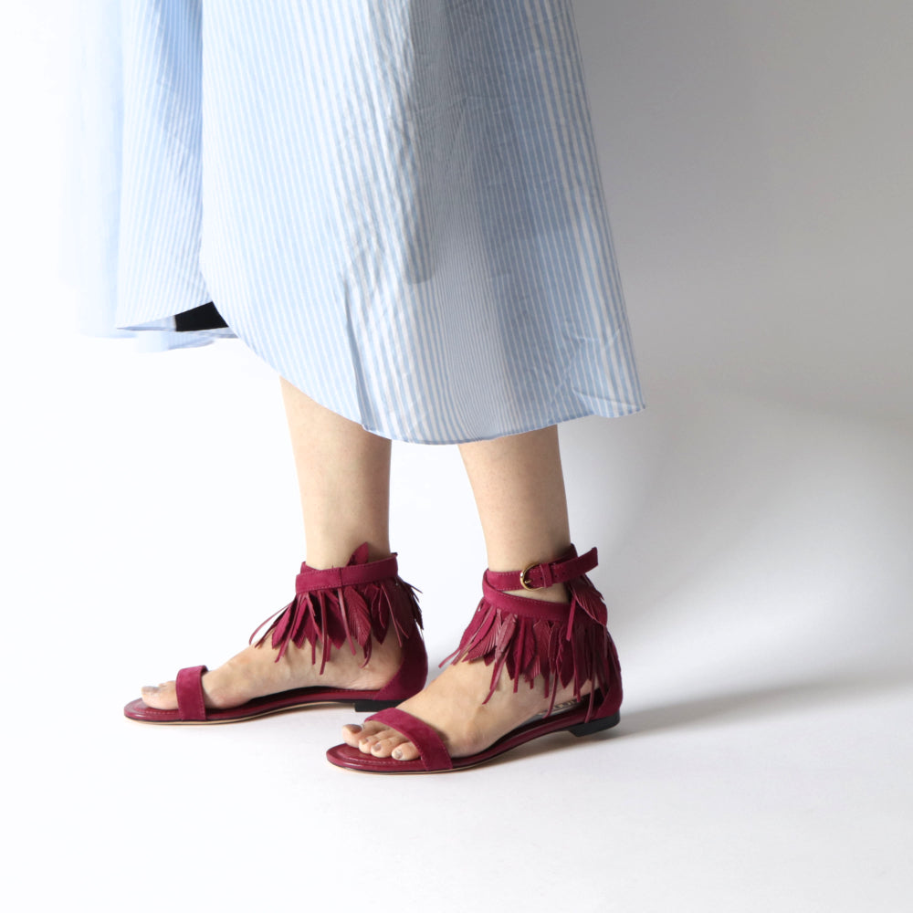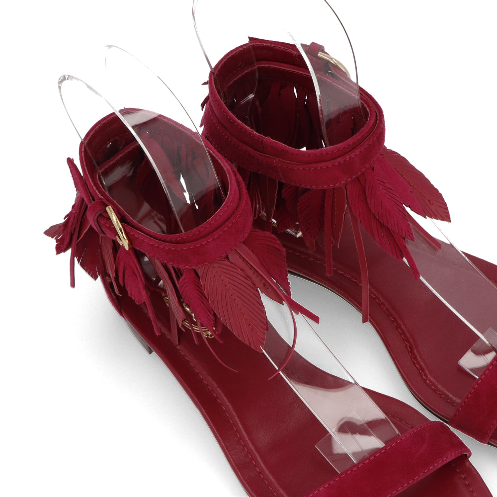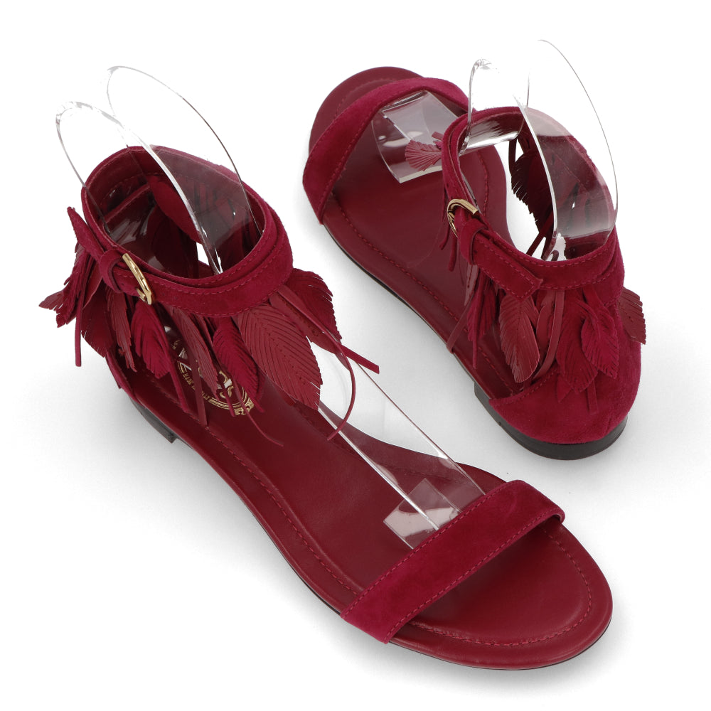 TOD’S フラットサンダル レッド スエード フリンジ付き