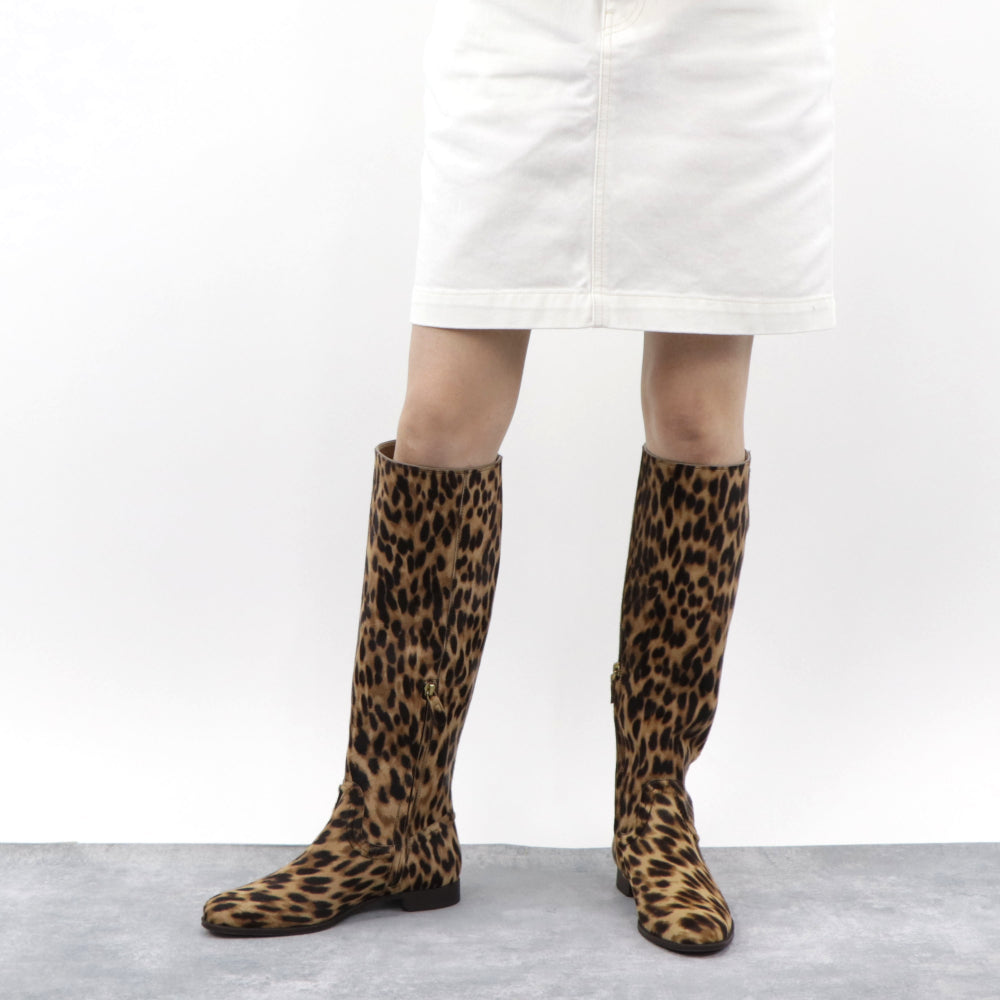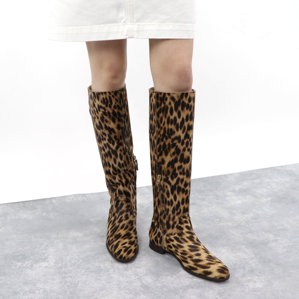 TOD’S ロングブーツ ブラウン系 レオパード柄 ハラコ