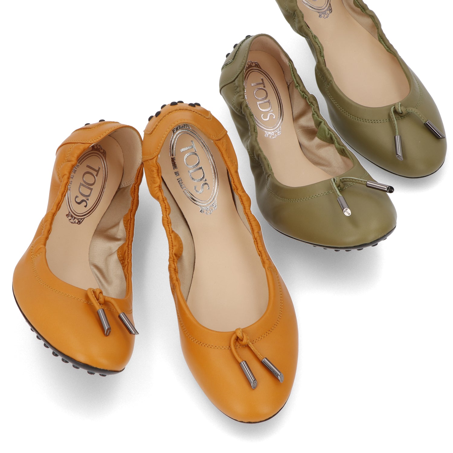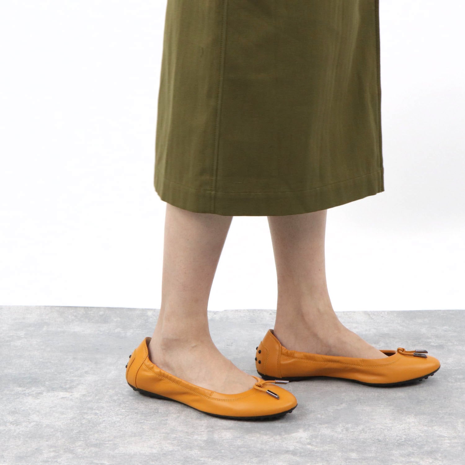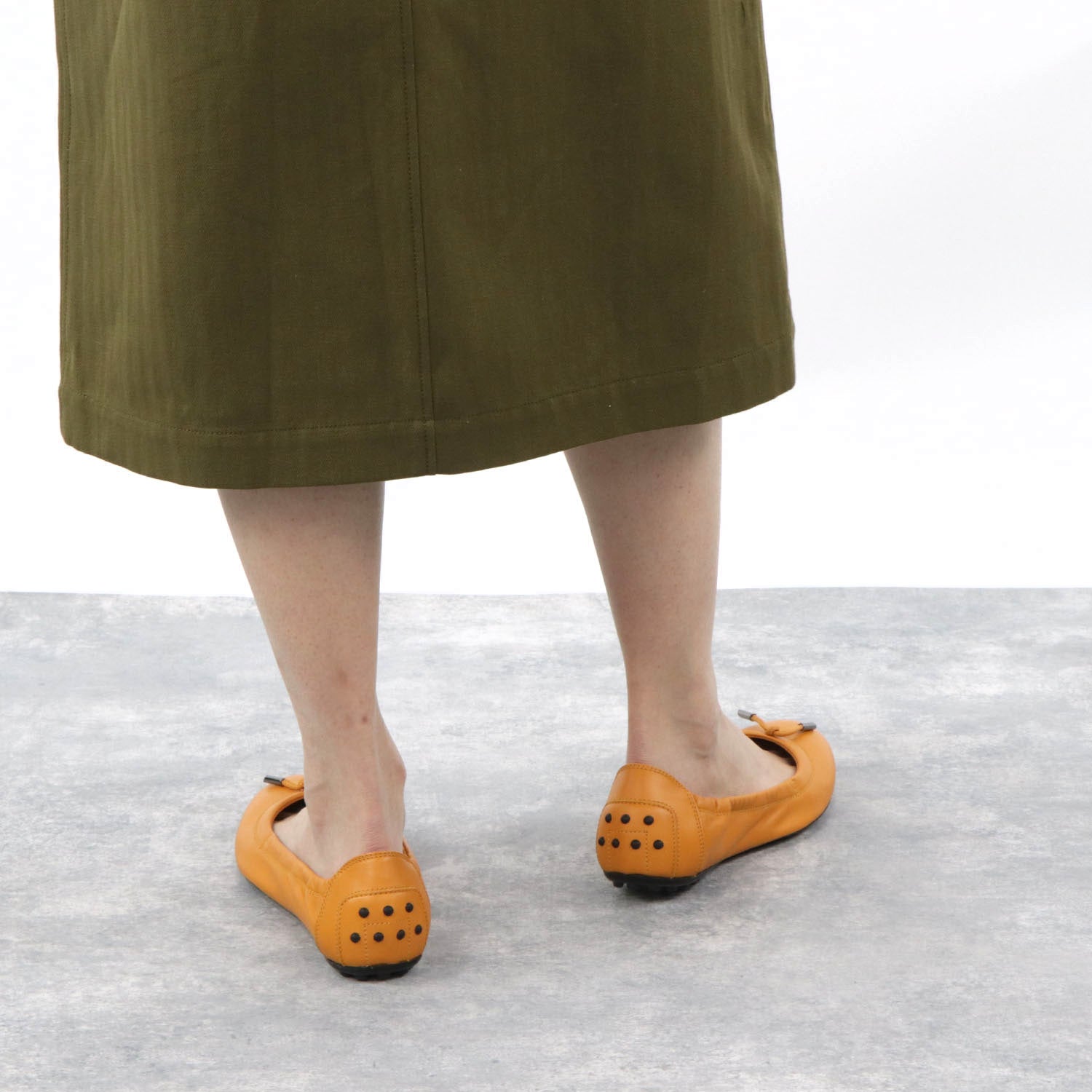 トッズ シューズ レザーシューズ バレエシューズ レディース オレンジ カーキ レザー 本革 無地 XXW0HI0346Z6W0