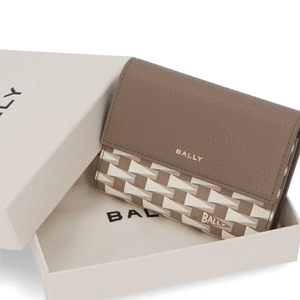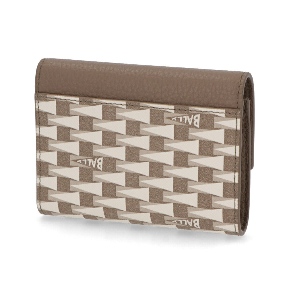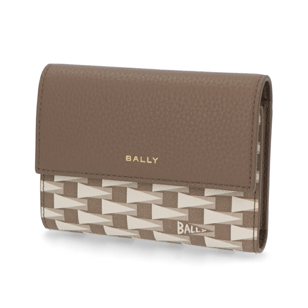 BALLY 三つ折り財布 グレージュ レザー ロゴ ペナントモチーフ