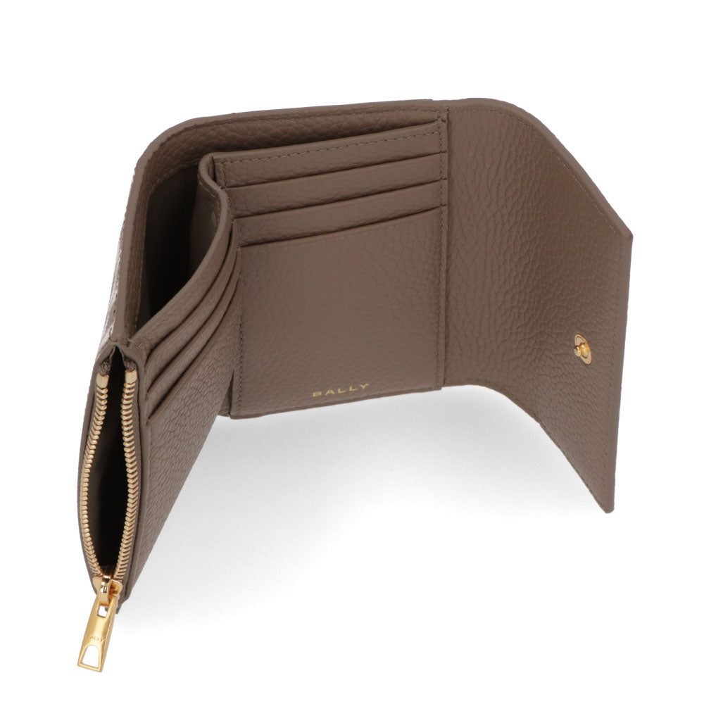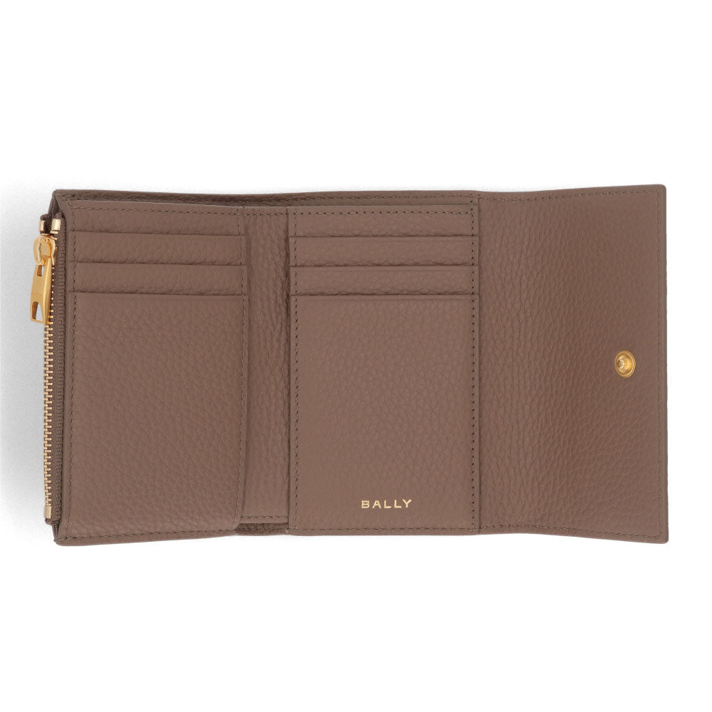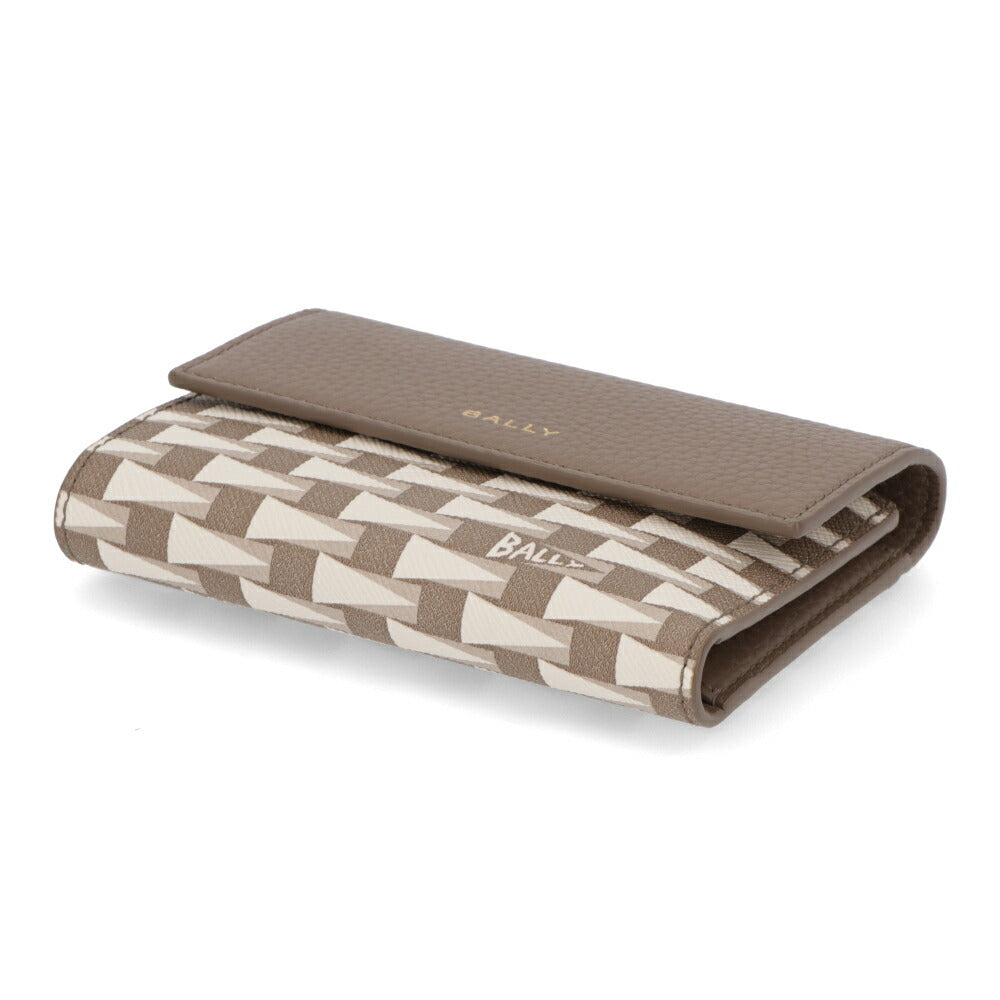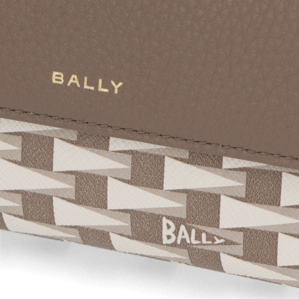 BALLY 三つ折り財布 グレージュ レザー ロゴ ペナントモチーフ
