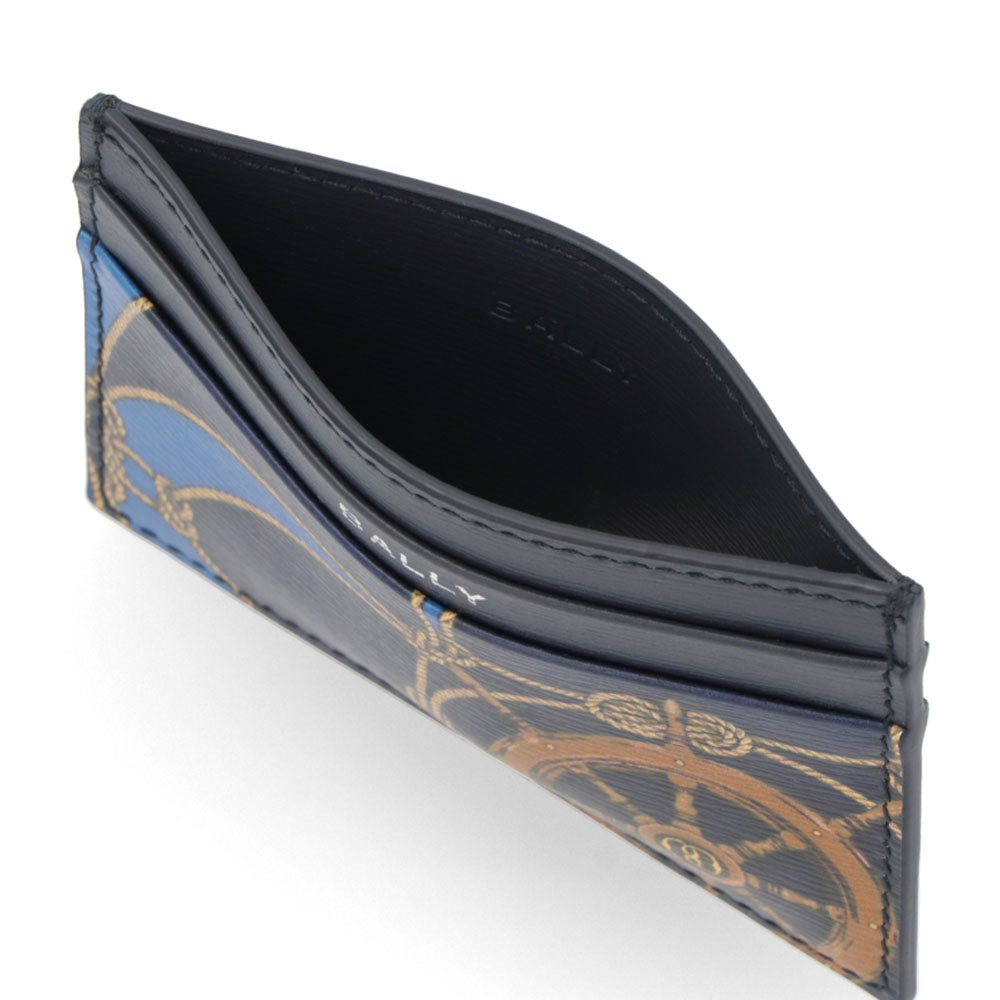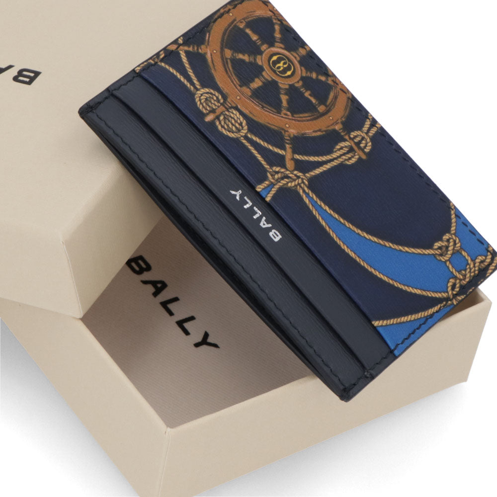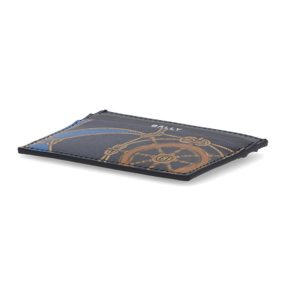 BALLY カードケース ネイビー レザー ロゴ プリント 航海