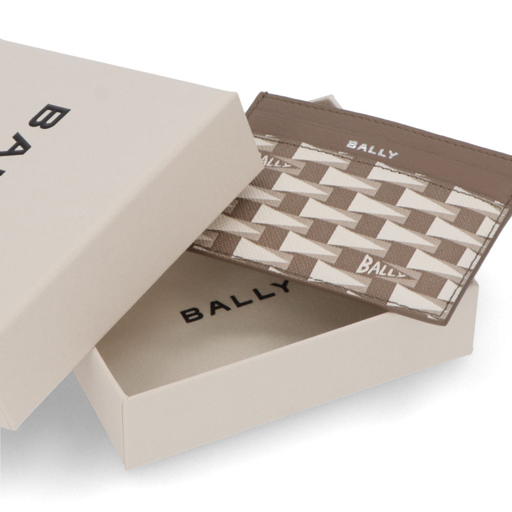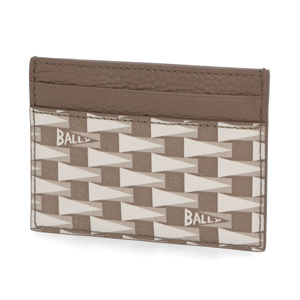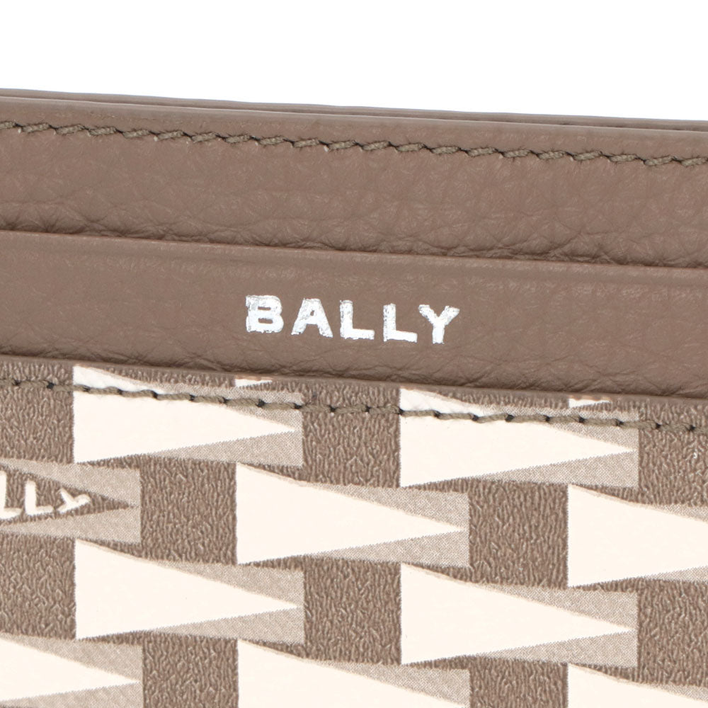 BALLY カードケース グレージュ レザー ロゴ ペナントモチーフ