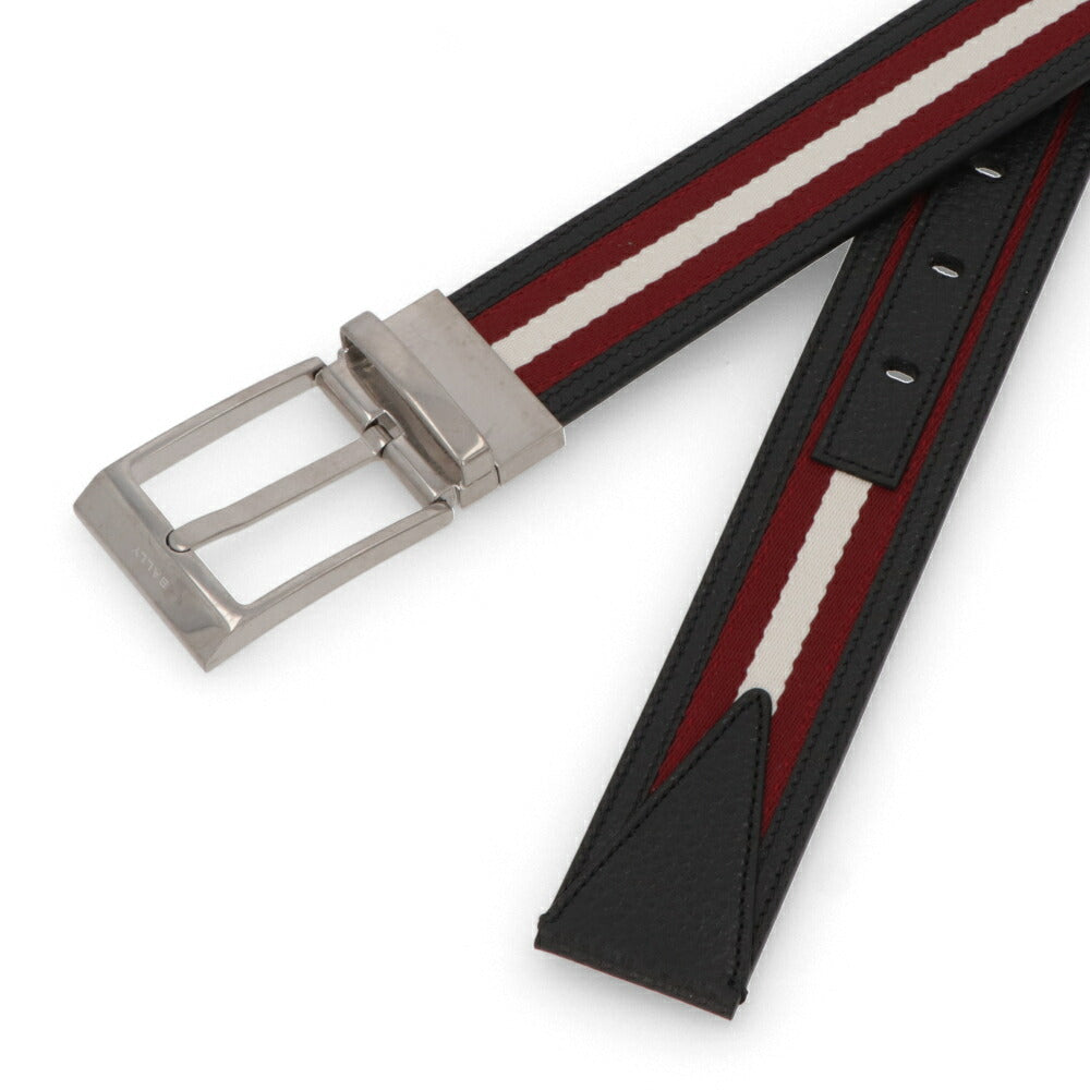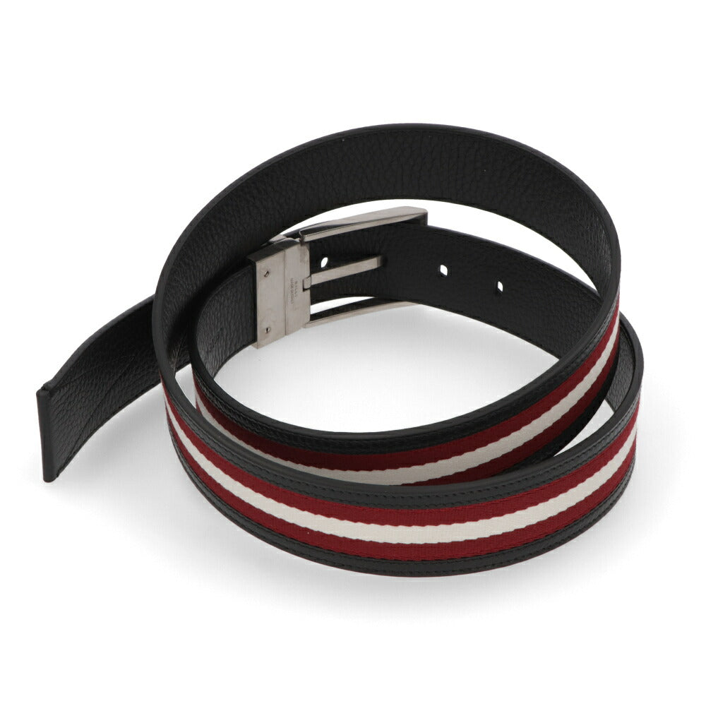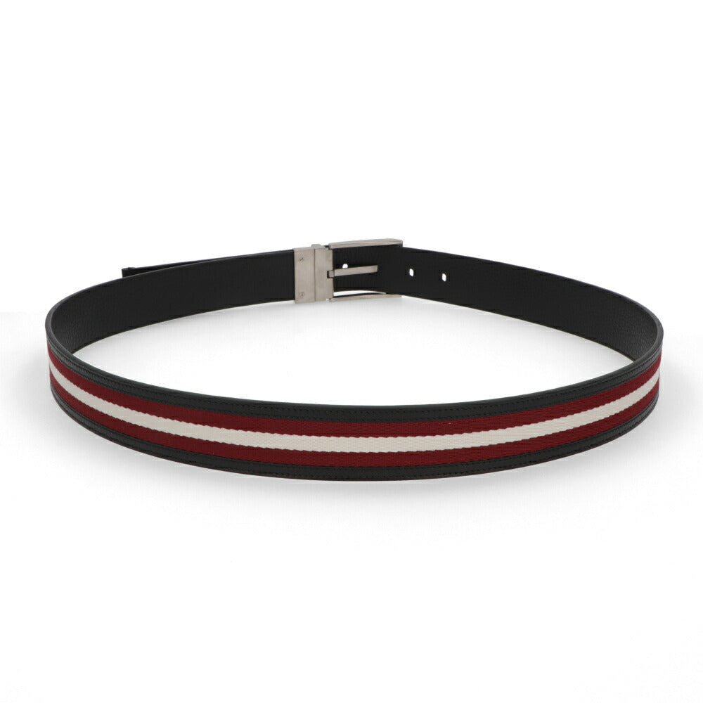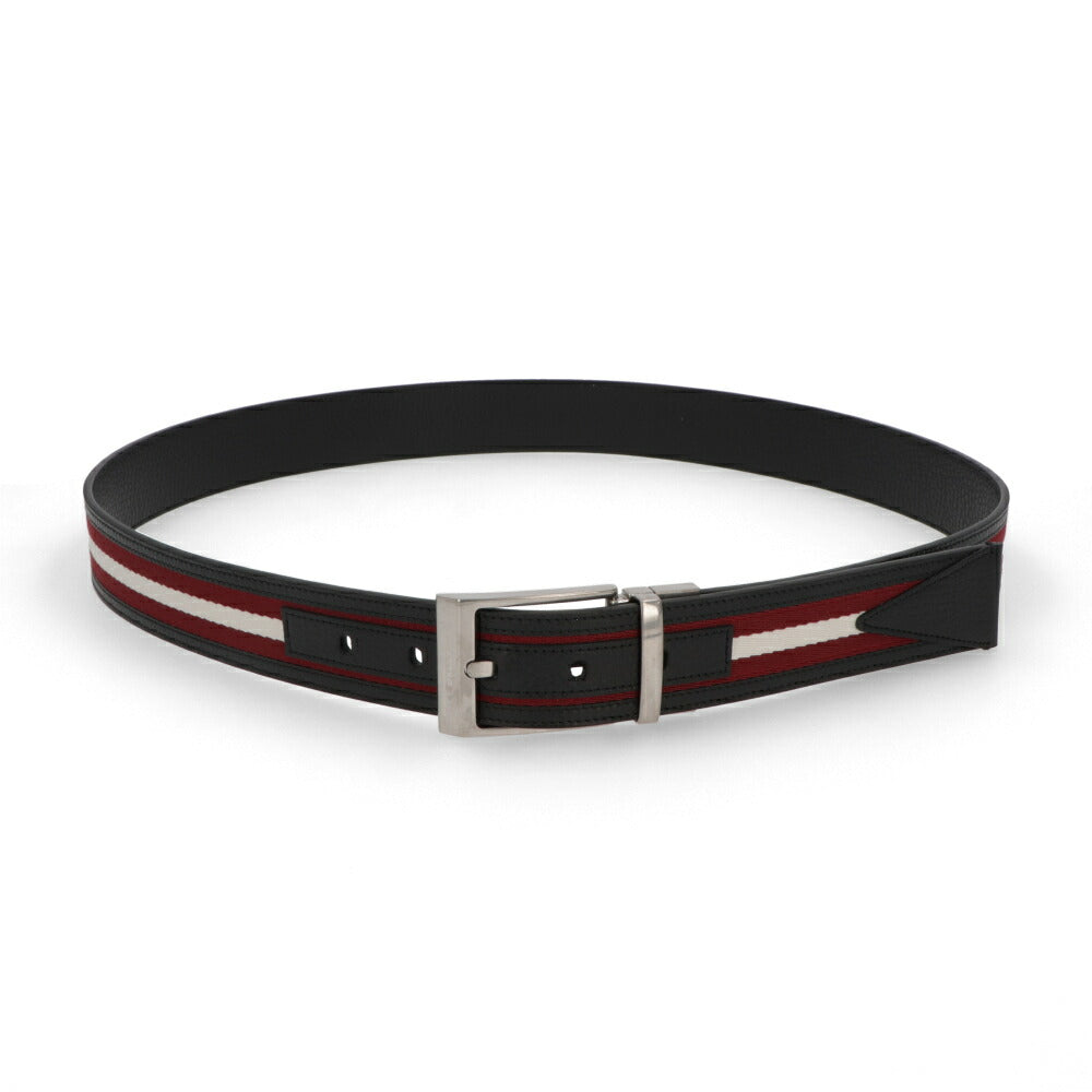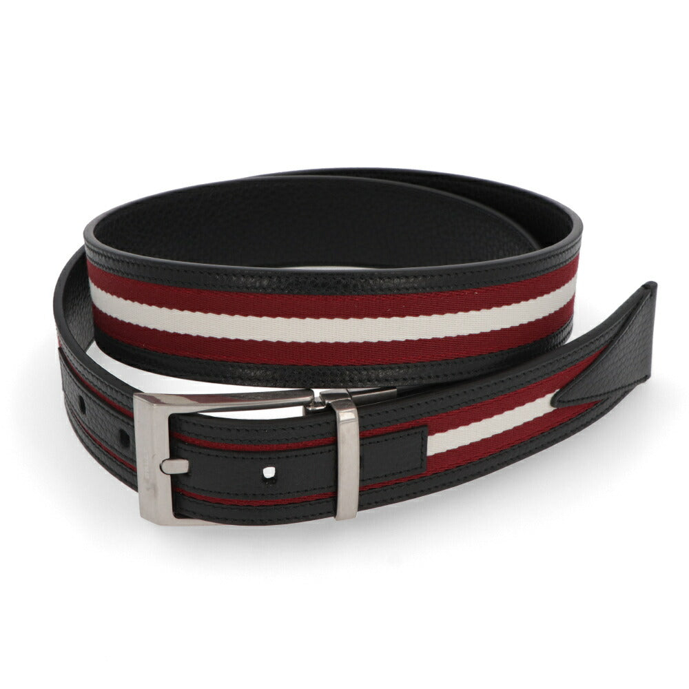 BALLY ベルト ブラック×レッド レザー キャンバス