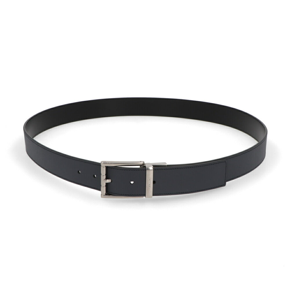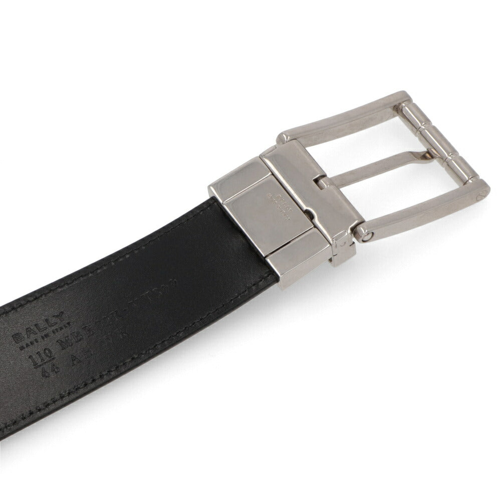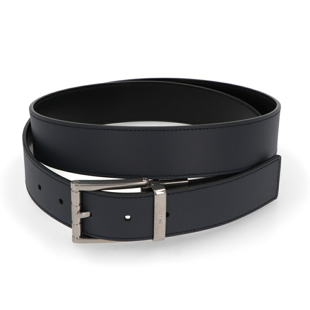 BALLY ベルト ブラック×ネイビー レザー シルバー金具