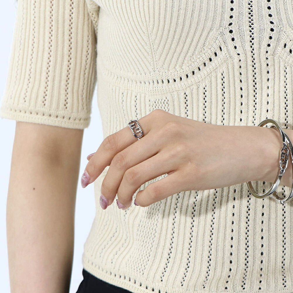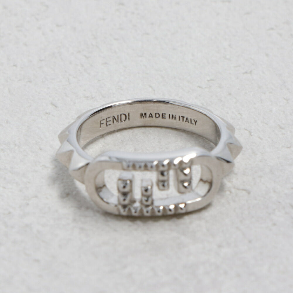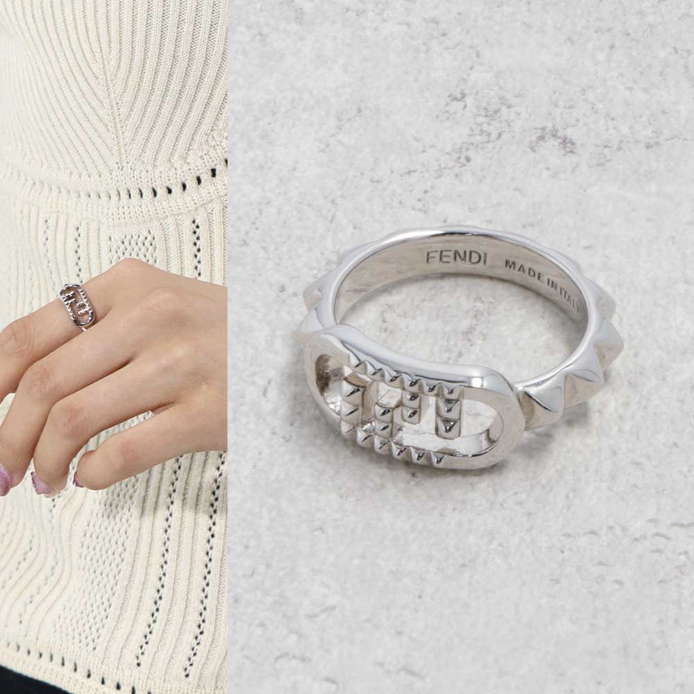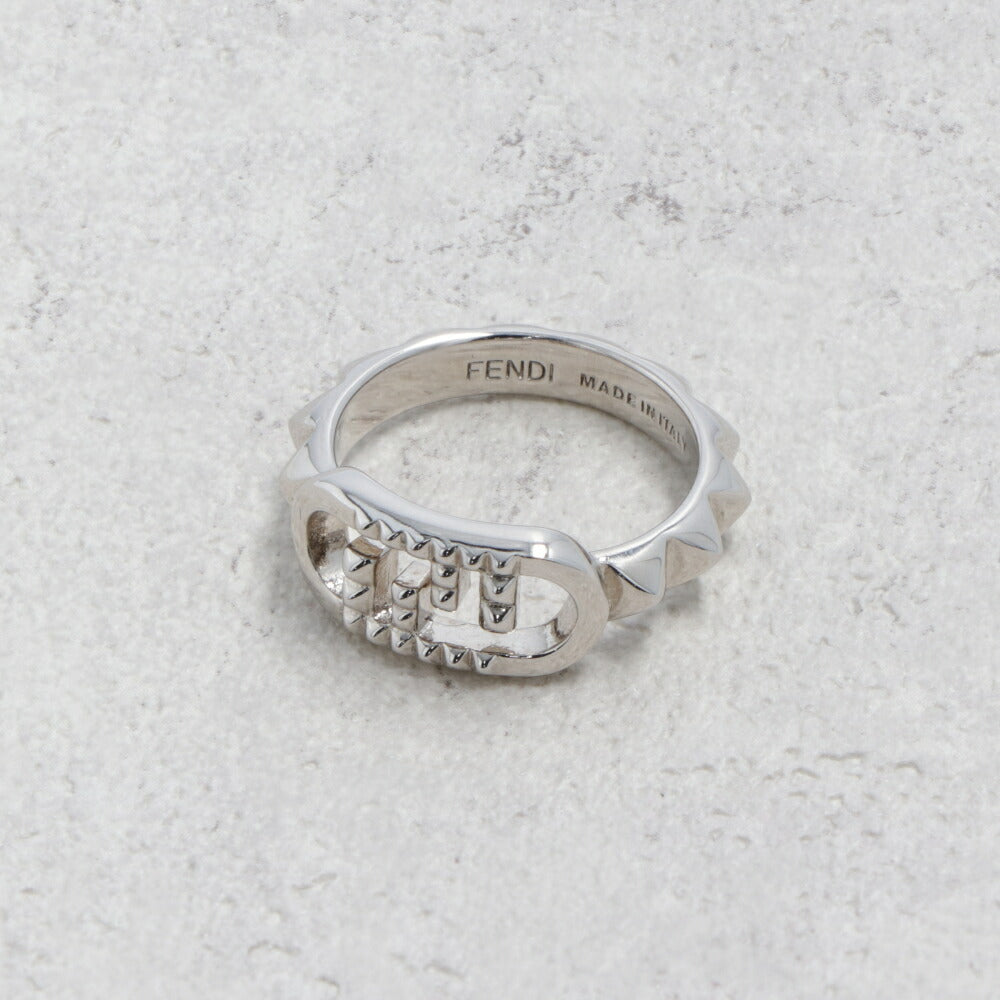 FENDI リング シルバー ロゴ ストーン スタッズ