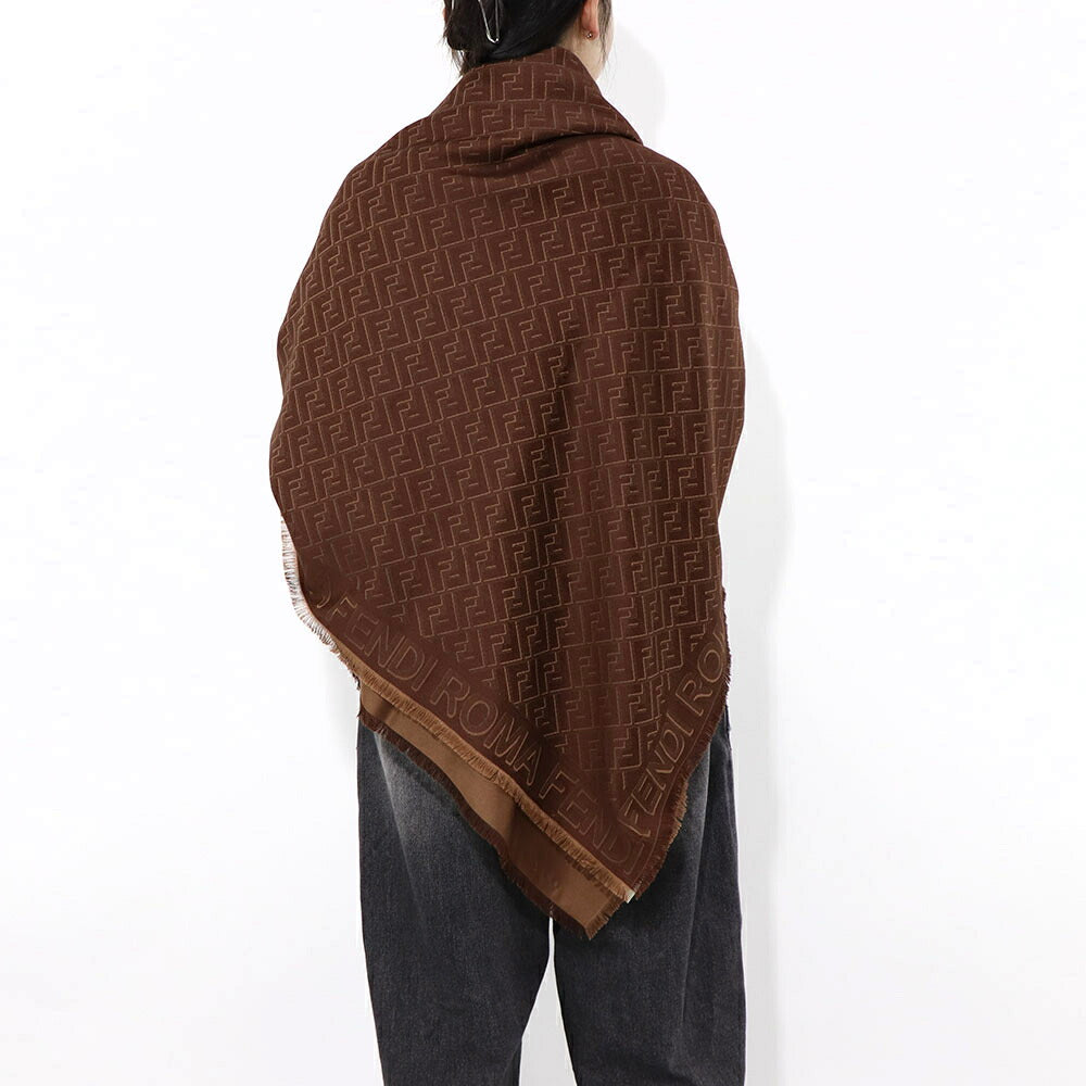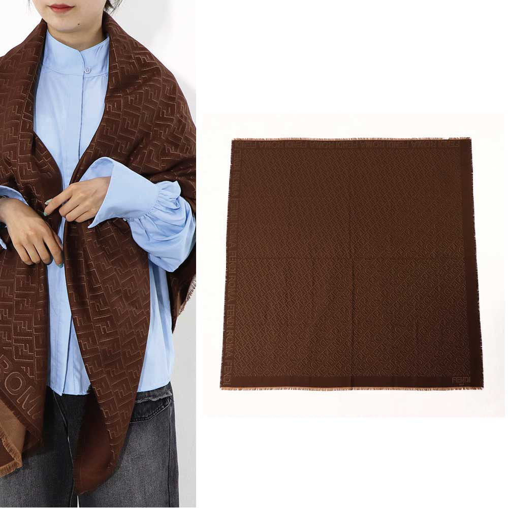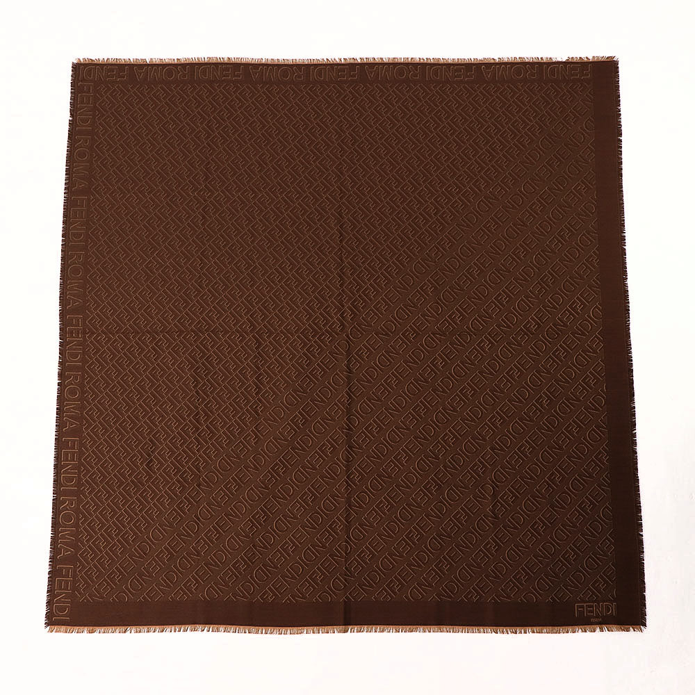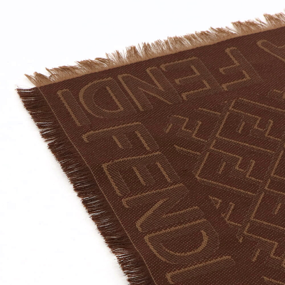 FENDI スカーフ ブラウン シルク ウール ロゴ 総柄