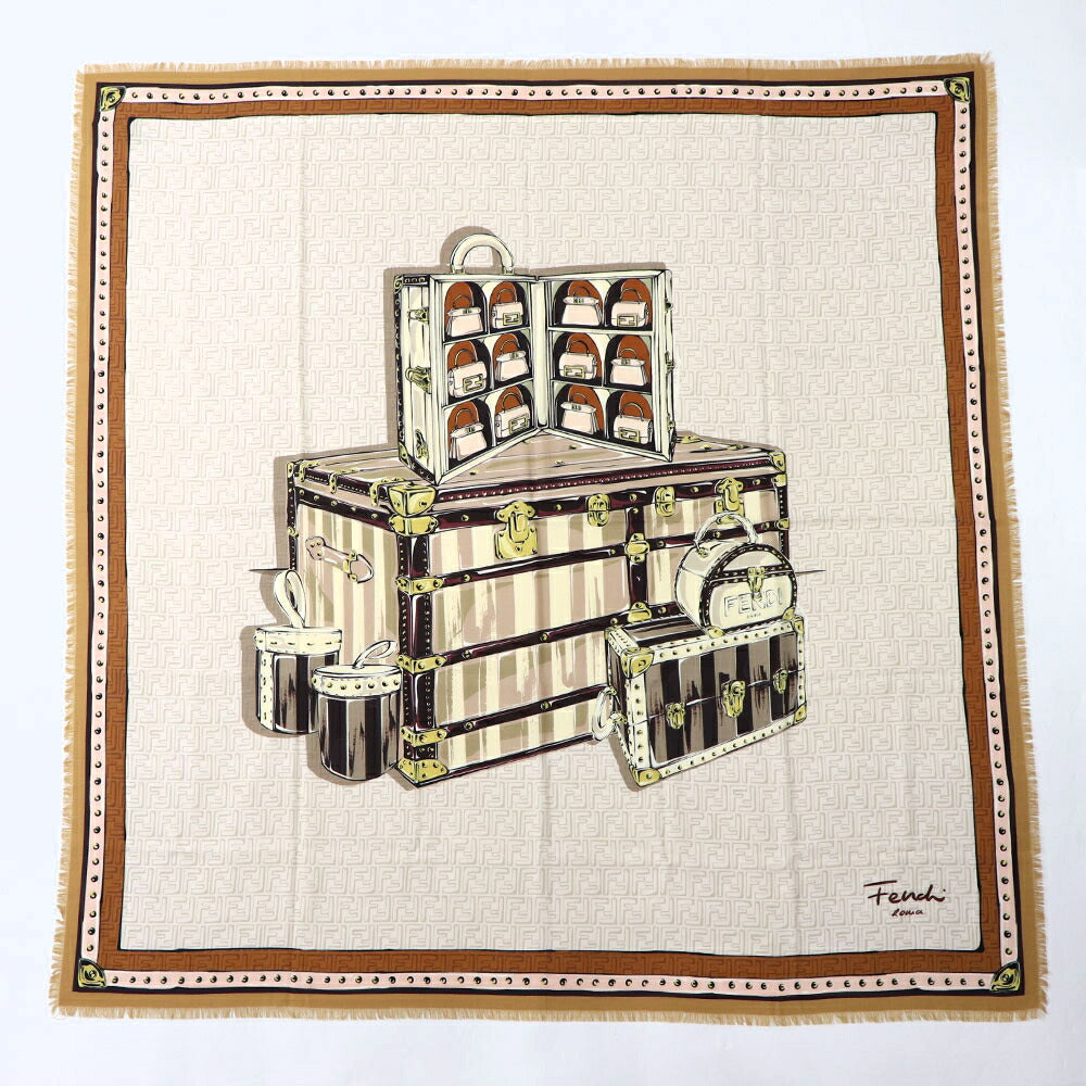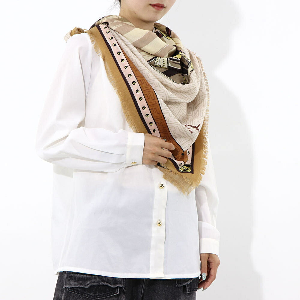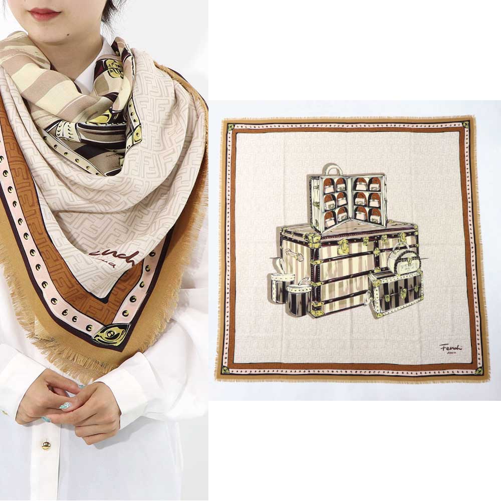 FENDI スカーフ ブラウン×ホワイト 正方形 モノグラム
