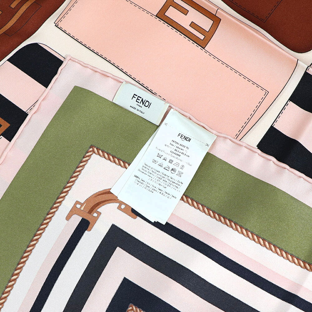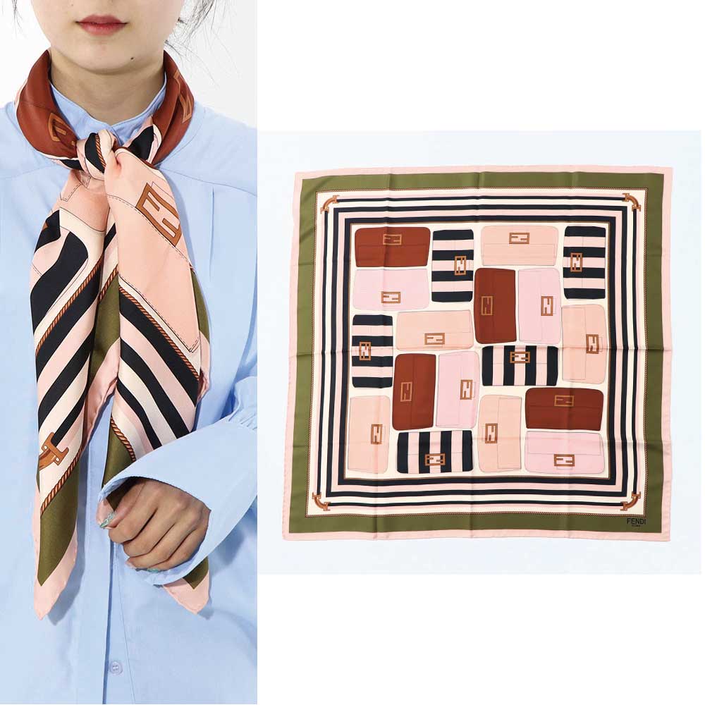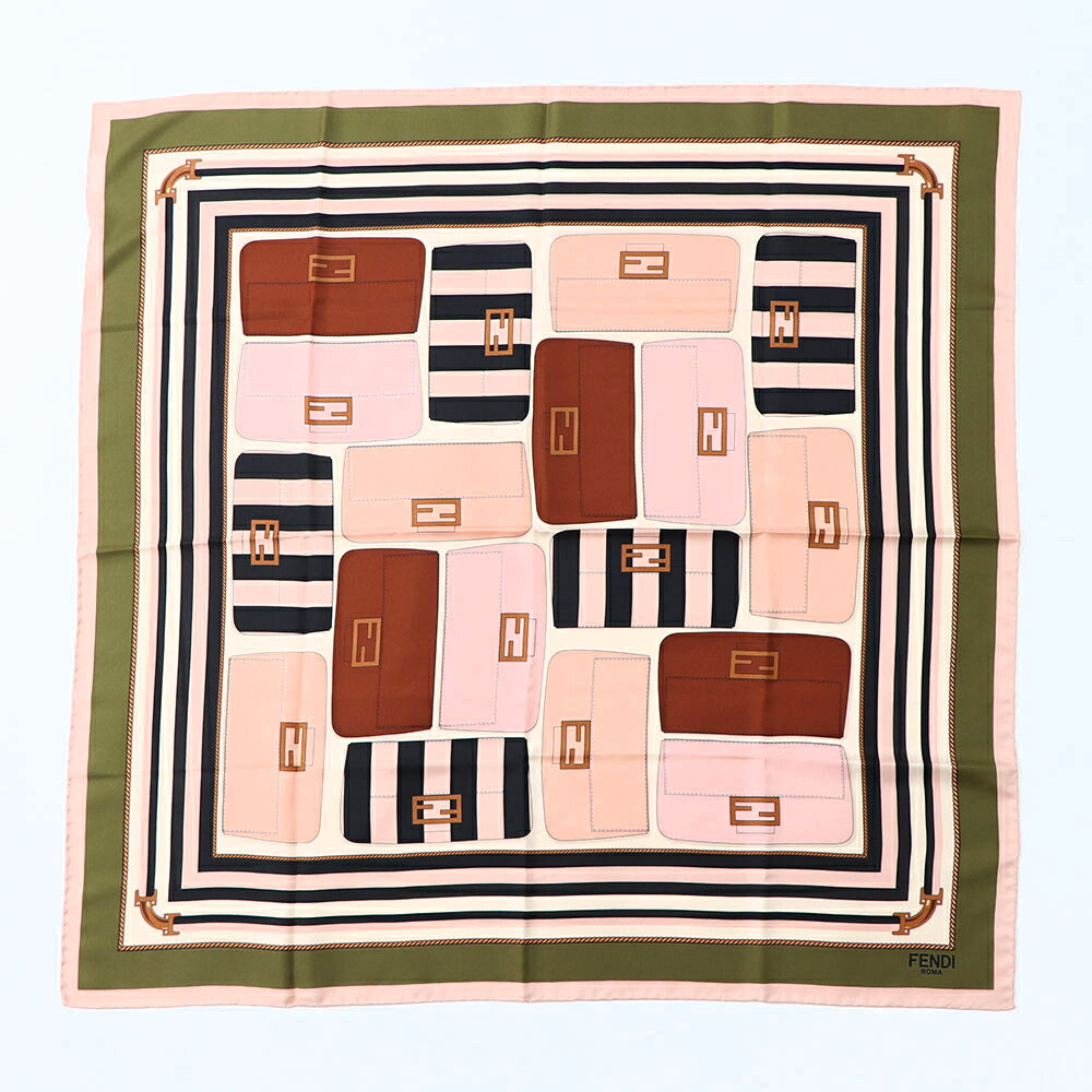 FENDI スカーフ ピンク×グリーン シルク 金具モチーフ イラスト