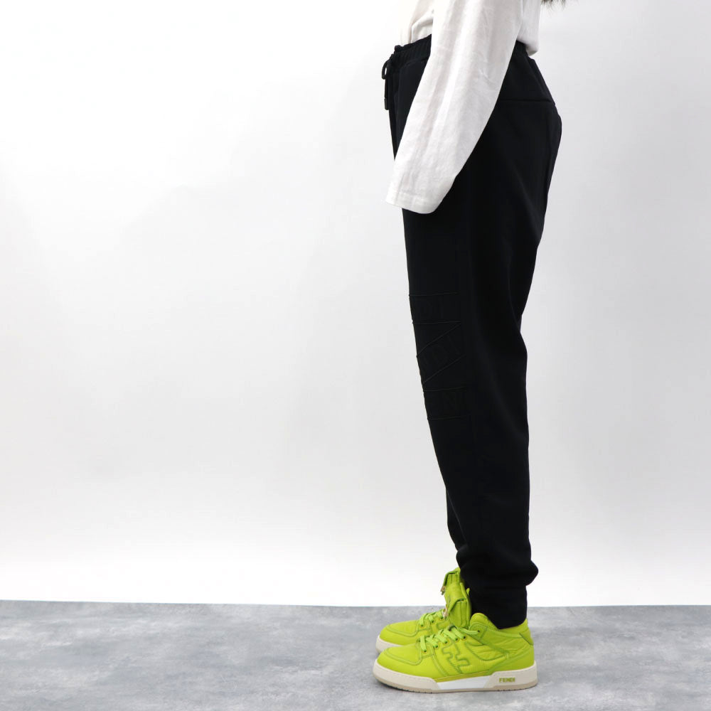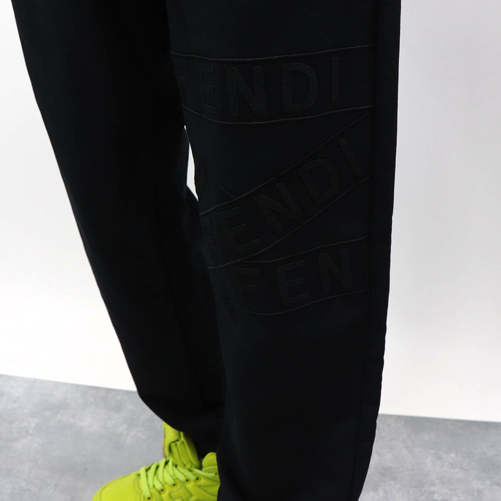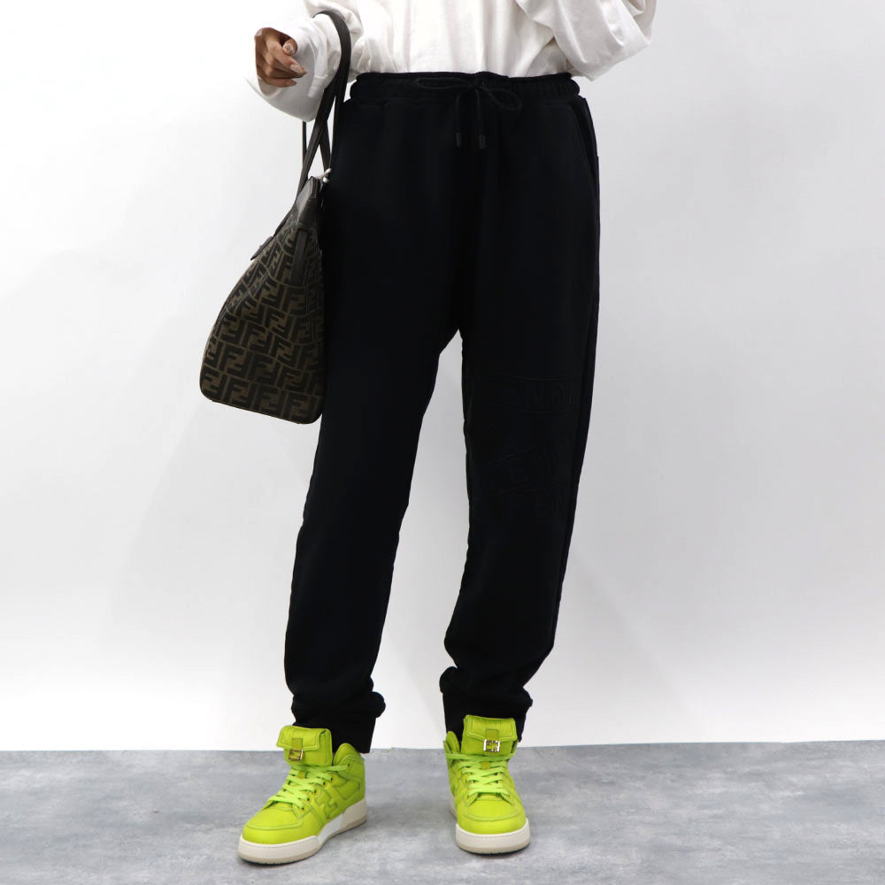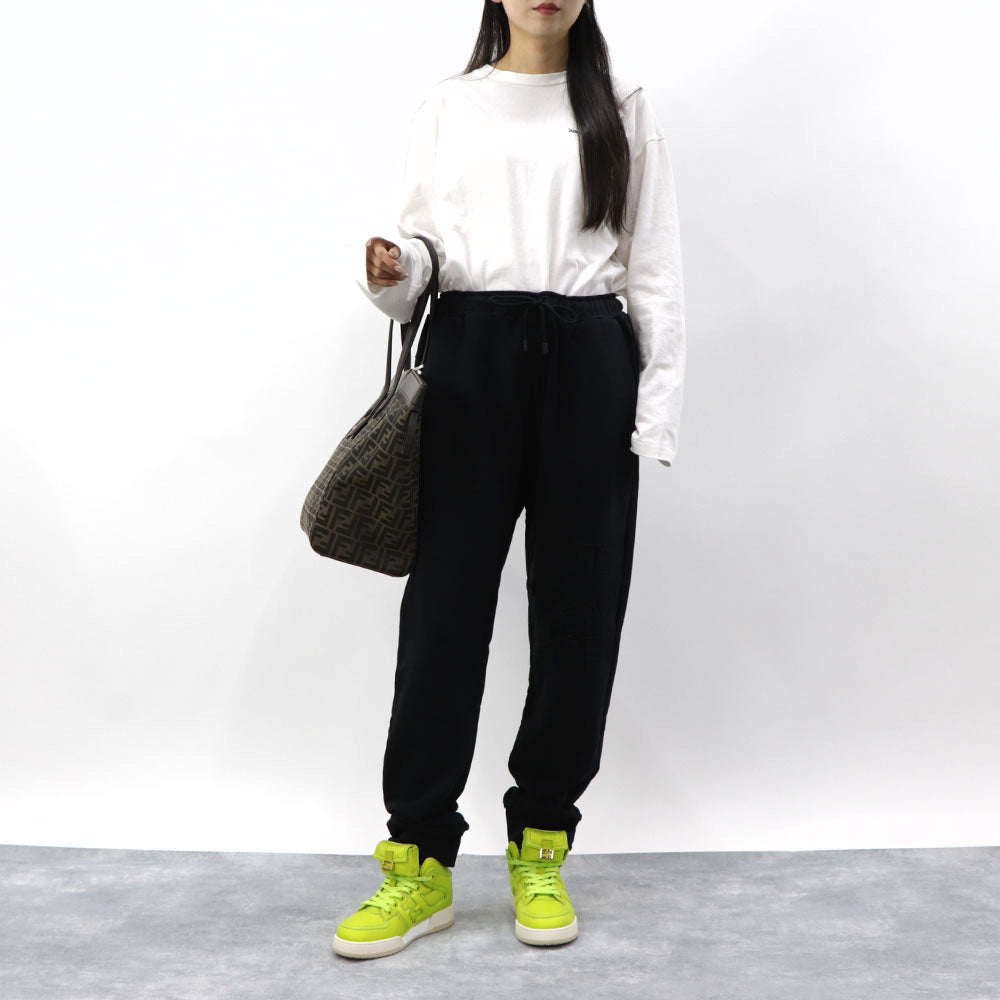 フェンディ FENDI ボトムス ロングパンツ レディース ブラック コットン ポリエステル ロゴ スウェットパンツ 刺繍