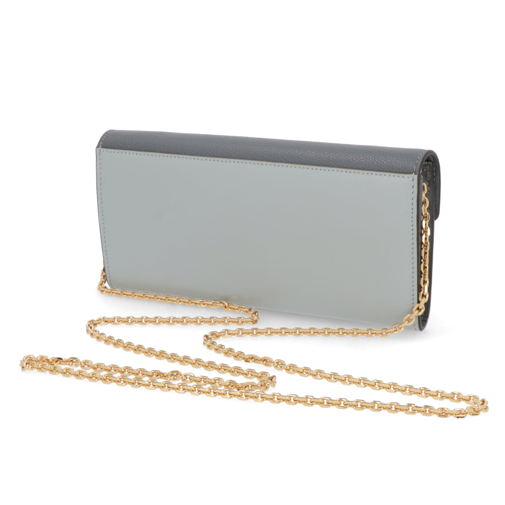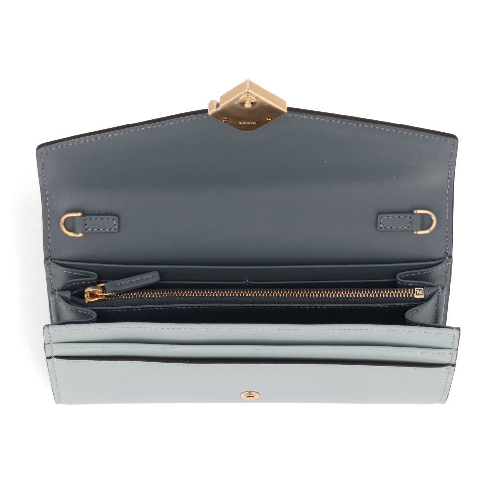 FENDI FFダイヤモンド チェーン付き長財布 グレー×ライトブルー