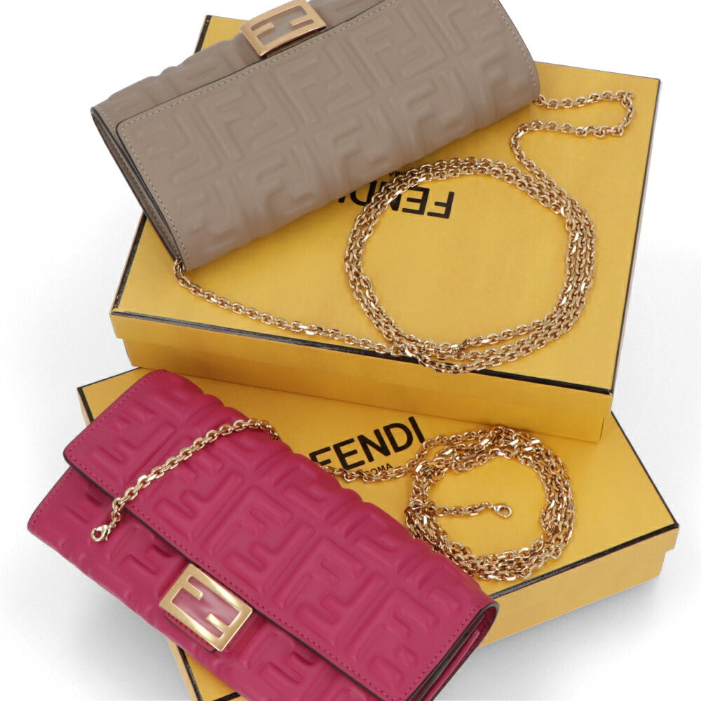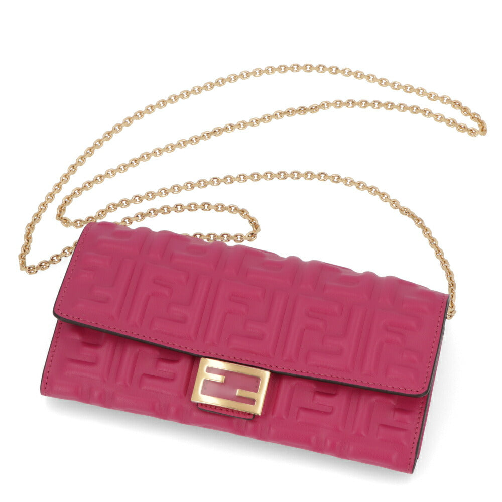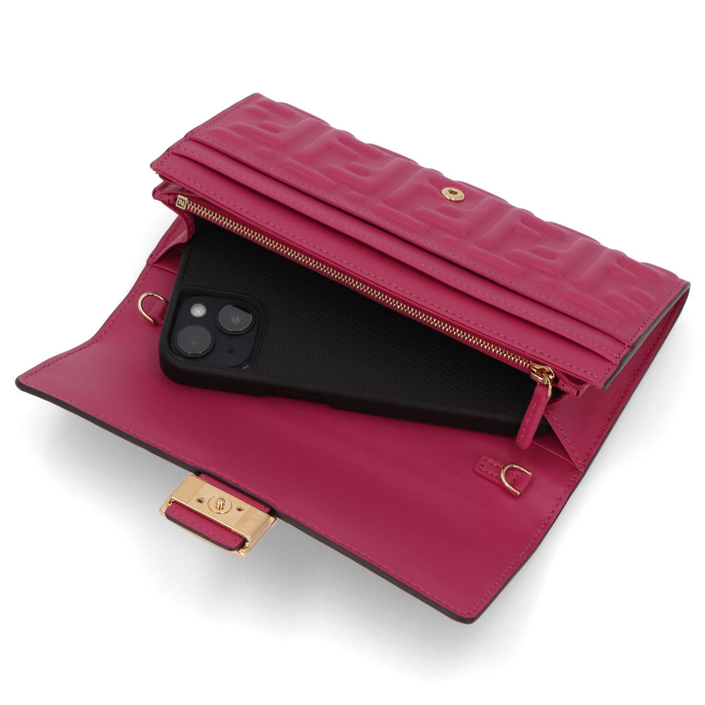 FENDI チェーンウォレット レザー ロゴ 長財布
